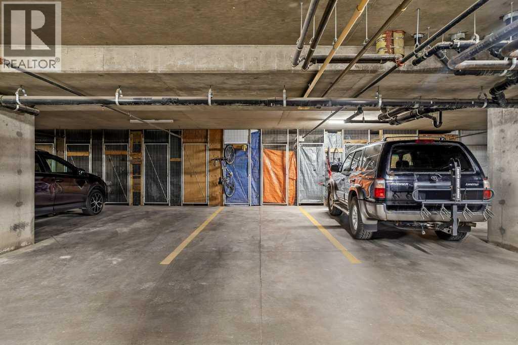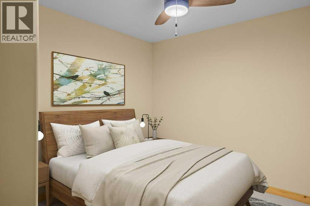 Bright 1-Bed + Den with Mountain Views & Modern Comforts in Canmore - This south-facing 1-bedroom plus den, 2-bath apartment offers unbeatable value and a lifestyle surrounded by Canmore’s natural beauty. Located on the 3rd floor, you’ll enjoy beautiful mountain views that remain even after nearby construction — with the new build helping block noise, making your balcony time peaceful and private. Inside, the open-concept layout features a kitchen with black granite countertops, island, and knotty alder wood trims for that warm mountain charm. Vinyl plank flooring flows through the main areas, while carpets in the bedroom and den add cozy comfort, highlighted by in floor heat. An electric fireplace creates a welcoming ambiance, and ceiling fans in every room keep the air fresh year-round. You’ll love the 2024 laundry appliances, two parking stalls (one titled underground, one assigned outside), and a secure storage cage. The building is well maintained and includes an elevator, common workroom, a gym and a dog park—perfect for a convenient, active lifestyle. With low condo fees and taxes, this home is ideal for first-time buyers, singles, or young families who want to own in Canmore without compromise. (id:55577)