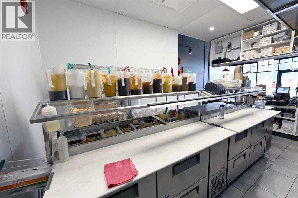 Rare opportunity to acquire a high-exposure franchise restaurant in one of Cochrane’s busiest and fastest-growing retail destinations. This approx. 1,200 sq. ft. space is fully built out with modern equipment, stylish interiors, and a turnkey setup designed for seamless operations. Ideally located directly across from a major corporate office employing lot of staff and surrounded by national anchor tenants, the business benefits from exceptional visibility, steady foot traffic, and consistent demand. With no direct competition in the immediate area, a strong brand reputation, and trained staff willing to remain, this restaurant is well-positioned for immediate success and long-term growth. The lease is attractively priced at Approximately $4,500/month including pylon signage and GST with seven years remaining—providing stability and peace of mind for the next owner. with seven years remaining, offering stability and peace of mind for the next owner. There is also exciting potential to add a ghost kitchen or delivery concept to further maximize revenues. This is the perfect opportunity for an owner-operator or savvy investor seeking a proven, cash-flowing food business in a thriving community. Confidential listing—please do not approach staff. NDA required for further details. (id:55577)