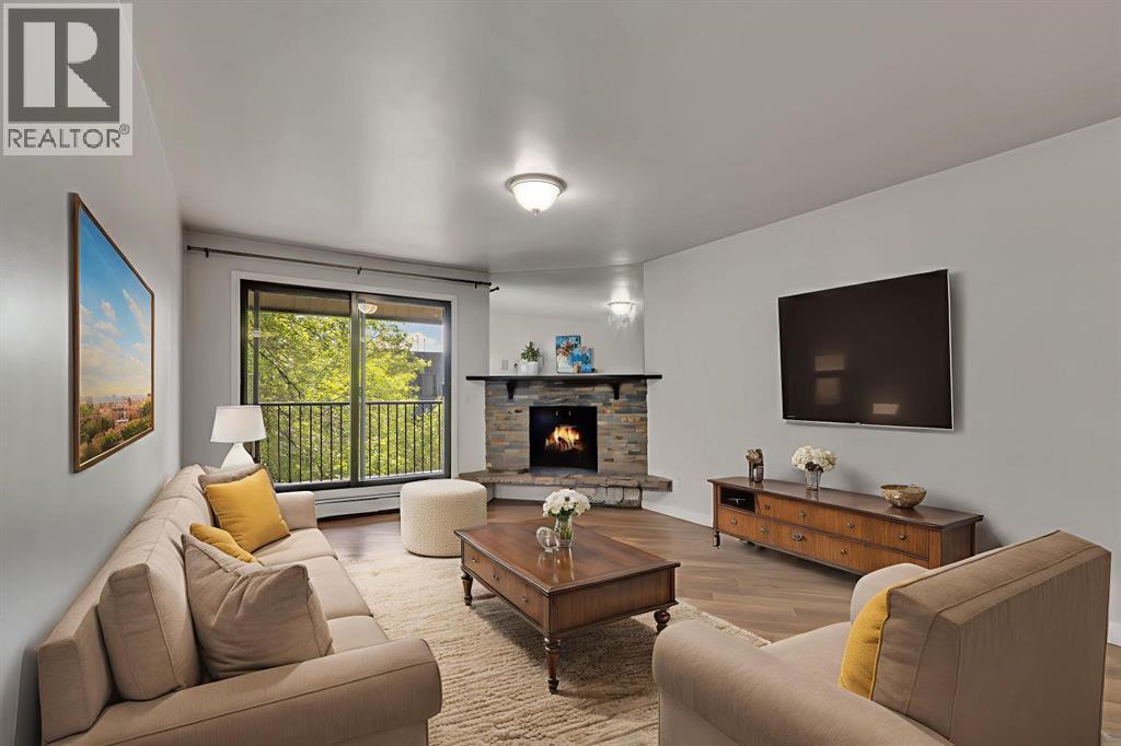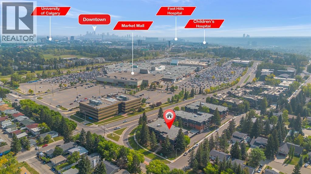 Welcome to Varsity Villas! Located directly across from Market Mall, This TOP FLOOR, SOUTH FACING Unit has all you need! The open concept living room, dining room and kitchen take full advantage of the natural light. The previous owner had renovated in 2022 with such updates as new laminate flooring, new kitchen cabinets, trim, doors, bathtub and tile. This unit features a large primary bedroom, a good sized secondary bedroom and a 4 piece bathroom with IN SUITE LAUNDRY. The living room features a corner gas fireplace with mantle as a focal point and just outside to the large balcony which overlooks the courtyard. The windows were replaced in the last few years and the unit is on the quiet side of the complex (south side). Believe it or not, there is even central vacuum in this unit. The in suite storage room is a very good size and has a convenient chest freezer included. If you seek additional storage, it can also be available at $ 40.00 a month for a large storage and $ 20.00 a month for a smaller one. One just has to contact the board. The complex is 25 + age restricted. No pets allowed. Parking is assigned to the new owner on a first come, first served basis and could be an outdoor covered stall or an underground parkade stall depending on availability. This location is also great for the person who doesn't like to drive, close to buses, LRT transit, shopping & medical. The Children's Hospital is a 10 minute drive and the University of Calgary is close by as well. Close to all amenities and a short drive to downtown. Parks for biking and walking out your doorstep. The only utility you will need to pay over and above the condo fees is the electric bill. Vacant and available for immediate possession. Don’t delay, go see it today! (id:55577)