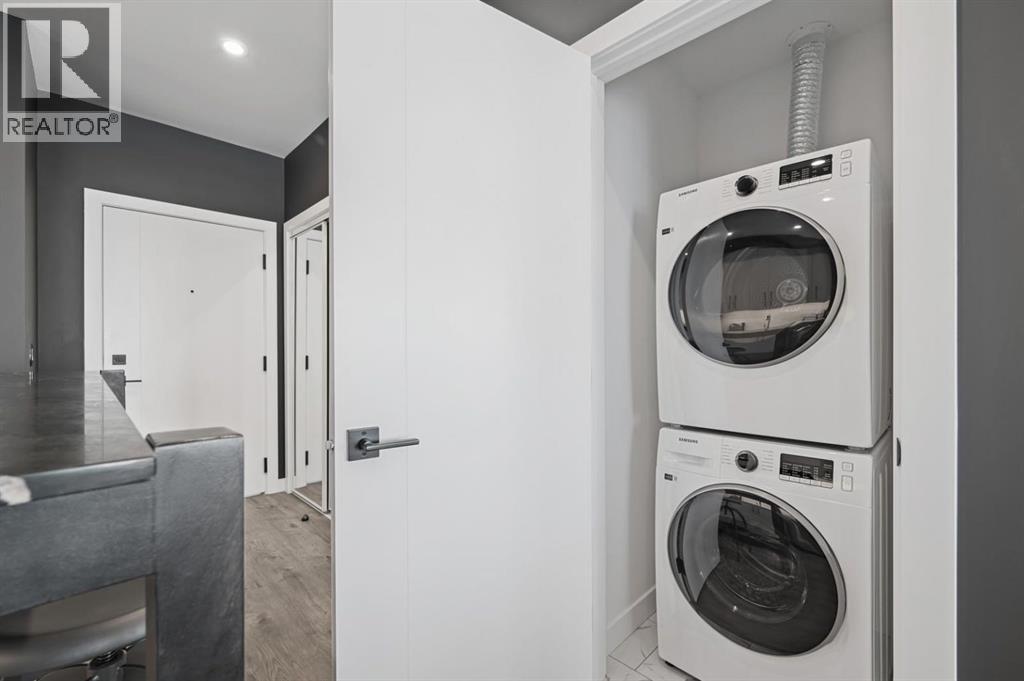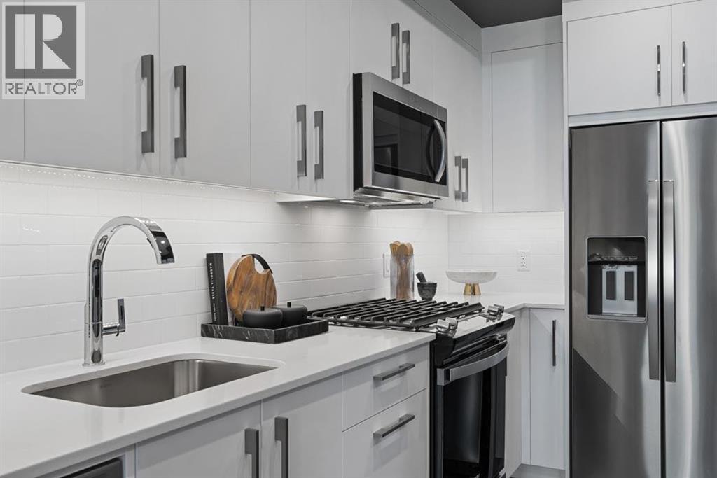 Discover modern city living at Frontier, a boutique development by Truman ideally situated in the heart of Kensington—one of Calgary’s most walkable and culturally rich neighbourhoods.This 2-bedroom, 1-bathroom condo is a smartly designed space that balances style and functionality, making it an excellent choice for urban professionals, couples, or savvy investors. The open-concept layout is filled with natural light, offering a contemporary flow that maximizes efficiency in every square foot. The streamlined kitchen features quartz countertops, full-height cabinetry, and premium stainless steel appliances—all connected seamlessly to the bright, airy living area, perfect for hosting friends or unwinding after work. Both bedrooms are designed with comfort and flexibility in mind—ideal for restful nights, a productive work-from-home setup, or accommodating guests. The sleek 4-piece bathroom is finished with clean, modern details, combining function with a spa-inspired feel. Additional features include one titled underground parking stall and access to exclusive resident amenities such as a fully equipped fitness centre, co-working lounge, secure bike storage, and a beautifully landscaped private terrace. Just steps from boutique shops, cafés, acclaimed dining, scenic river pathways, LRT stations, and Calgary’s downtown core, Frontier offers exceptional value and location for those looking to live or invest in one of the city’s most vibrant communities. *Photo Gallery of Similar Unit* (id:55577)