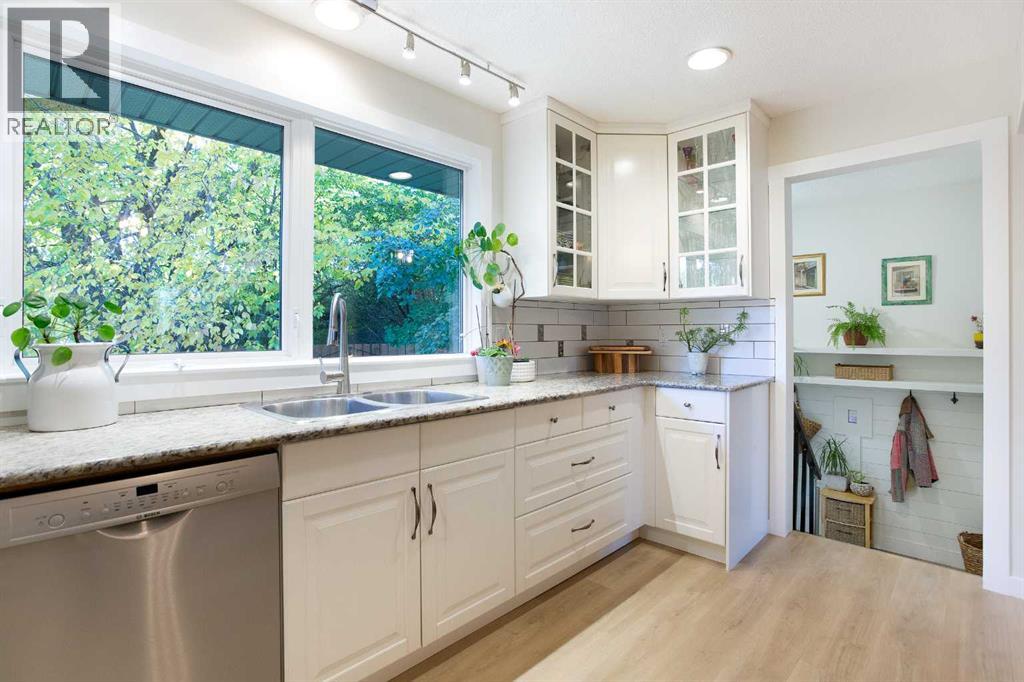 Welcome to this beautifully updated bungalow in the heart of Canyon Meadows, offering over 2,400 square feet of total living space and a backyard that feels like your own private park. From the moment you arrive, you’ll notice the incredible natural light that pours through every room and the care that’s gone into every inch of the property.Inside, the main floor opens to a bright, flowing layout with four generous bedrooms and two full bathrooms, ideal for families or guests. Wide-plank vinyl flooring runs throughout, complemented by custom wall detailing and upgraded windows. The spacious living room overlooks mature trees and leads seamlessly into a formal dining space, creating a perfect setting for family dinners or weekend entertaining.The kitchen combines charm and function with granite counters, white cabinetry, stainless steel appliances, and a cozy breakfast nook. From here, you’ll enjoy a full view of the incredible backyard—a lush, private oasis designed for relaxation and quiet evenings under the trees.Downstairs, the fully finished lower level adds over 1,300 square feet of versatile space (over 900 sq.ft of developed space). It includes a large recreation area, a fifth bedroom, a full bathroom, and a kitchenette—perfect for extended family, or guests. A spacious laundry room with side-by-side machines, sink, and countertop space makes daily chores simple and efficient.Outside, the home truly shines. The backyard features custom landscaping, two large decks, and mature greenery that offers both privacy and beauty through every season. The front yard is equally well cared for, with timeless curb appeal and established plantings that make this home stand out.The location is one of the best in the southwest. Families will appreciate being able to walk to four nearby schools, while Southcentre Mall, groceries, and restaurants are just minutes away. The Canyon Meadows C-Train Station and Fish Creek Park are both within easy reach, giving you quick access to downtown or spontaneous weekend hikes.This is a rare opportunity to own a home that offers flexibility, warmth, and a genuine connection to nature—all in one of Calgary’s most established and walkable communities. (id:55577)