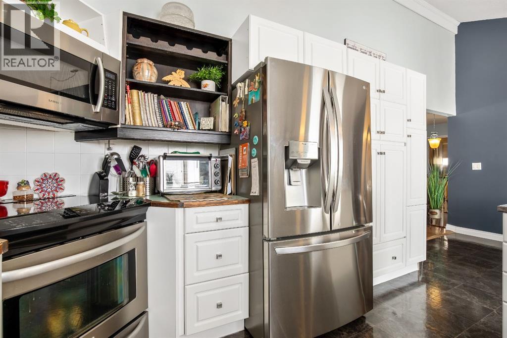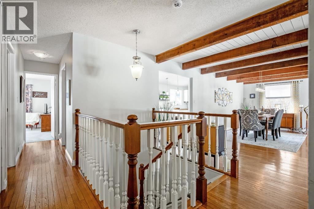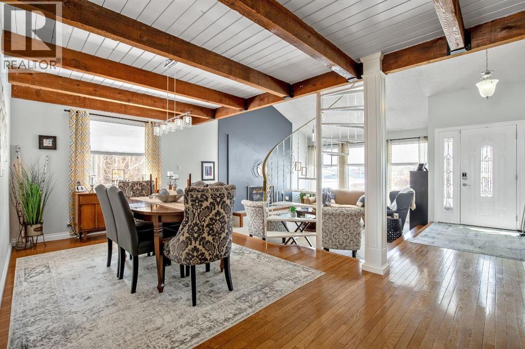 Welcome to this beautifully maintained bungalow with a versatile loft, ideally located in a desired area of Strathmore. Backing directly onto the canal with no rear neighbours, this home offers a rare combination of privacy, functionality, and timeless character.The main level features a sunken living room with a cozy gas fireplace, creating a warm and inviting space to relax or entertain. A formal dining room showcases a striking spiral staircase leading to the loft—perfect as a TV area, home office, or flex space. The bright kitchen offers ample cabinetry, a functional layout, and an eating area with garden doors opening to a large patio—ideal for indoor-outdoor living.This home offers 3 bedrooms on the main level, including a spacious primary retreat complete with an updated ensuite, walk-in closet, and private balcony.The fully developed basement adds additional living space with a warm family room, a large room/flex space(non-egress window), generous storage, a workshop area, and a dedicated wine-making space/kitchenette. Step outside to enjoy the large deck, fire pit area, and beautifully positioned yard backing onto the canal, with convenient back lane access. Additional highlights include a double attached garage, shingles replaced approximately 3 years ago, and a hot water tank updated in 2025.This unique property offers exceptional value, flexible living spaces, and a location that is hard to beat. Close to shopping, schools, amenities, walking path’s and downtown Strathmore. Pride of ownership shows with this home. Contact your favorite Realtor® to view this immaculate home today! (id:55577)