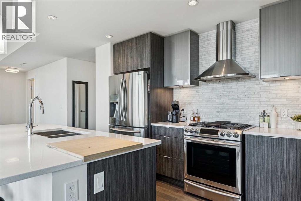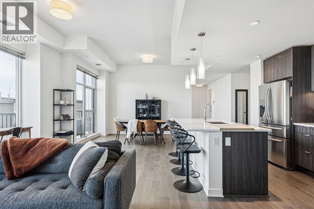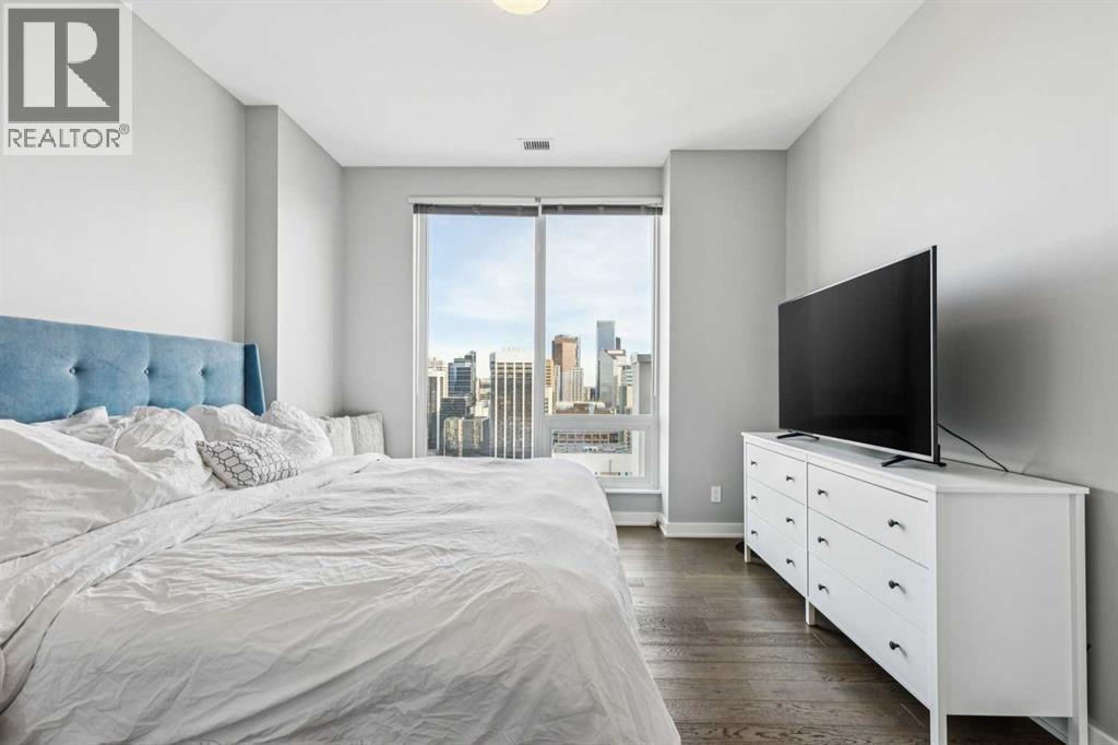 Experience elevated penthouse living at The Vogue, perched high above the city’s financial core. This rare 2 bedroom, 2 bathroom residence features soaring vaulted ceilings, floor-to-ceiling windows, and TWO well-placed balconies that capture sweeping urban views, river views, and natural light throughout the day. The thoughtfully designed layout includes a spacious primary retreat with a walk-in closet and an exceptional 5-piece ensuite with double vanity, a separate in-unit laundry room, and open-concept living ideal for both everyday comfort and entertaining. Offered in only a limited number of high-rise units, this penthouse delivers a truly exclusive living experience. Completing the package are TWO TITLED underground parking stalls (UNITS 1 & 2) with immediate access from the parkade entrance - a rare and valuable convenience in the downtown core. (id:55577)