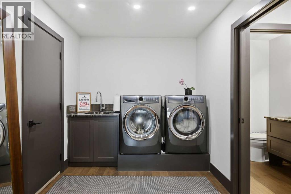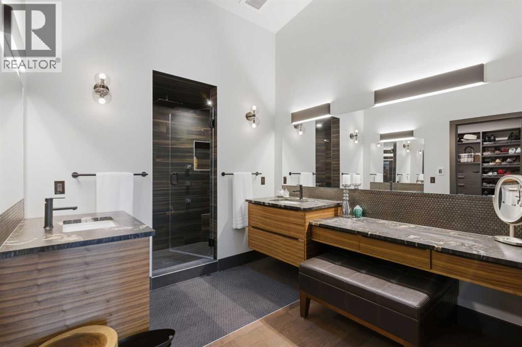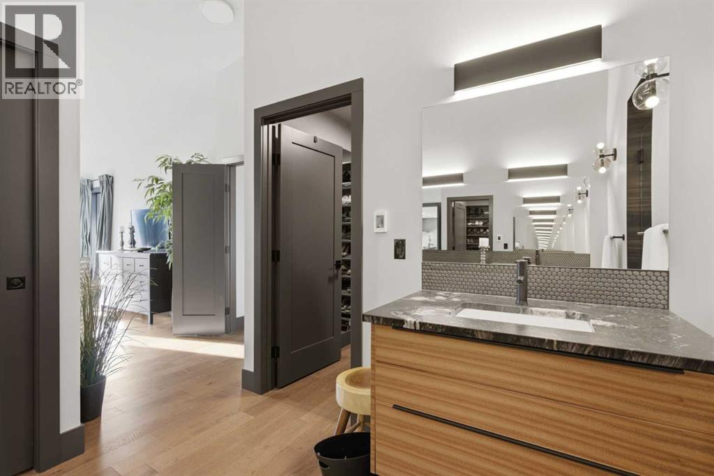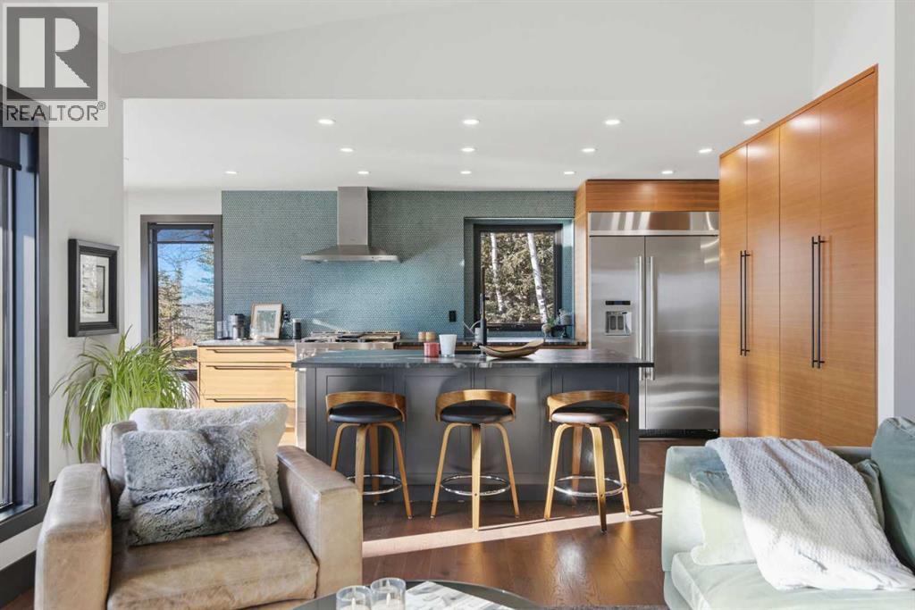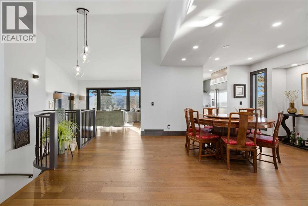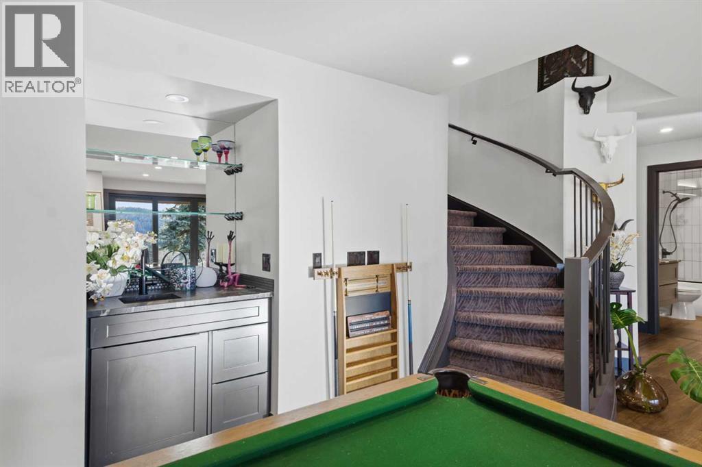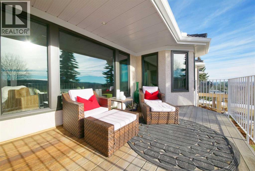 Experience luxury living in the heart of Priddis Greens with this beautifully renovated Augusta-model villa bungalow, perfectly positioned to capture sweeping views of the mountains, valley, and pristine golf course. Offering over 1800 sq ft on the main level and more than 3200 sq ft of total living space, this home blends elegance with comfort. The gourmet kitchen features two-tone cabinetry, granite counters, premium stainless appliances, a 5-burner gas stove, and a striking designer penny-tile backsplash. The spacious primary suite includes a stunning spa-inspired ensuite with heated floors, oversized multi-spray shower, dual sinks, and a skylight. Vaulted and flat ceilings, wide-plank flooring, custom walnut built-ins, skylights, and an impressive, curved staircase elevate the main floor. The walk-out basement is bright and inviting with wall-to-wall windows, generous entertainment areas surrounding the 3 sided fireplace. Play pool or cards while watching the big screen, a full bath, and a large bedroom. Additional upgrades include LUX triple-pane windows, two new furnaces, central A/C, enhanced soundproofing, and an oversized double garage with extra storage and 220v, extra space for you golf club and bikes. Also set up for 220v Hot Tub out back. Set within a well-managed condo community with a strong reserve fund, this exceptional villa offers unmatched tranquility, convenience, and lifestyle — from cross-country skiing at your doorstep to golfing just steps away. (id:55577)