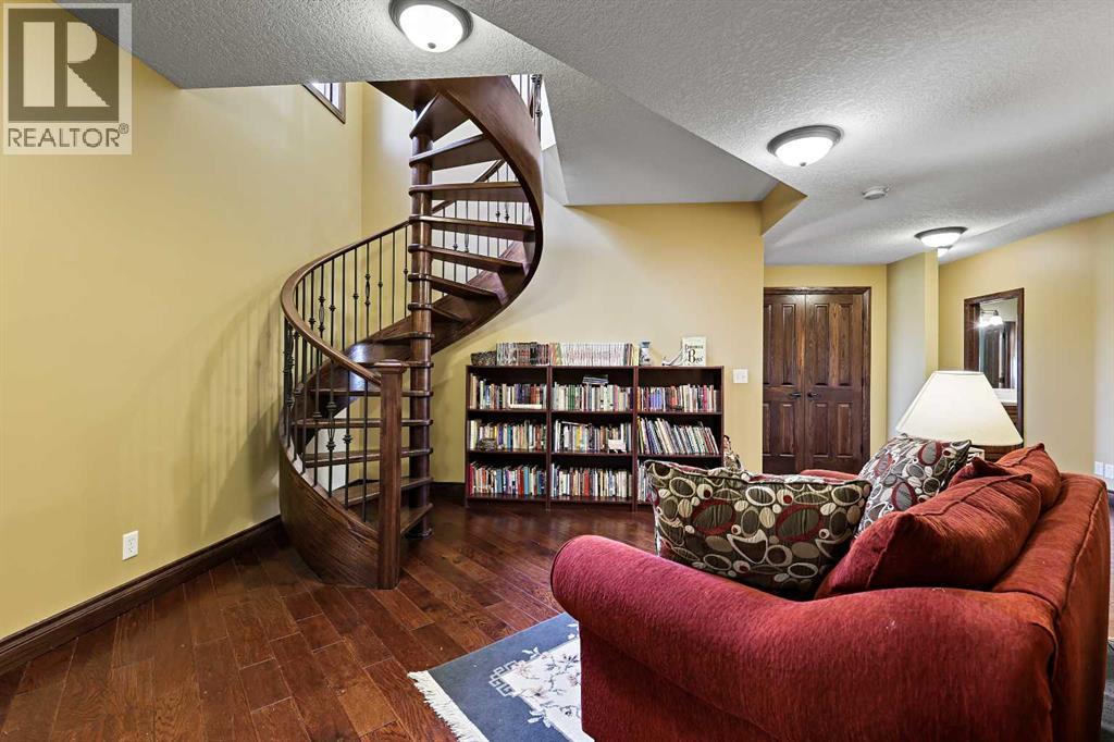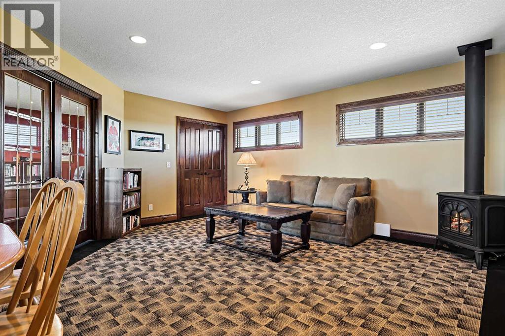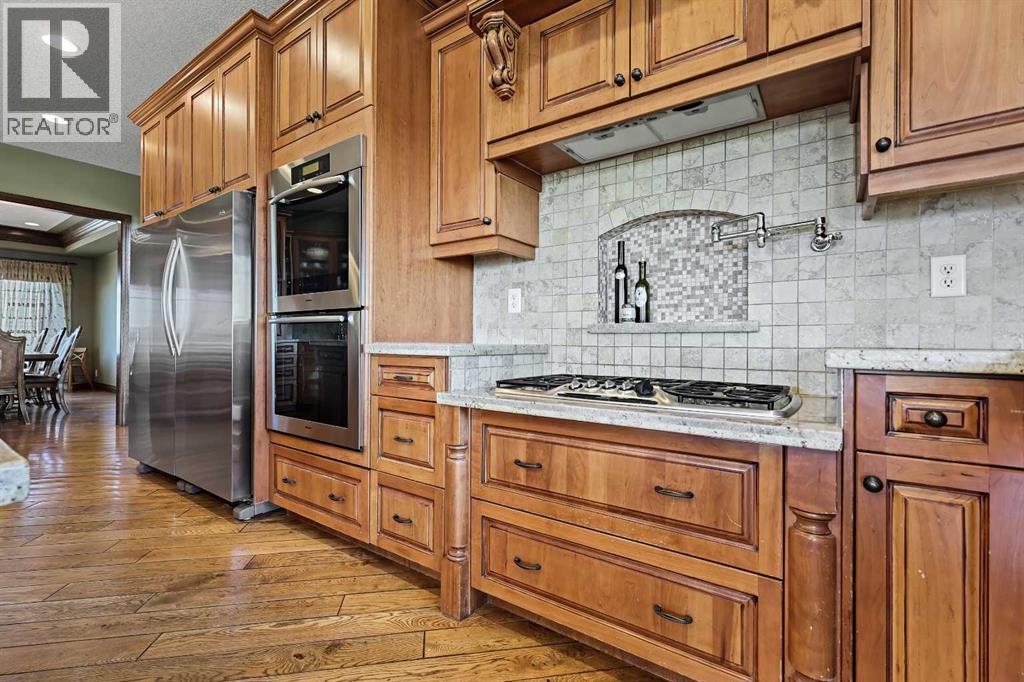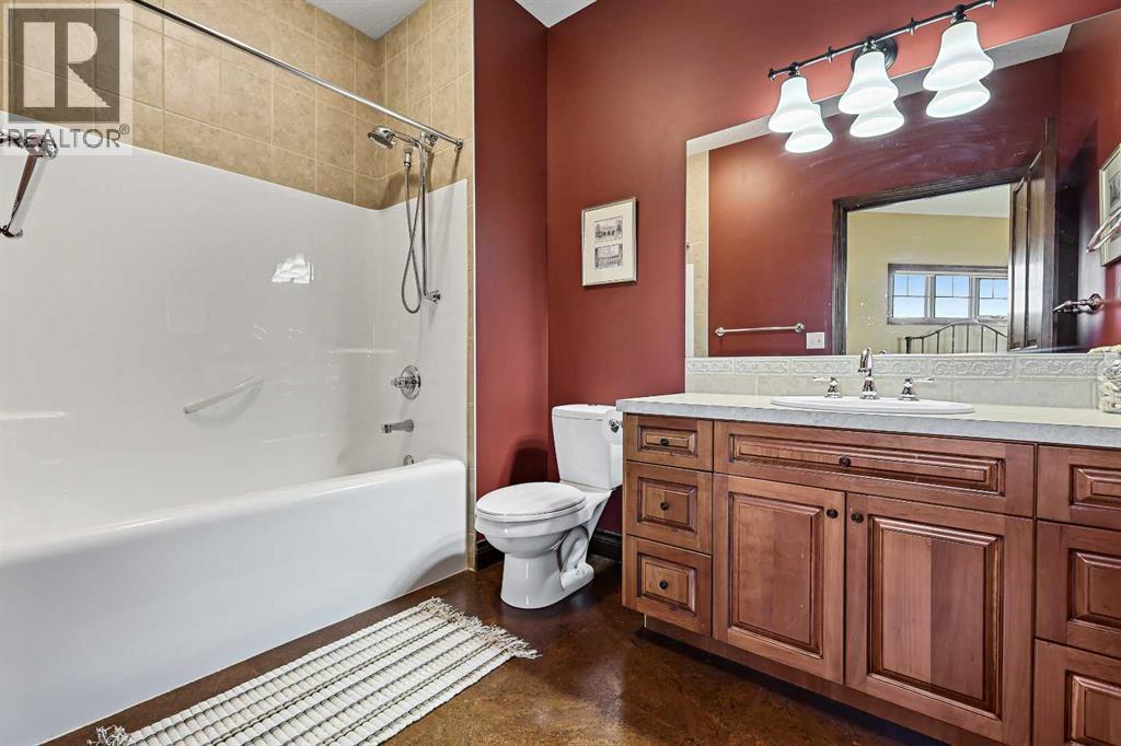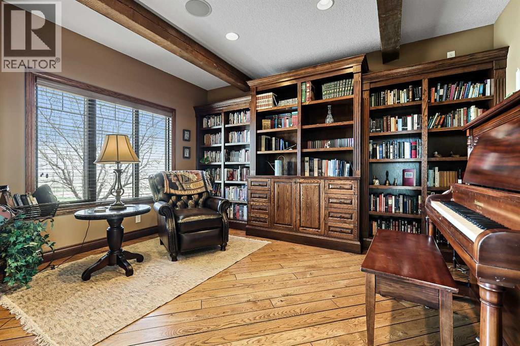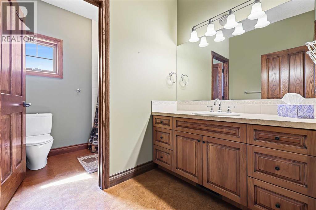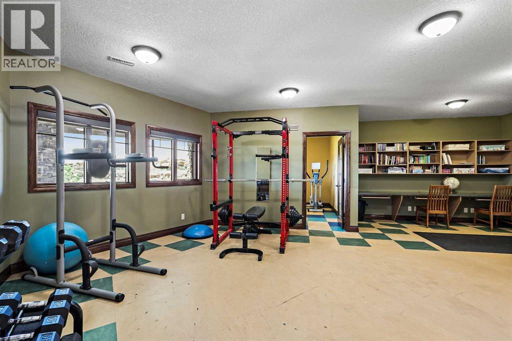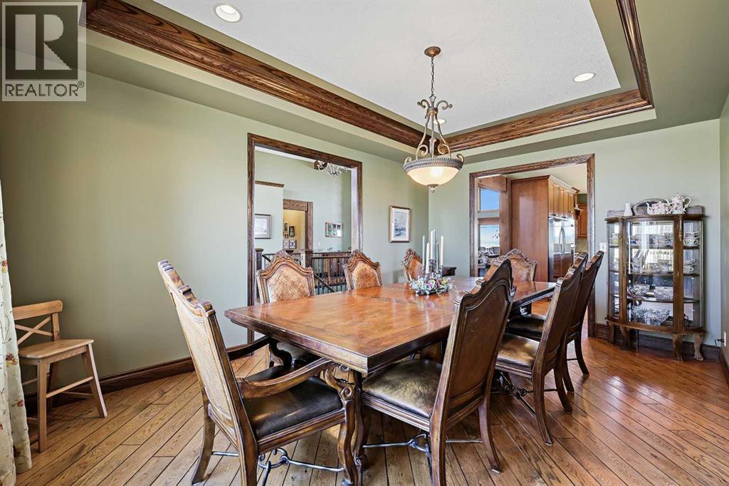 Welcome to a rare opportunity to own a truly exceptional property, where sweeping mountain views and superior craftsmanship combine to create the ultimate Alberta lifestyle. From the moment you arrive, you'll be greeted by some of the most jaw-dropping vistas in Western Canada. This custom-built Craftsman-style bungalow offers timeless architecture, thoughtful design, and unparalleled quality throughout. Inside, you'll be captivated by handcrafted timber frame accents, a grand curved staircase, a floor-to-ceiling stone fireplace, and an elegant study/library perfect for showcasing your book collection. With seven spacious, light-filled bedrooms, this home easily accommodates family and guests alike. The gourmet kitchen is an entertainer’s dream—featuring dual islands, granite countertops, a Miele double oven, gas range with pot filler, prep sink, butler’s station, and a walk-in pantry. The adjacent dining area is framed by three walls of windows, offering stunning panoramic views to elevate every meal. Throughout the home, rustic wood beams, solid wood doors, tray ceilings, crown moulding, wide-plank hardwood floors, and vaulted ceilings emphasize craftsmanship and warmth. The primary suite is a serene retreat, with expansive windows, direct access to the west-facing deck, and a spa-like ensuite with a deep soaker tub and walk-in rain shower. The walkout lower level features 10-foot ceilings, a wood-burning fireplace, a games area, classroom or hobby space, home gym, and media room. A spiral staircase on the south end leads to a charming reading nook, while in-floor heating ensures cozy comfort throughout the year. Step outside to a property that’s fully equipped for whatever your dreams may be. The oversized, heated triple garage offers exceptional functionality. Above it, discover a dedicated office suite with a meeting room, fireplace, bathroom, private office, and deck overlooking the mountains—an ideal workspace. Additional features include a 40' x 80' heated s hop with 14-foot overhead doors, a mezzanine, bathroom, and an attached barn with three stalls—perfect for equestrian or livestock use. The land is ready to go with fencing, pens, shelters, automatic waterers, a hay field, and wooded areas for natural shade and shelter. Evenings here are magical—gather around the sunken fire pit under the stars or enjoy winter games on your private hockey rink, complete with its own hydrant for flooding. Finish with a soak in the Hot Tub. A high-producing 10 GPM water well (2004) ensures ample water supply, and the oversized septic system is built to support the home’s capacity. Bonus: A 4.82-acre parcel from the total 80 acres holds its own title and private well, offering additional flexibility or future opportunity. It's difficult to find a single room in this home that doesn’t frame a postcard-worthy view. Properties of this calibre are incredibly rare—this is Alberta living at its finest. Please reach out for additional information. (id:55577)