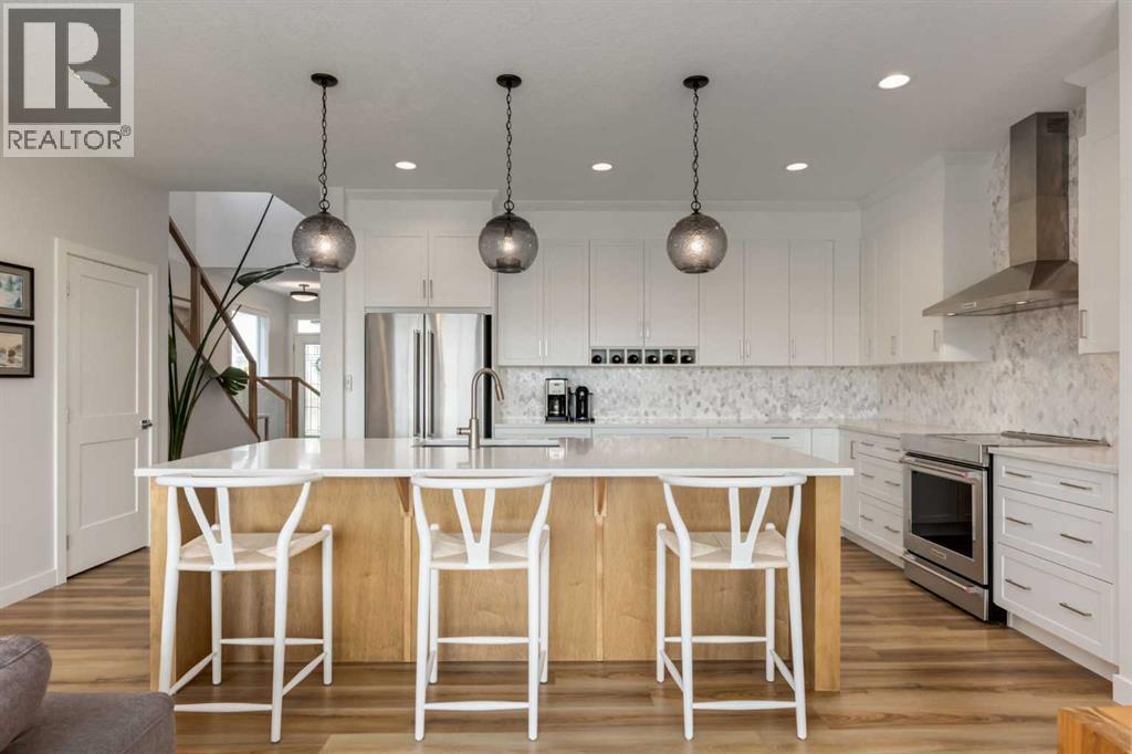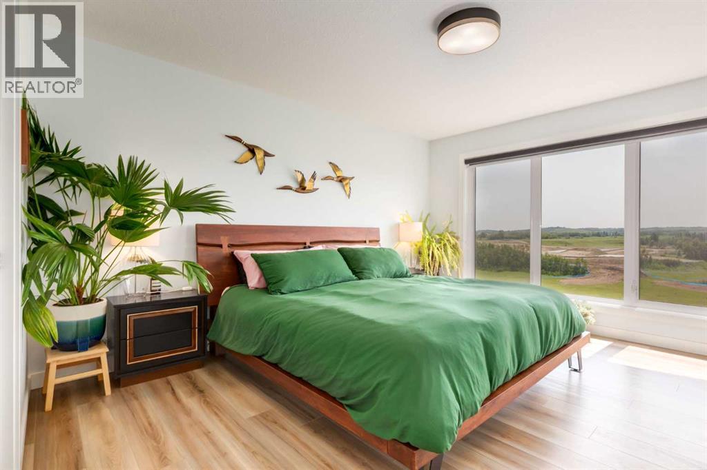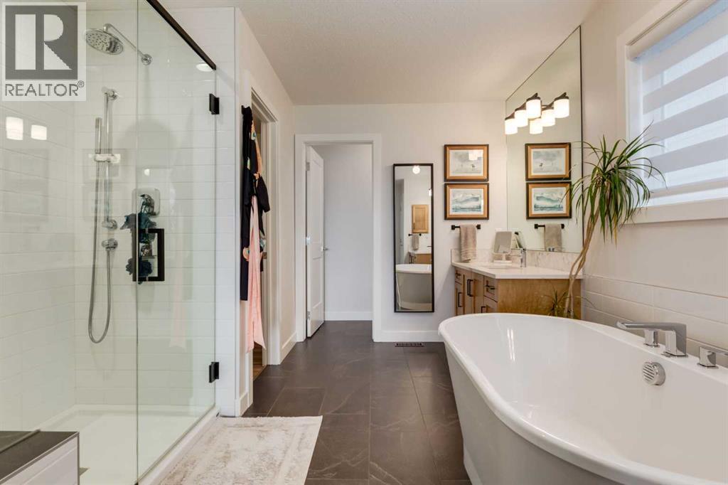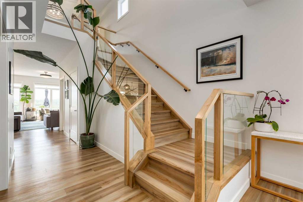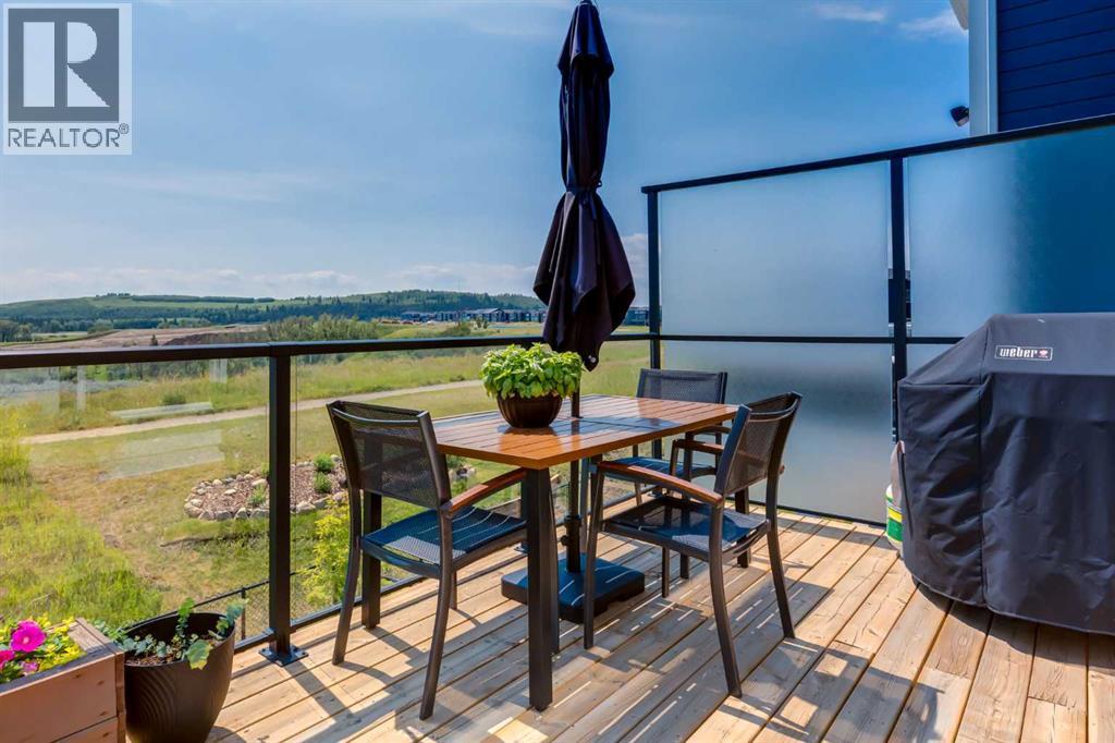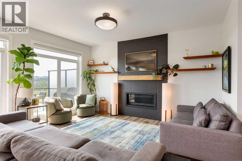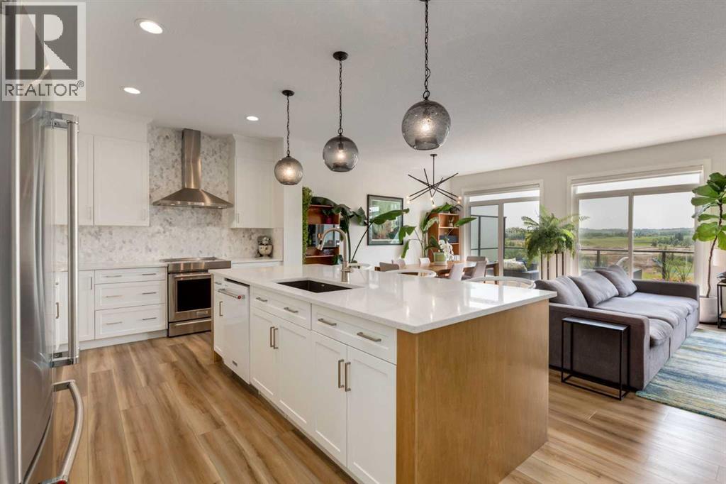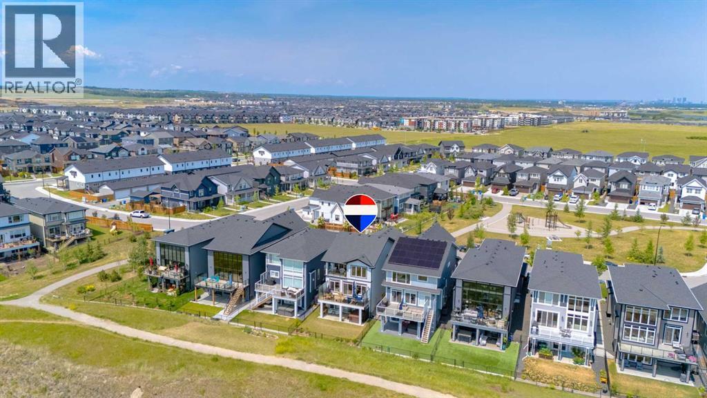 INCREDIBLE LOCATION situated across from a park and backing SOUTH onto the ridge with nature at your doorstep! Offering 2,668ft above grade living space where style meets luxury and no detail spared. Immediately you will love the chic curb appeal with HardiePlank siding and cedar finish garage door where you are greeted inside to gorgeous hardwood flooring throughout both levels, designer lighting and wall to wall windows allowing in an abundance of natural light. The main floor features a chef's dream kitchen with granite countertops, large center island with eating bar, marble backsplash, pantry and high end appliances including an induction range. The dining and living area give access to the expansive deck as well as enjoy a gas fireplace and are positioned to take in the stunning views. A home office, mud room and powder room complete this space. Ascend the beautiful staircase with glass paneled railings where you will find the bonus room with tray ceiling and the primary bedroom with private balcony, his and hers walk-in closets and spa-like 5 piece ensuite with a stand alone soaker tub and glass encased shower. A conveniently located laundry room, 2 additional bedrooms (each with their own walk-in closet) and a 3 piece bathroom are also on this level. The walk-out basement is untouched and allows for endless development opportunities! Additional features not to overlook include Somfy automated (remote controlled) blinds on all south facing windows, dual banded shades on all windows with blackout in bedrooms, central AC, central vac with kitchen and primary bath sweep-inlets, over height garage door and the 50ft gravel dog run accessible from front and garage man door in the landscaped backyard. Enjoy the many parks and miles of scenic walking and biking trails within the community while having quick access to Stoney Trail and Macleod Trail. This home is the perfect blend of peaceful living and urban convenience. Schedule your showing today! (id:55577)