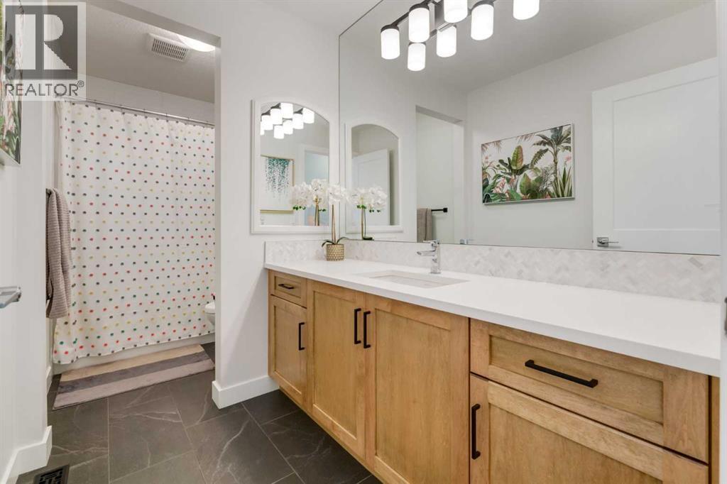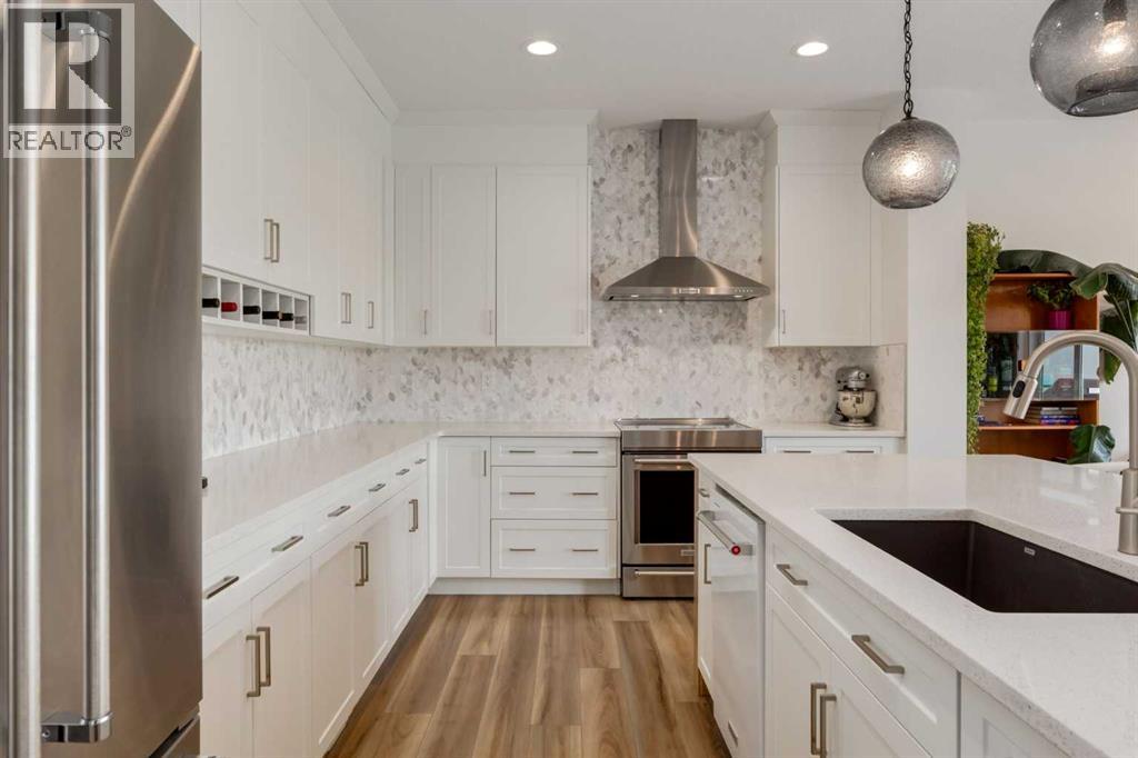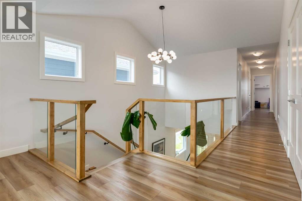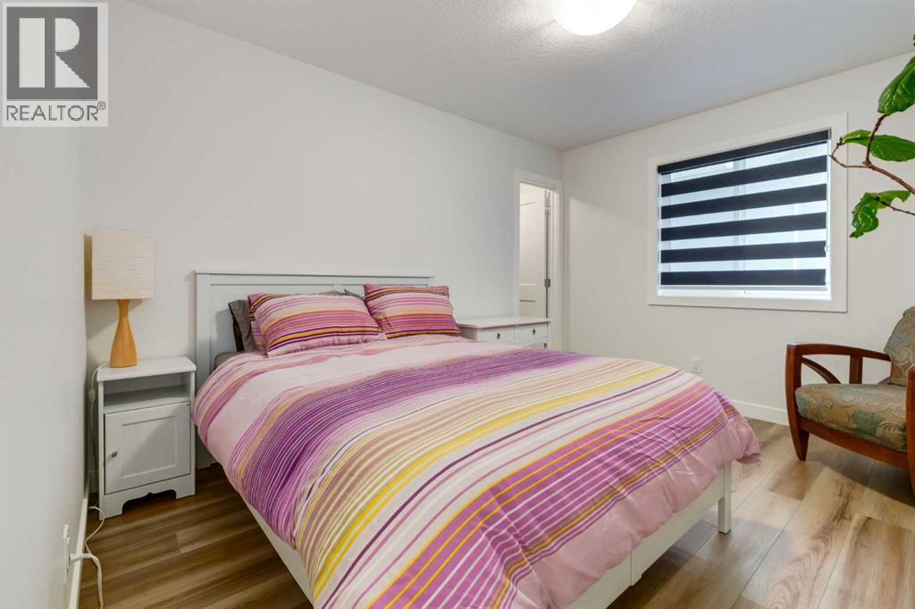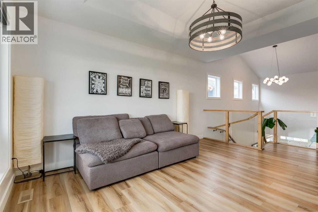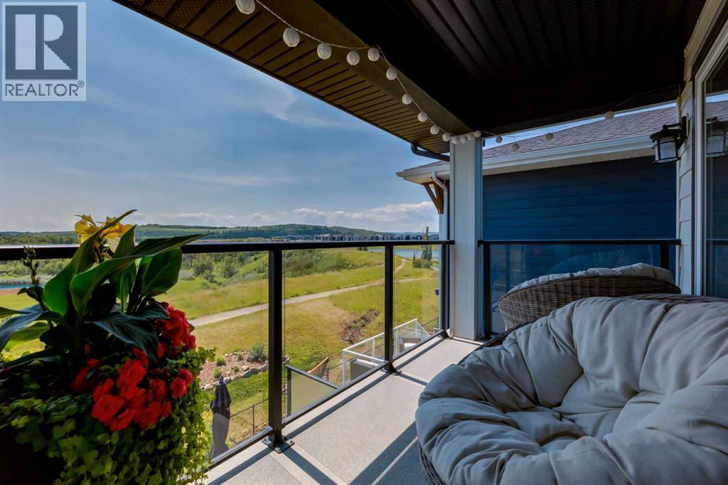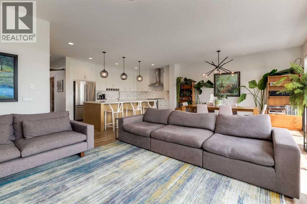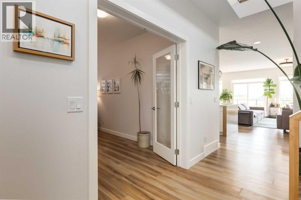 INCREDIBLE LOCATION situated across from a park and backing SOUTH onto the ridge with nature at your doorstep! Offering 2,668ft above grade living space where style meets luxury and no detail spared. Immediately you will love the chic curb appeal with HardiePlank siding and cedar finish garage door where you are greeted inside to gorgeous hardwood flooring throughout both levels, designer lighting and wall to wall windows allowing in an abundance of natural light. The main floor features a chef's dream kitchen with granite countertops, large center island with eating bar, marble backsplash, pantry and high end appliances including an induction range. The dining and living area give access to the expansive deck as well as enjoy a gas fireplace and are positioned to take in the stunning views. A home office, mud room and powder room complete this space. Ascend the beautiful staircase with glass paneled railings where you will find the bonus room with tray ceiling and the primary bedroom with private balcony, his and hers walk-in closets and spa-like 5 piece ensuite with a stand alone soaker tub and glass encased shower. A conveniently located laundry room, 2 additional bedrooms (each with their own walk-in closet) and a 3 piece bathroom are also on this level. The walk-out basement is untouched and allows for endless development opportunities! Additional features not to overlook include Somfy automated (remote controlled) blinds on all south facing windows, dual banded shades on all windows with blackout in bedrooms, central AC, central vac with kitchen and primary bath sweep-inlets, over height garage door and the 50ft gravel dog run accessible from front and garage man door in the landscaped backyard. Enjoy the many parks and miles of scenic walking and biking trails within the community while having quick access to Stoney Trail and Macleod Trail. This home is the perfect blend of peaceful living and urban convenience. Schedule your showing today! (id:55577)