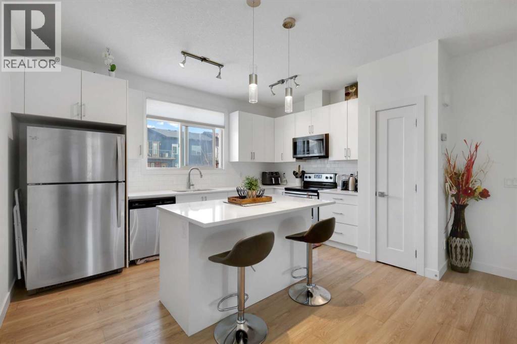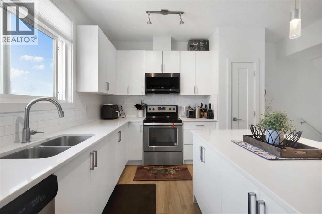 Introducing this stunningly designed townhome in one of Calgary’s most sought-after communities—Sage Hill. Perfectly positioned just steps from a family-friendly playground, this home offers a unique combination of luxury, functionality, and a vibrant community atmosphere.Featuring a versatile double master bedroom layout with dual ensuites, this 2-bedroom, 2.5-bath residence provides over 1,200 square feet of low-maintenance, upscale living. Builder upgrades shine throughout, highlighting exquisite granite countertops, custom shaker-style cabinetry, premium vinyl plank flooring, soaring ceilings, a sleek stainless steel appliance package, and full tile to ceiling in all bathrooms and showers. The glass-paneled balcony adds the perfect touch of elegance and convenience.This home balances modern style with everyday comfort. The open-concept floor plan is filled with natural light, thanks to large windows on every level, creating bright, welcoming spaces that instantly feel like home.Enjoy the practicality of an attached double tandem garage, complemented by a full-length driveway capable of parking three vehicles. Plus, additional guest parking is easily accessible along Sage Bluff Gate, making entertaining a breeze.Whether hosting family and friends or unwinding after a busy day, the thoughtfully designed living spaces and seamless flow set this home apart. Located in one of NW Calgary’s premier communities, it offers quick and easy access to nearby shopping, public transit, parks, playgrounds, and extensive walking and biking trails.Don’t miss this incredible opportunity to own a move-in ready, stylish townhome with exceptional value in Sage Hill—schedule your showing today! (id:55577)