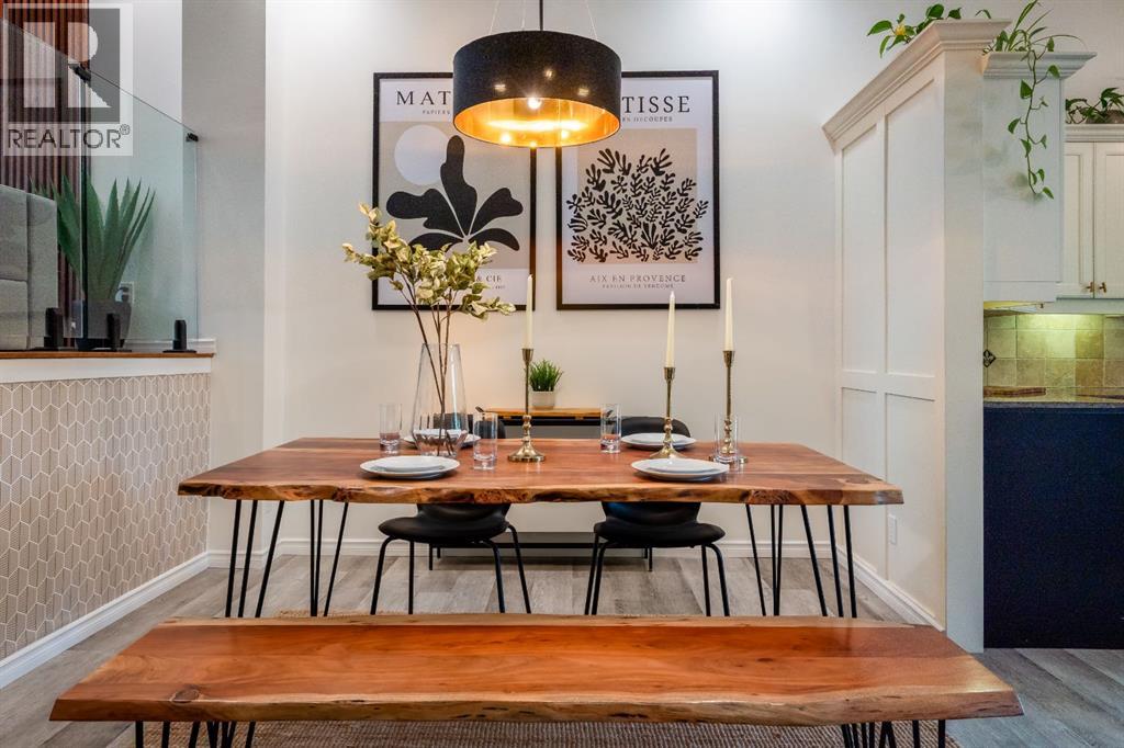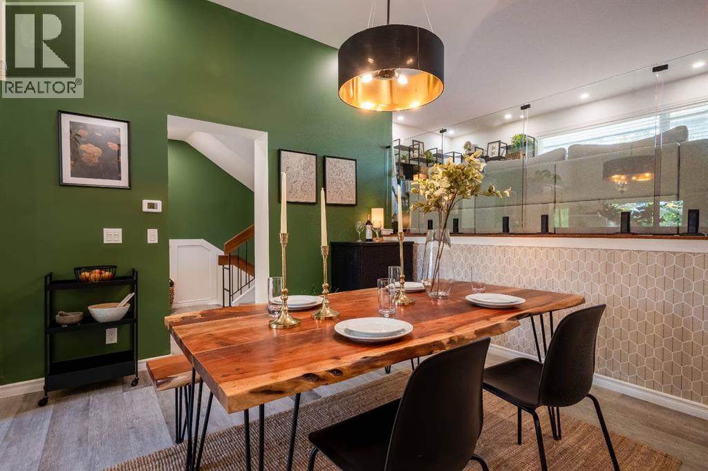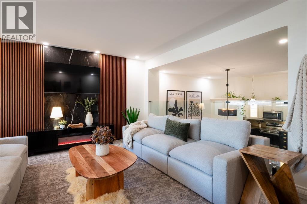 4 bedroom modern, move-in ready townhome with soaring vaulted ceilings and an open-concept main floor designed for luxury living and effortless entertaining. The sleek kitchen features stainless steel appliances, granite countertop and a breakfast bar overlooking a private, tree-lined patio—your own private outdoor retreat. The spacious living room boasts a striking feature wall, expansive windows with Hunter Douglas blinds. Upstairs is new plush carpet highlighted by a dramatic 75” ceiling fan. Each of the 4 bedrooms offers vaulted ceilings, while the primary suite impresses with a 3-piece ensuite featuring a custom glass shower and bold black fixtures. A bright 4-piece main bath with white tile, a finished basement family room, and a single attached deep garage add comfort and convenience. Perfectly located just 5 minutes from Southland Leisure Centre and 10 minutes from Fish Creek Provincial Park, with quick access to major routes, Anderson LRT, and Rockyview Hospital. Braeside Elementary, John Ware Junior High, and St. Benedict Schools are within walking distance. This townhome truly combines style, comfort, and an unbeatable location. Home Inspection & Condo Doc Review completed Feb 2024 and available. (id:55577)