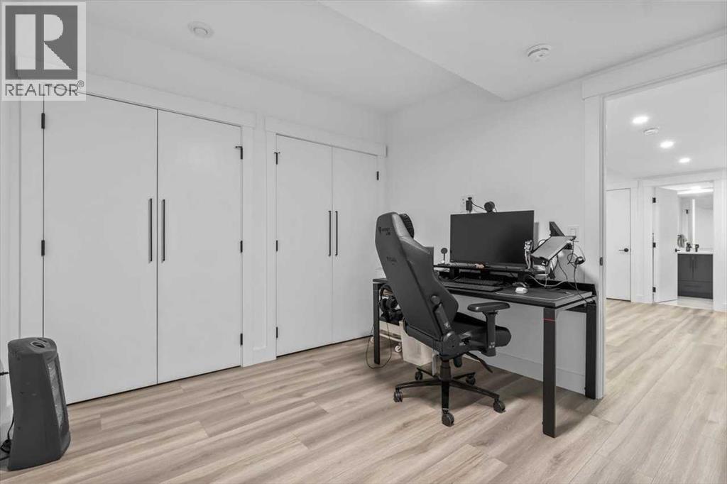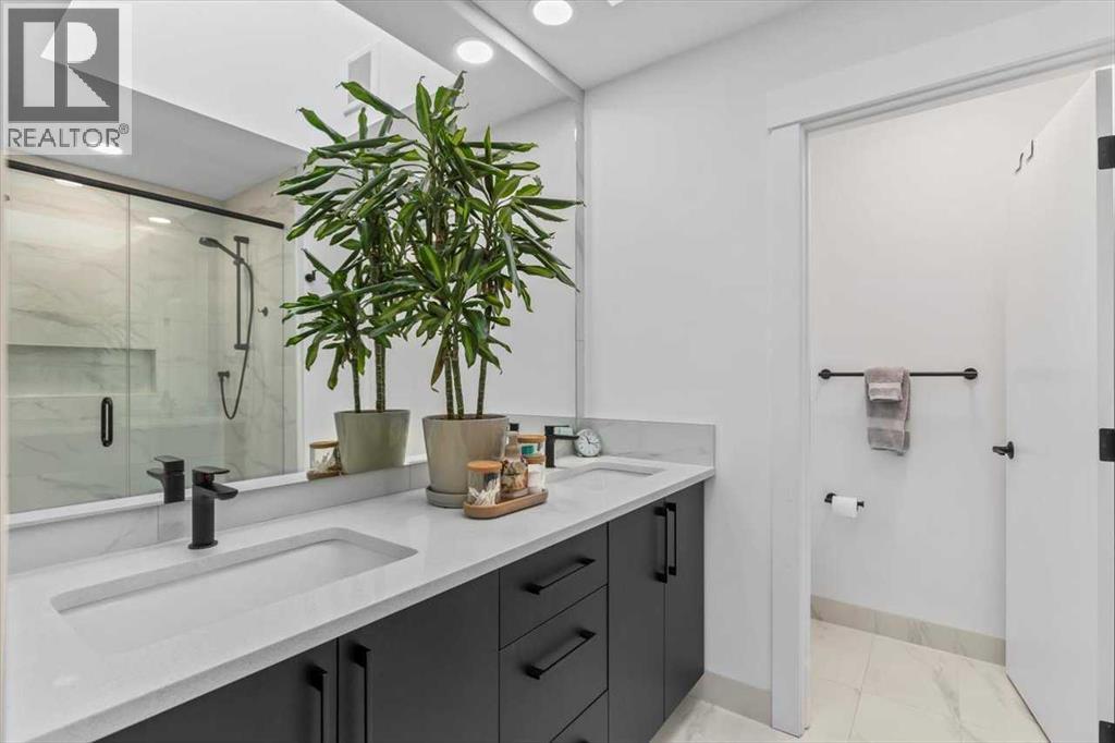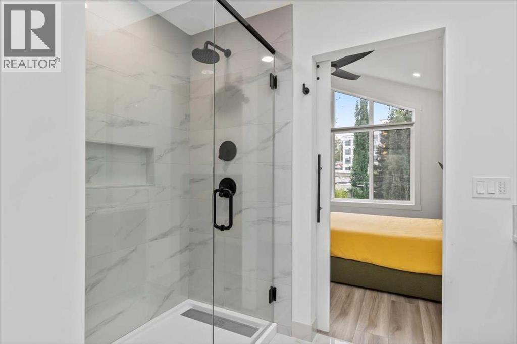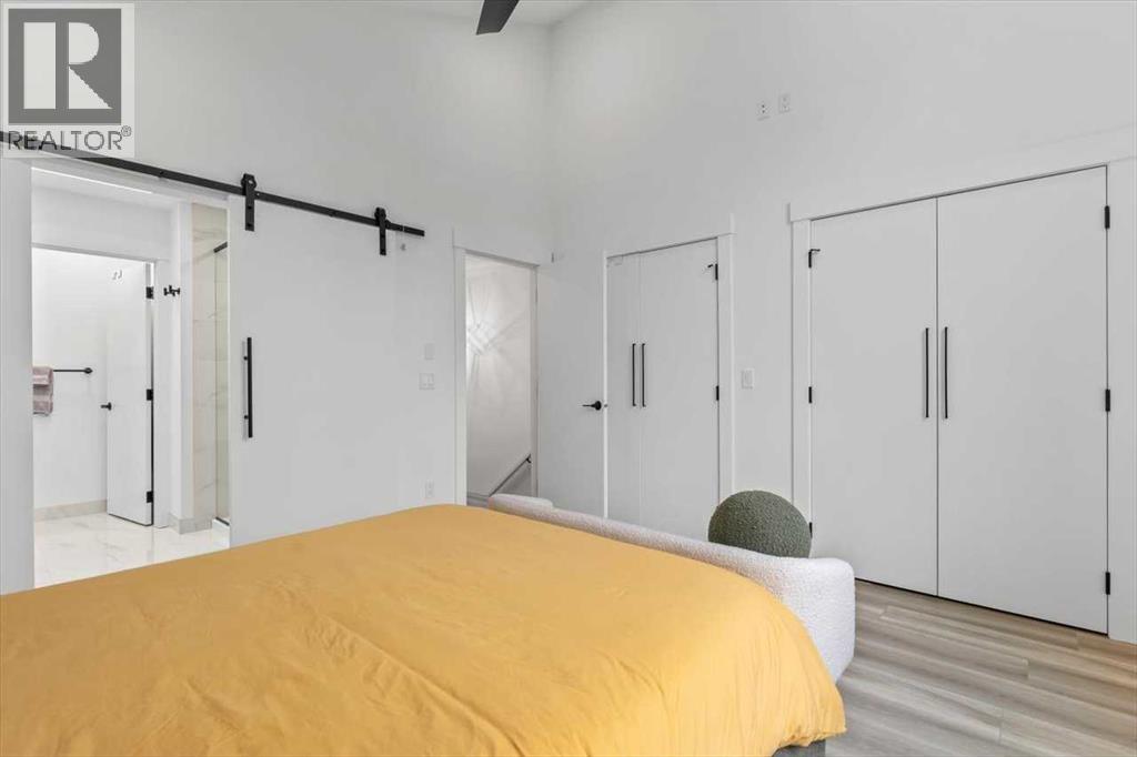 ---- Open house Sat. Nov. 29 from 1-3 pm -----Welcome to this Immaculate and thoughtfully designed town home in the heart of Marda Loop, over 1,700 sq ft of living space, just minutes away from downtown. Features superior party wall system between units. Main floor showcases 11 ft ceiling, open concept layout, vinyl plank flooring, designer built entry unit. The living room is spacious featuring a wall unit, sleek tile, and a Bluetooth enabled electric fireplace. The kitchen is equally impressive, boasting a large island with quartz counter top, ideal for entertaining, ample soft- close cabinetry, stainless steel appliances. The large south facing sliding door brings in rays of sunshine and light through out the day, tastefully covered with Hunter Douglas honeycomb shades and floor to ceiling blackout drapes for privacy professionally installed by Normandeau, overlookimg a fenced, cozy yard leading to a single detached garage.This floor is completed by a spacious guest half bath. Upstairs, the primary bedroom is a true retreat, with vaulted ceilings, double door his and hers closets, large windows with professionally installed electric blackout honeycomb shades. The barn door leads into a spa-like en-suite with heated flooring, double sink vanity, quartz counters, skylight, oversized tiled shower and dual shower heads. The second large bedroom also has it's own en-suite and skylight, plus manual honeycomb shades. The fully finished basement boasts a bright family/ flex room. A third spacious bedroom with a walk-in closet and a full bath. THIS HOME COMES WITH COUNTLESS UPGRADES- A/C, high efficiency furnace, humidifier, thankless hot water on demand, radon extraction sump pump, built-in speaker system, light dimmers in master bedroom, smart thermostat (ecobee), bathroom fan timers, kitchen and master bedroom lights can be manged through smartphone. This exceptional home offers the best of urban living in an ideal location. This is the one you have been waiting for. Book a showing today. (id:55577)