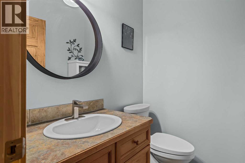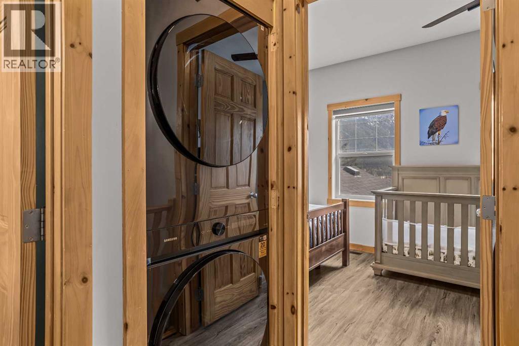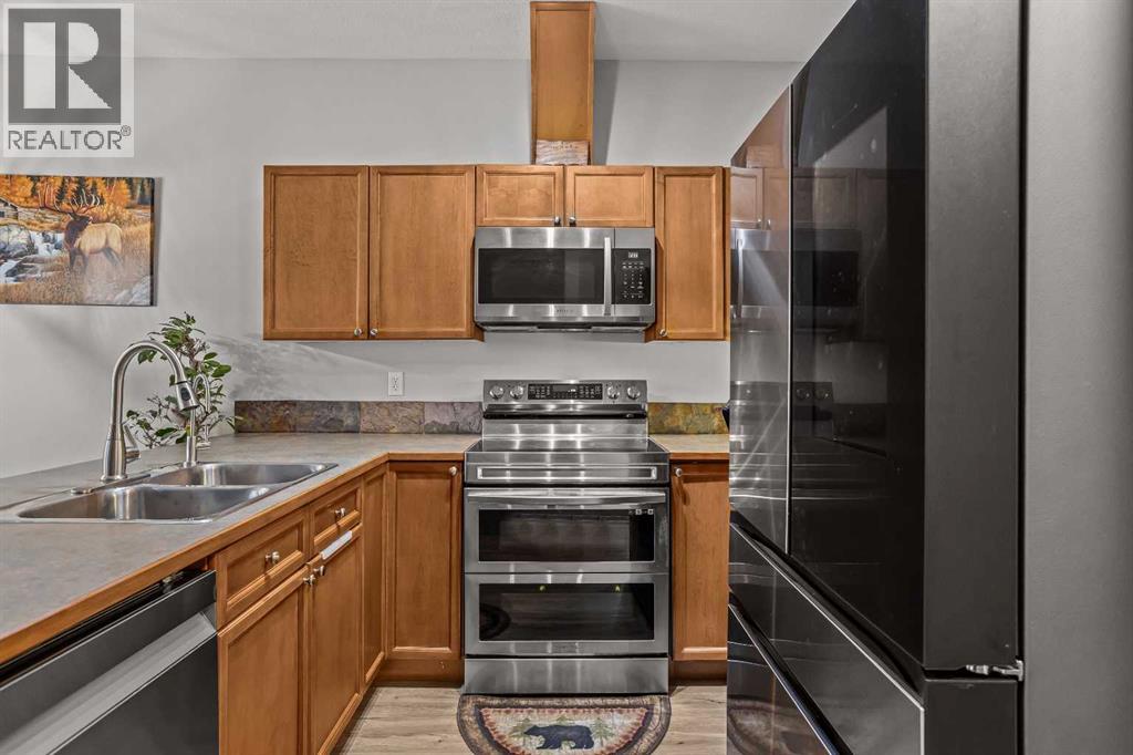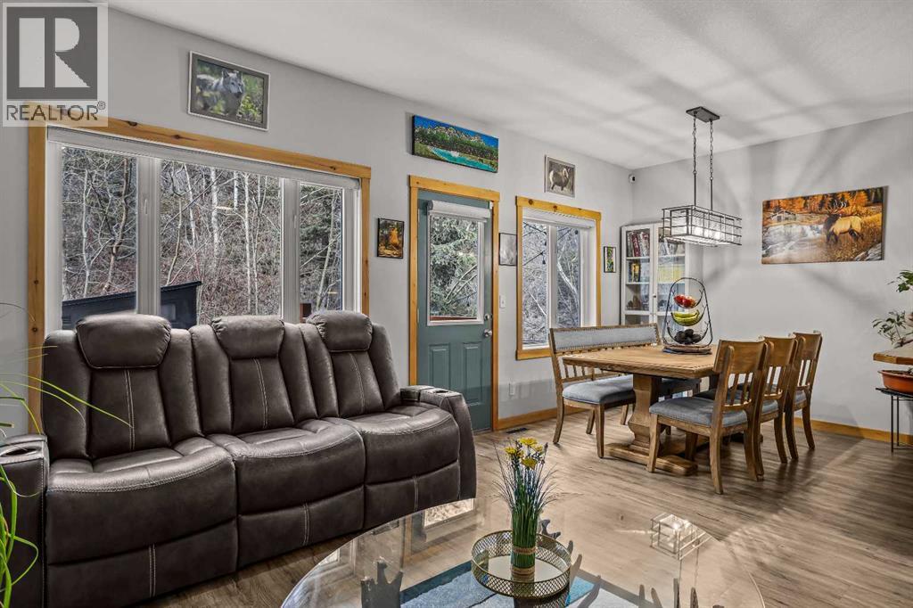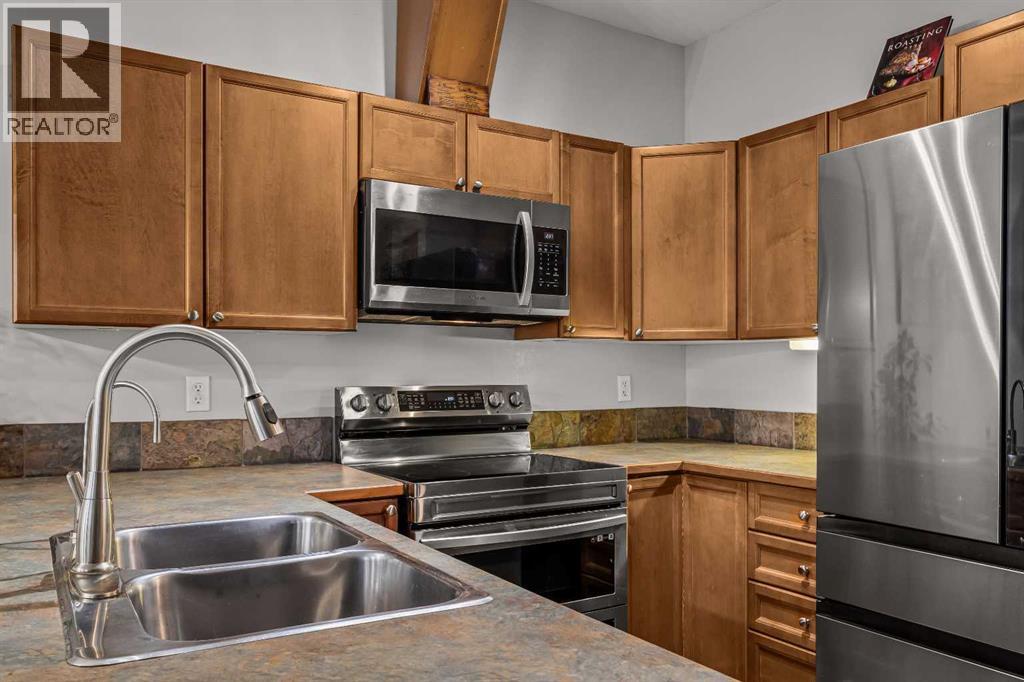Welcome to mountain living in the charming hamlet of Exshaw, just 10 minutes from Canmore and surrounded by endless hiking, biking, and outdoor adventure. Offering over 1,800 SF, this well-appointed 3 bed, 3 bath townhome blends comfort, functionality, and lifestyle with an attached garage, convenient driveway parking, and a charming front porch—an ideal spot to enjoy your morning coffee while taking in the mountain views. Step inside to a spacious foyer that opens into a bright, open-concept main floor. The kitchen is beautifully updated with new Samsung Bespoke stainless steel appliances and a large peninsula island, flowing effortlessly into the dining and living areas—great for both everyday living and entertaining. From here, step out to your fully fenced backyard backing onto private greenspace with no rear neighbors, perfect for pets, summer evenings, and unwinding in nature. Retractable screens on exterior doors invite in the fresh mountain air, while brand new A/C keeps things cool on warmer days. Upstairs, a generous guest bedroom with dual closets and mountain views offers flexible space for family or visitors, along with a 4-piece bath and brand new washer/dryer. The primary suite provides a peaceful retreat with a walk-in closet, beautifully updated ensuite with tiled glass shower, and a Juliet balcony. The lower level adds even more versatility with a spacious rec room, third bedroom, full bath, and second laundry—ideal for guests, movie nights, or added flexibility. With low condo fees and a low-maintenance lifestyle, this is an ideal full-time home or mountain escape. (id:55577)