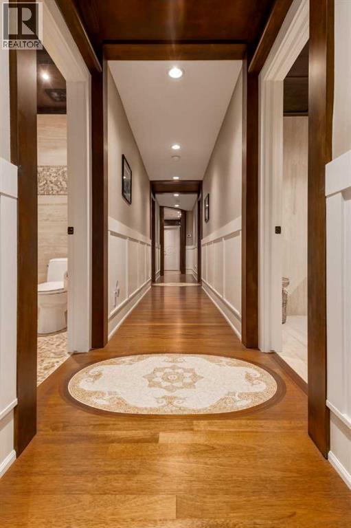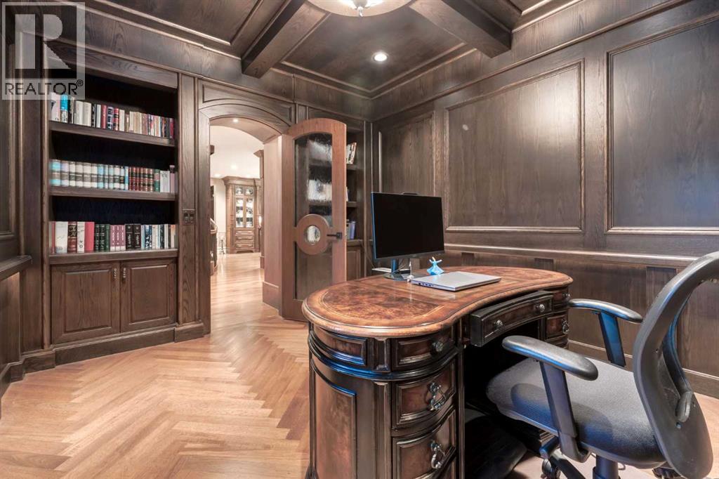 Modelled in the same Chateau style as the Banff Springs Hotel and the Chateau Lake Louise, this exceptional home boasts the same quality materials found in these iconic properties. As you tour this masterfully designed home, you will be awestruck by the unparalleled attention to detail and the symmetry and balance in repeating themes. Circular elements can be found on the interior doors, in the inlaid pattern on the driveway, crafted into the custom hood fan and in the decorative tile backsplash. Arched doorways and windows, domed ceilings and barrel vaults are some of the curved elements that soften the straight lines of perfect symmetry throughout the home. Forged steel light fixtures, door handles and railings are softened by rich wood and natural stone. There was truly no detail overlooked when creating this work of art. With over 4,500 square feet of finished living space, five bedrooms, all with ensuite bathrooms and walk-in closets, a walk-out basement, a large bonus room, a spectacular entertaining bar, a media room, two staircases and an oversized triple attached garage, this home is perfect for large families. Impeccably finished with only the highest quality materials, this home features top-of-the-line appliances, carefully curated hardware, hardwood and stone imported from Brazil, exterior copper accents, cobblestone and endless custom millwork crafted on-site. With so many incredible details, this home must be seen to be truly appreciated. (id:55577)