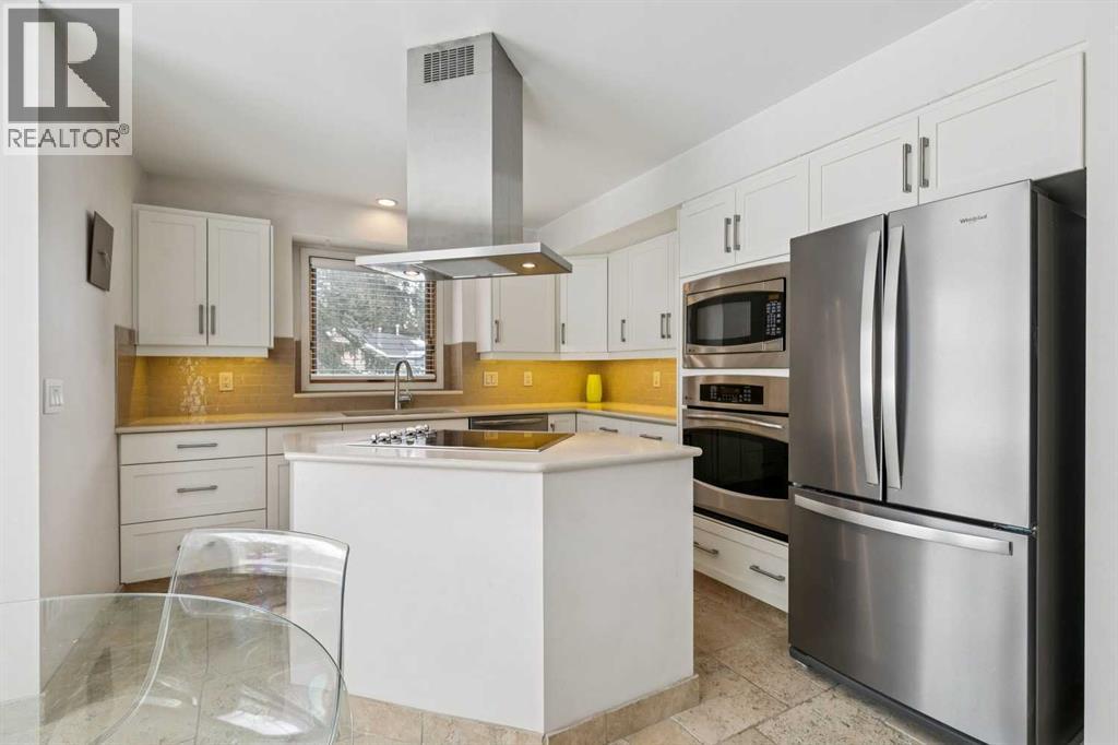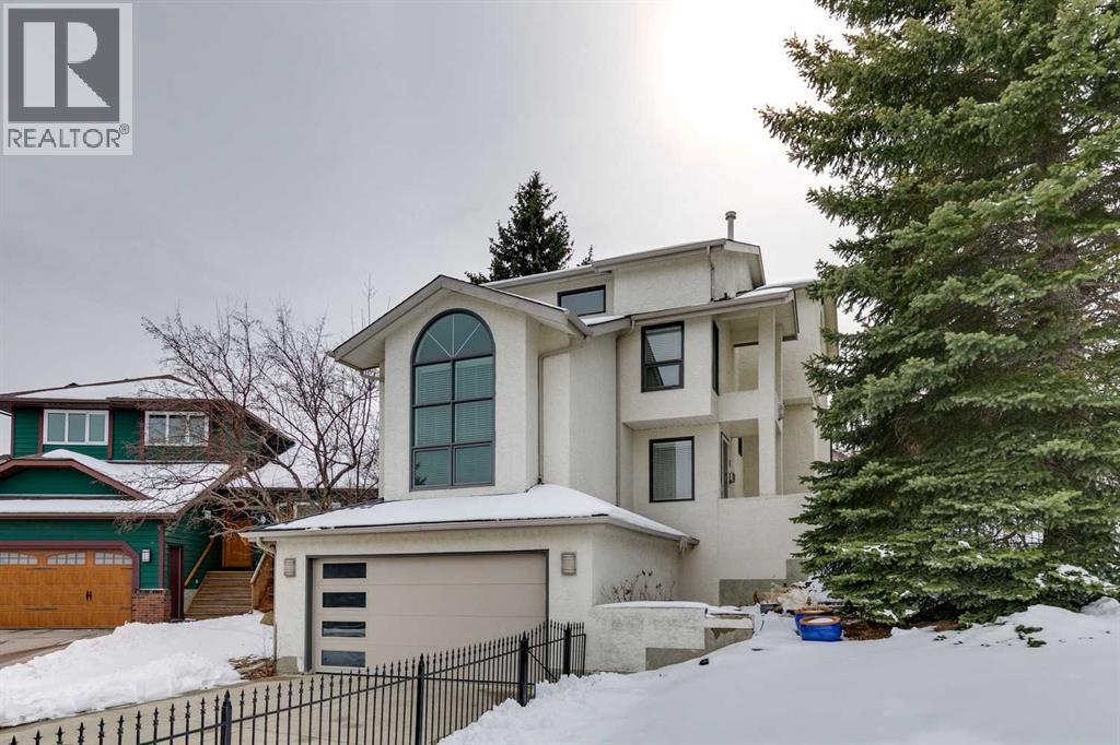 JUST LISTED in COACH HILL! Fully finished split level on a QUIET CUL-DE-SAC LOCATION, PRIVATE SW FACING BACKYARD, VIEWS OF NOSE HILL PARK, and LARGE DOUBLE ATTACHED GARAGE that will fit a full sized truck! Amazing floor plan - private living room with HIGH VAULTED CEILING, LARGE WINDOWS, and HARDWOOD FLOORING. Family room with wood burning fireplace is adjacent to the kitchen with WHITE CABINETRY, BUILT-IN OVEN & MICROWAVE, QUARTZ COUNTERTOPS, and a good sized nook area. The formal dining room is perfect for those larger gatherings. A PRIVATE NOOK/OFFICE AREA is tucked away for those work from home days. OPEN RISE STAIRCASE leads to the upper level with 3 large bedrooms ALL WITH VAULTED CEILINGS, including the PRIMARY bedroom with a 3 PCE ENSUITE BATH. The 4 PCE guest bathroom is conveniently located next to the 2 spare bedrooms. Lower level has a recreation area, wet bar, small 4th bedroom/den, large laundry area, and a 3 PCE partially finished bathroom. OFF-LEASH dog park, walking and biking trails are close by. Extras in this home - Large lot over 6000 SF, NEWER ROOF (2016), NEWER WINDOWS (2016), NEWER WATER HEATER (2021), landscaped beautifully with MATURE TREES, large deck, custom garden shed, RV parking pad out back of the property, the list goes on and on. Request your showing today as this property is priced to sell at $699,900 and will not last long! (id:55577)