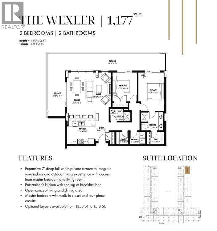 For more information, please click the "More Information" button. Discover a home that blends functional design with refined finishes, delivering a living experience that truly stands out. Enjoy seamless indoor-outdoor living with a spacious 7-foot-deep, full width private terrace. Accessible from both the primary bedroom and living room, this impressive outdoor space is perfect for relaxing, entertaining, or simply enjoying the fresh air. The contemporary kitchen is thoughtfully designed with a generous breakfast bard, providing ample seating for casual meals or social gatherings. The open-concept living and dining area creates a bright and welcoming environment, ideal for hosting guests or spending time with family. Photos contain digitally rendered and/or sample images. (id:55577)