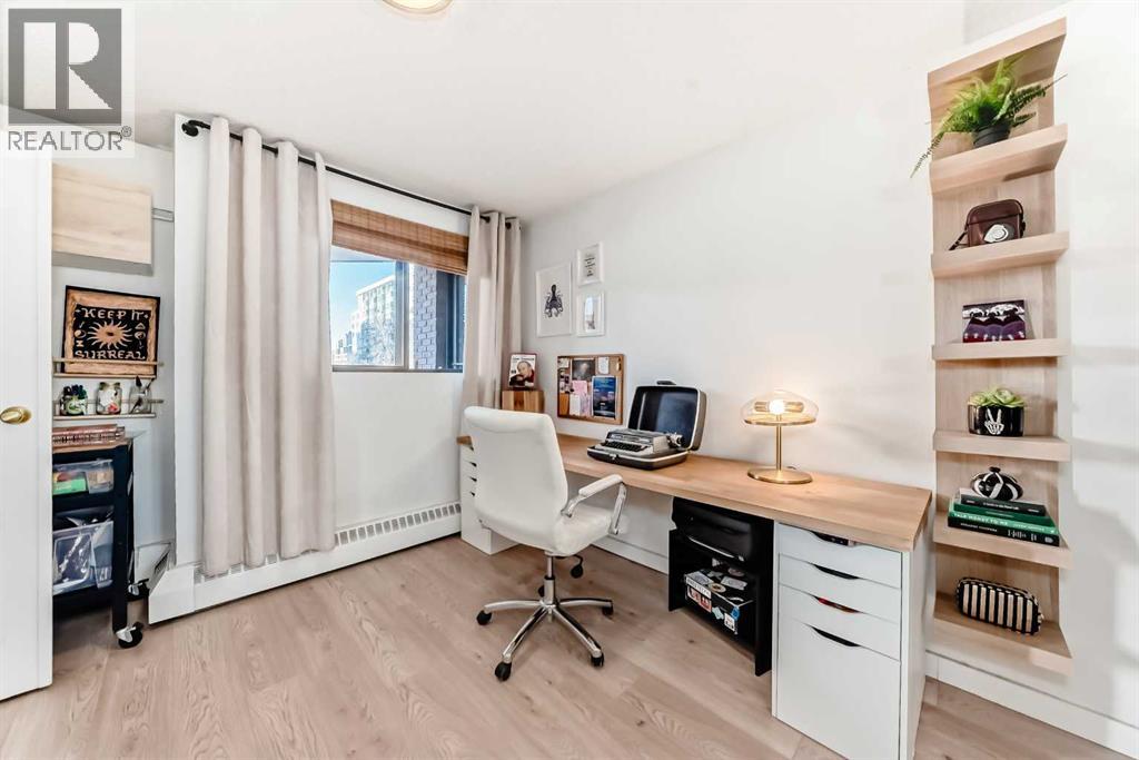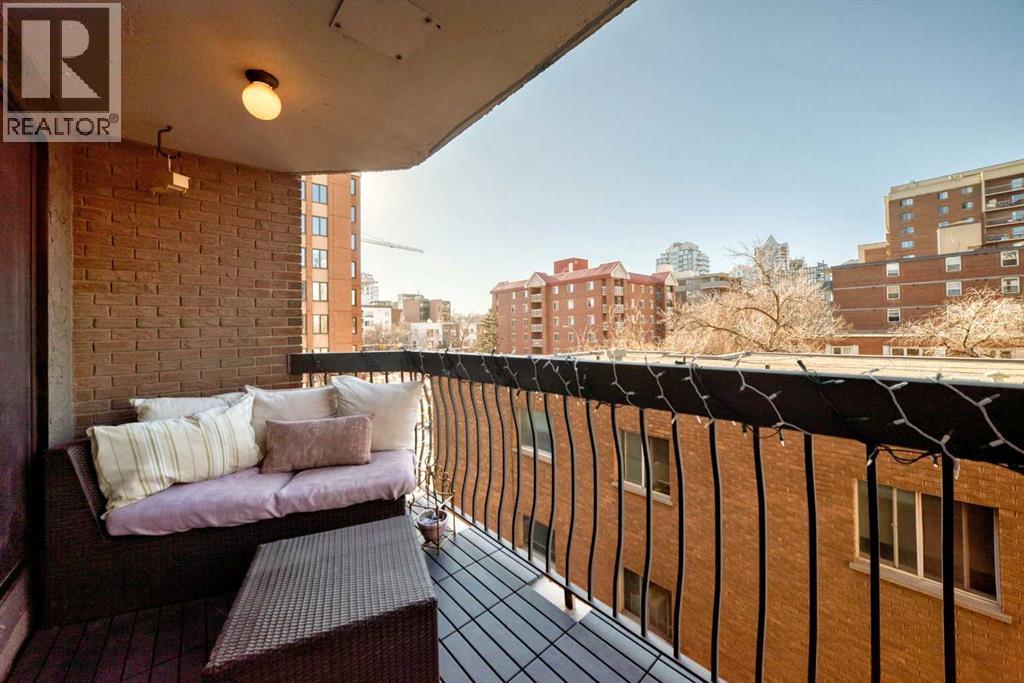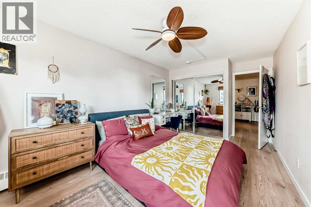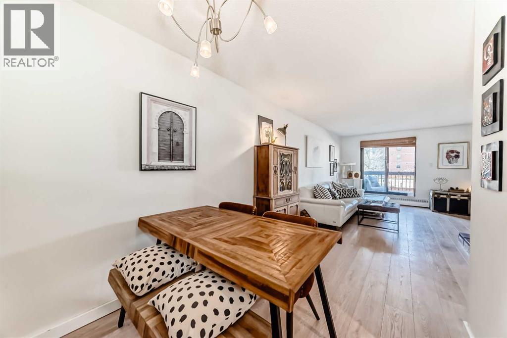 Welcome to this fabulously updated 2 bed/1 bath unit in the heart of the Beltline, just a skip the beautiful Lougheed House, and an easy walk to 17th Ave! Situated in a mature neighbourhood & well managed building, you'll appreciate the bright & airy space with newer luxury vinyl plank throughout. The kitchen features ample storage in the contemporary cabinetry, quartz counters and newer appliances, and loads of room for a good size table in the dining room. The large living area features a gorgeous gas fireplace with smooth facade, and wide slider doors to the huge balcony, flooding the room with light, and ideal for entertaining friends & family. The generous primary bedroom has plenty of room for a king size bed and a private door to access the balcony. The second bedroom is also good sized and features double French doors bring in loads of light. The updated 4 pc bath, with updated vanity & marble counter and in unit laundry/storage complete the tour. The roof top community patio is perfect for relaxing on warm summer evenings. Or enjoy a well deserved sauna in the building after a cold winter walk. The building is ideally situated in a residential area, with parks & playgrounds nearby, and is an easy walk to 17th Ave with fantastic restaurants, shops & grocery. Book your showing today! (id:55577)