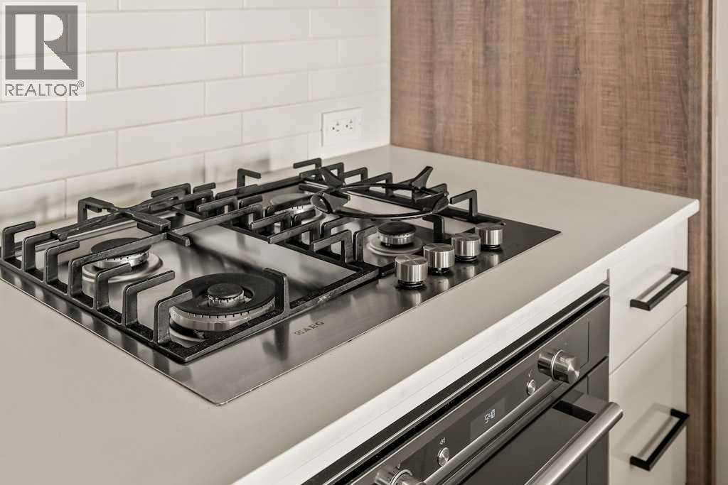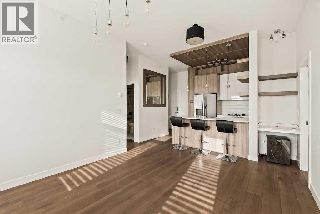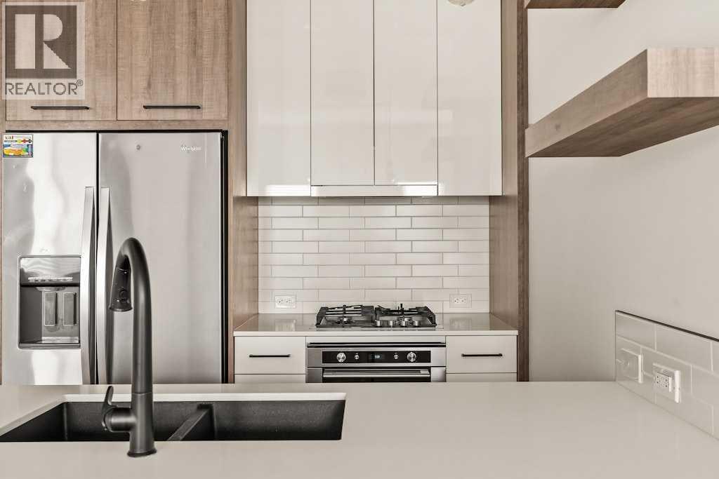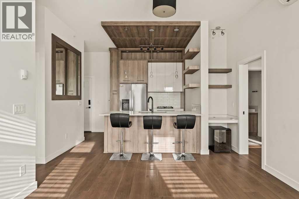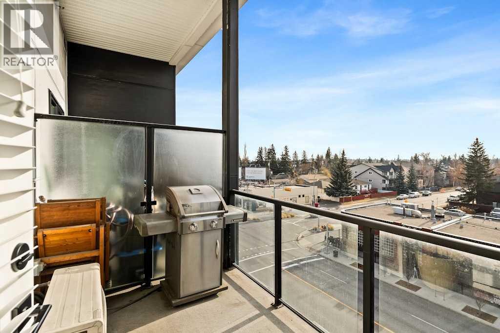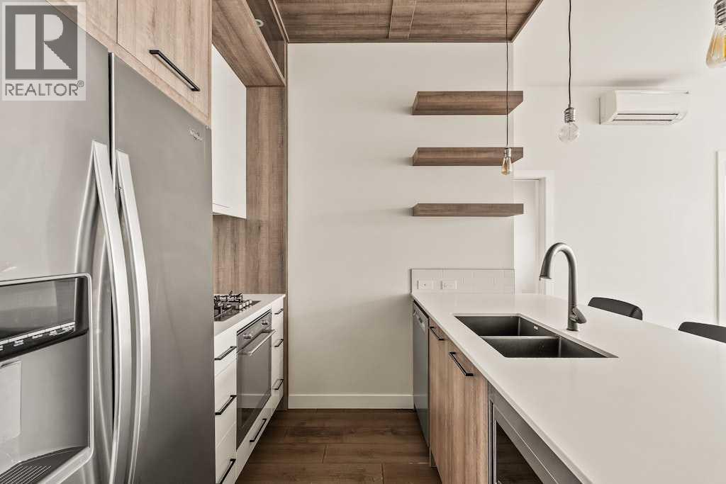 Perched on the top floor of 1741, this beautifully curated 2-bed, 2-bath residence blends contemporary sophistication with effortless urban living, offering a sunny south-facing balcony with a gas BBQ hook-up and a coveted position steps from Calgary’s favourite restaurants, boutique shopping, the LRT, Killarney Pool, Shaganappi Golf Course, local parks, and the library. Inside, illuminated in natural light and boasting all fresh paint, discover hand-scraped engineered hardwood floors that sets a warm, textural foundation for the opulent picture-frame kitchen-finished with high-gloss soft-close cabinetry, white subway tile backsplash stainless steel appliances including a gas cooktop and french-door fridge with filtered water/ice, Caesarstone counters, an under mount sink, under-cabinet LED lighting, and modern industrial-inspired fixtures glowing with vintage Edison bulbs. Thoughtful finishes elevate the everyday: A/C, a custom pantry, added shelving over the built-in desk nook, a newer dishwasher (1.5 years), garburator, matte-black hardware throughout, and seamless in-suite laundry. The spacious layout offers plenty of space to entertain, and offers excellent separation between the bedrooms, making it ideal for couples, professionals, or shared living, while underground titled parking and an assigned storage unit provide year-round convenience. Perfectly balancing high design and high function, you'll find every element of refined inner-city living in one exceptional property. **OPEN HOUSE: Saturday, November 15th from 1:00 - 3:00pm** (id:55577)