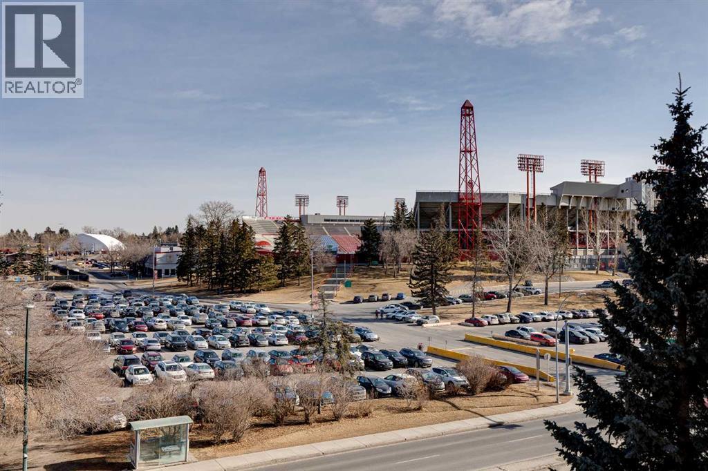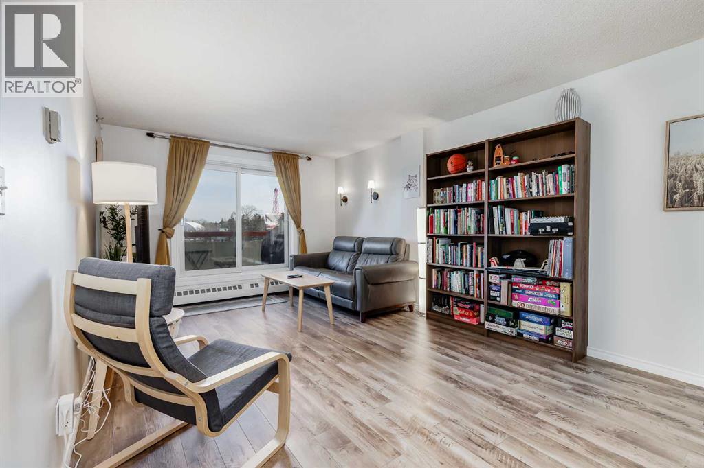 Welcome to this beautiful, light, bright and spacious two-bedroom apartment on the 4th floor of Laureate Place. Located within a walking distance of the University of Calgary, Foothills Hospital, Children's Hospital, and C-Train, this prime location provides unparalleled convenience and ample services. From your private balcony you can enjoy spectacular views of Calgary’s downtown skyline, beautiful sunrises and sunsets. Enter this immaculate unit and you will find fresh paint and newer vinyl flooring throughout. This unit features two full size bedrooms, two 4-piece bathrooms with quartz counter tops, spacious kitchen with upgraded quartz countertop and a big central island, an open concept dining and living room. A generous size laundry room provides a good space for your storage needs, plus one heated underground parking is included. Refrigerator, washer and dryer 2022, paint and lights 2023. This apartment is the perfect choice for students, professionals, investors, and those seeking to be part of Calgary's finest community! (id:55577)