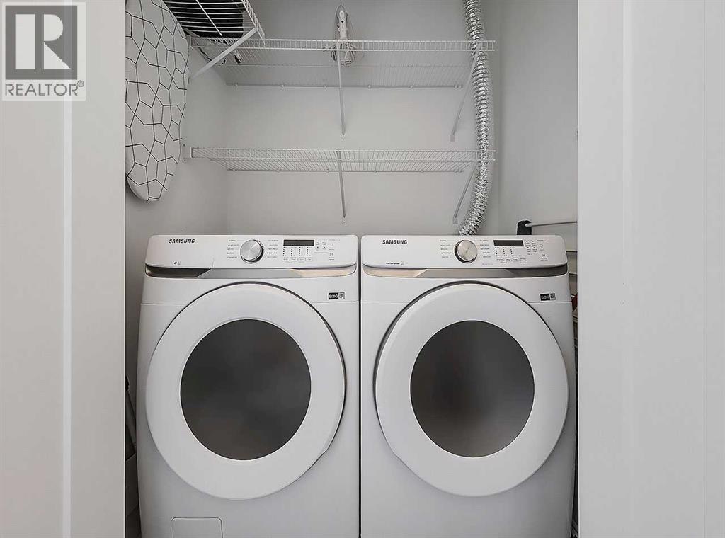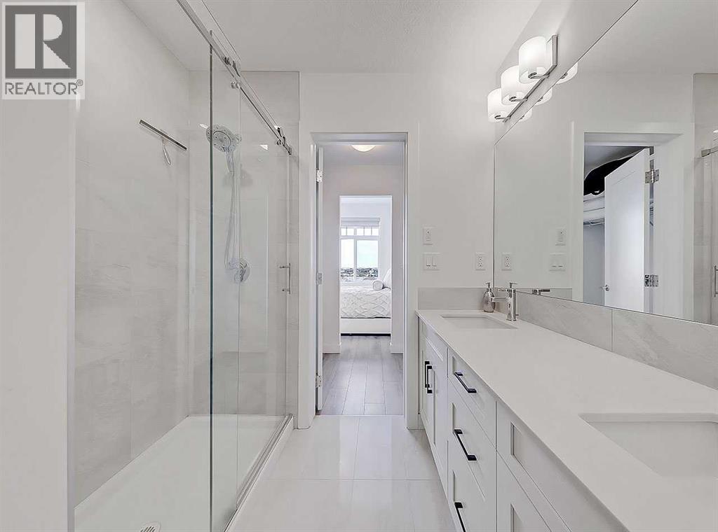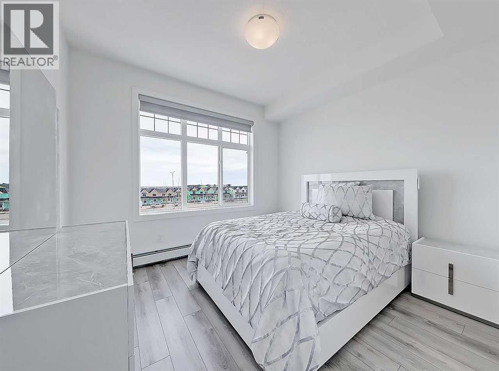 Welcome to Auburn Rise! Here’s your rare opportunity to own THE BEST UNIT in the building in one of Calgary’s few LAKE communities; A TOP FLOOR, CORNER UNIT featuring TWO BEDROOMS, TWO FULL BATHROOMS, AIR-CONDITIONING and underground parking for TWO VEHICLES! This beautiful building is part of a well-managed complex offering modern style and contemporary finishes that rival most condos in the City, and built only 4 years ago. Step into Unit 406 and you’re welcomed with tall 9-foot ceilings and wide-plank LVP flooring that flows throughout, leading to large windows that completely fill the open-concept living space with BRIGHT natural light. With classic shaker style cabinets in crisp white, and a huge 6-person island with double-waterfall quartz counters and undermount composite sink, the kitchen is a host’s dream come true for guests and family gatherings alike. A suite of quality stainless appliances include a built-in stove and microwave oven, along with a glass countertop range promising quick and easy cleaning once the cooking is done. Step outside and you’ll find a gracious patio, extending nearly 20 FEET along the front of the unit, giving incredible PANORAMIC VIEWS clear to the skyscrapers of the downtown core, and even to the mountaintops to the West, where you’ll get to watch Calgary’s famous SUNSETS! The master bedroom is found tucked away around the kitchen, with an east window offering bright and sunny mornings (and cool evenings), then leading to a walk-through closet which gives way to a private 4-pc ensuite bathroom with dual-sink vanity. The second bedroom also benefits from this east exposure but also offers private access to the shared 4-pc bathroom thanks to a convenient pocket door, meaning guests don’t need to leave the bedroom for access.With so many condos, parking is always an issue, but this unit comes included with an extra large TITLED underground parking stall, allowing for TWO VEHICLES to be parked in tandem. If you need more stora ge, a storage space is also assigned to the unit and located only steps away from the parking stall, the perfect place to store seasonal items or sports equipment. Finally, location, location, location! Imagine NEVER having to drive to the grocery store again! With Co-op located ACROSS THE STREET, as well other shops, TIM HORTONS, and even the local community pub/restaurant, home can finally be a place where you park your car and take a walk instead. Don’t forget you’ll also get LAKE ACCESS where you can swim and soak up the rays on the beach just down the street from your home! (id:55577)
