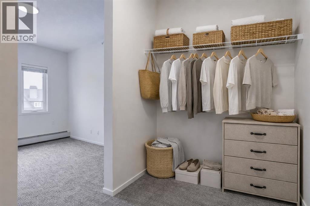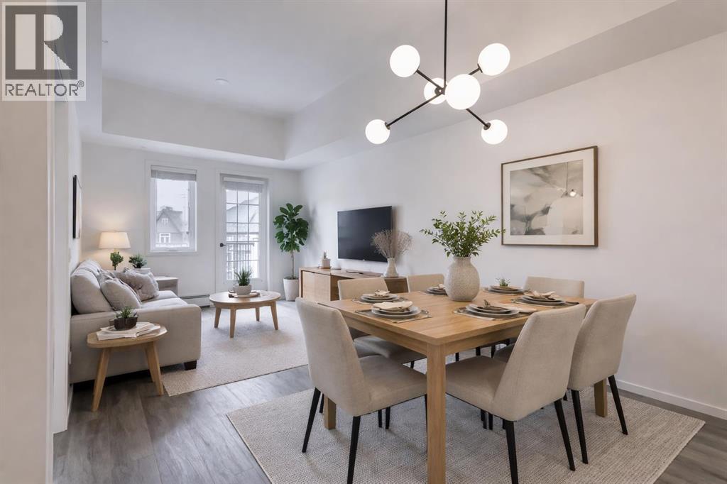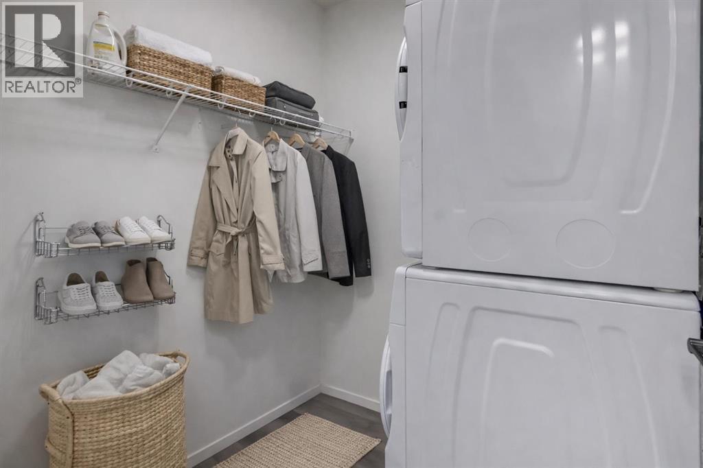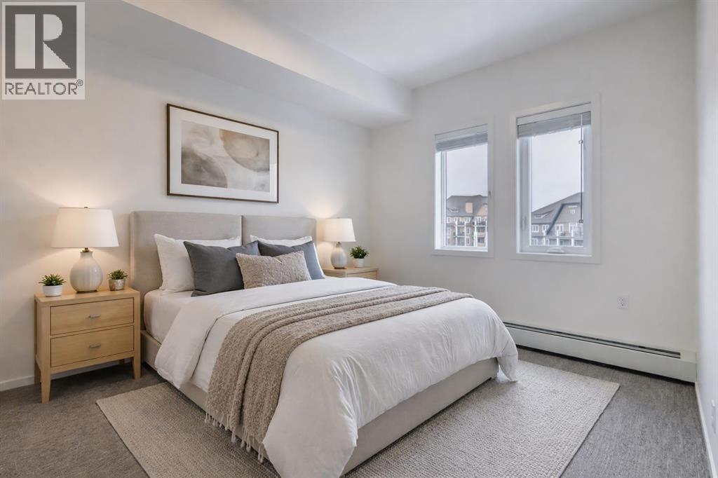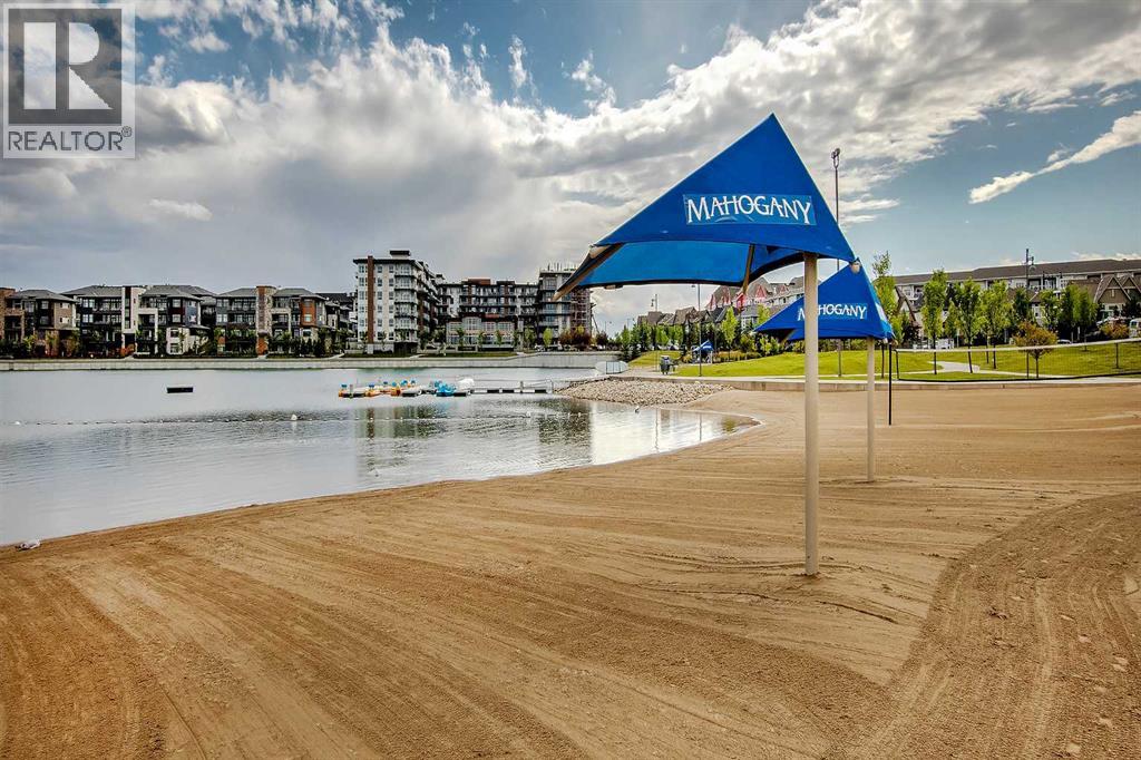 Step into a lifestyle that feels like a getaway—every single day. Welcome to Sandgate at Mahogany, built in 2025, where lakeside living meets everyday convenience in one of Calgary’s most vibrant, sought-after communities.Perched on the top floor, this beautifully designed 1-bedroom, 1-bath condo offers soaring ceilings and an airy, open feel that instantly feels like home. Sunlight pours into the living space, highlighting the modern finishes—quartz countertops, sleek luxury vinyl plank flooring, and brand-new Whirlpool stainless steel appliances—all thoughtfully chosen to blend style with effortless living.The kitchen flows seamlessly into the dining and living areas, creating the perfect space to unwind or entertain. Just beyond, your private balcony overlooks the peaceful courtyard and is already roughed-in for A/C and a gas line—ideal for summer BBQs and quiet evenings outdoors.Your spacious bedroom becomes a true retreat, complete with soft carpeting, a walk-through closet, and direct access to a semi-ensuite bath. A generously sized laundry room with extra storage adds to the everyday ease this home offers. All utilities included except power.But what truly sets this property apart is the lifestyle. From your doorstep, you’re moments from the energy of Westman Village—boutique shops, cafés, restaurants, and fitness studios—all woven into a walkable, community-focused setting. Spend your days at Mahogany’s private Beach Club, where you can paddleboard, swim, fish, or simply relax by the water. Parks, pathways, playgrounds, and dog parks are all just steps away. This unit comes with 1 titled parking stall. With access to a resident fitness studio, guest suites, and a pet-friendly environment, this home is perfect for first-time buyers, downsizers, or investors looking for something special.This isn’t just a condo—it’s a lifestyle. Pack your bags and start living it. (id:55577)
