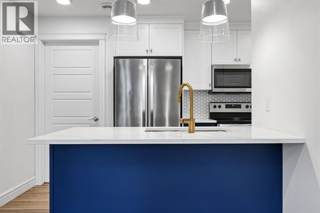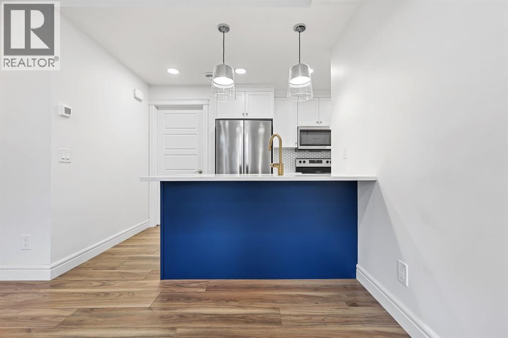 Quiet Location and Parking for 2 cars with this unit! Attached Garage and a Long driveway like this one are hard to find. This bright main floor townhome is located minutes away from the Seton YMCA and south Calgary Health Campus. The inviting bright and open floor plan offers a good size living room, well appointed Kitchen with lots of cabinets and Light coloured Quartz Countertops that are accented by modern blue cabinets. Stainless Steel appliances add to the decore and the peninsula Island offers an eating bar for your convenience. With the 4 piece Bathroom, ample size Primary Bedroom and a second bedroom/den you have lots of lifestyle choices. A Laundry area/furnace room offers so much convenience to have in your home. You can enjoy direct access to you insulated garage on those cold days as well! There are lots of shops, restaurants and amenities within walking distance and you have excellent access to major roads. Do not miss your chance too get this property. (id:55577)
