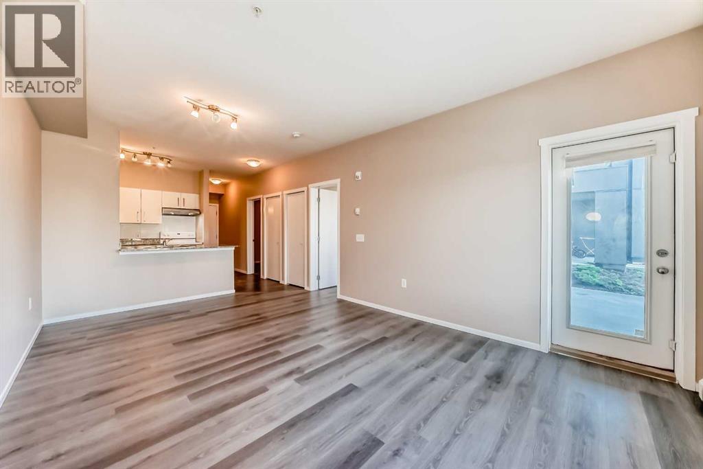 Welcome to this charming 701.7 square feet ground-floor apartment in the heart of Skyview Ranch NE, where comfort meets convenience in a vibrant community setting. This unique unit offers not one, but two entrances—one through the main building and another private entrance that opens to your own patio and the outdoors, perfect for enjoying fresh air and easy access to nearby paths. Step inside to a thoughtful and inviting floor plan. As you enter, a 4-piece bathroom sits conveniently to your right. The hallway leads you into a functional kitchen that flows seamlessly into a bright and open living area—ideal for both everyday living and entertaining. On your left, you’ll find two well-sized bedrooms filled with natural light, along with your very own laundry room for added ease. The patio extends your living space outdoors, offering direct access to scenic walking and bike paths—perfect for morning jogs, evening strolls, or weekend rides. This unit comes with one underground, titled parking which adds convenience, security, and everyday comfort. Freshly painted and with its brand new luxury vinyl plank flooring, this apartment is move-in ready and designed to impress. Living in Skyview Ranch means being just steps away from everything. With shopping, dining, and major roadways nearby, you’ll enjoy both the tranquility of a welcoming neighborhood and the convenience of city access. This home is more than just a place to live—it’s a lifestyle. Book your showing appointment today and picture yourself sipping coffee on the patio, biking the community trails, and coming home to a space designed for both comfort and function. (id:55577)