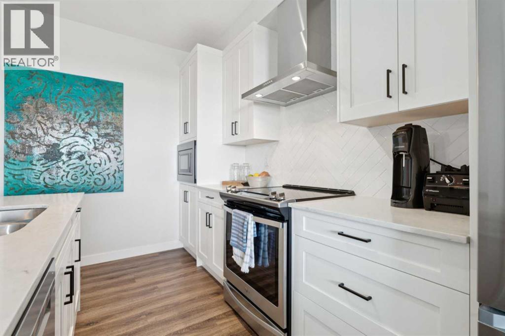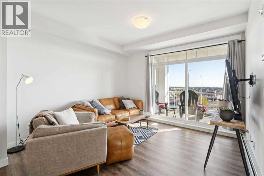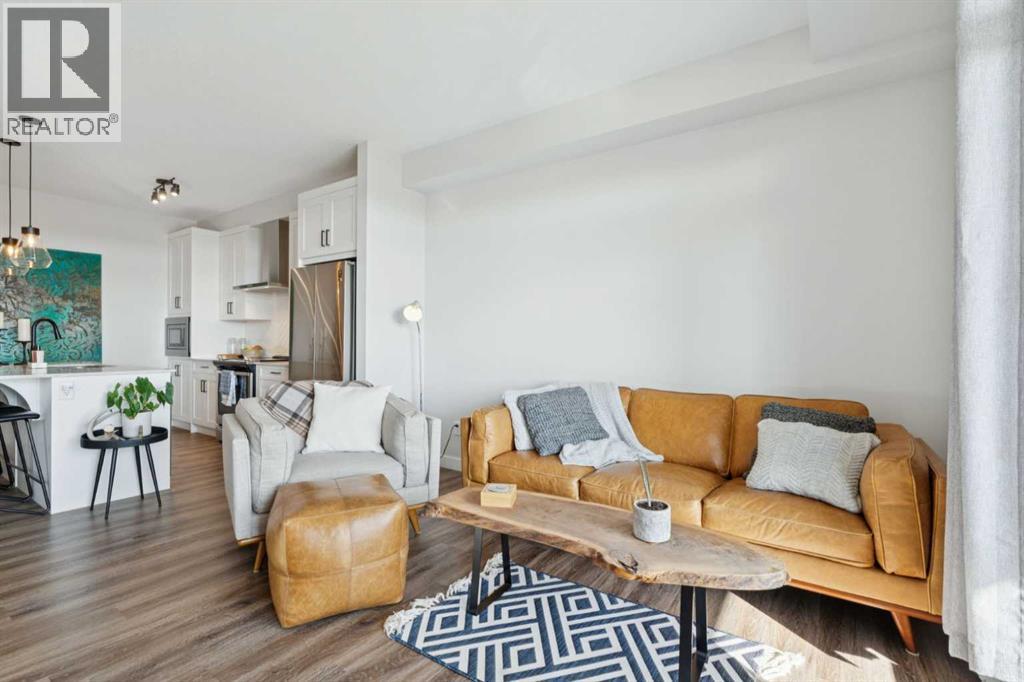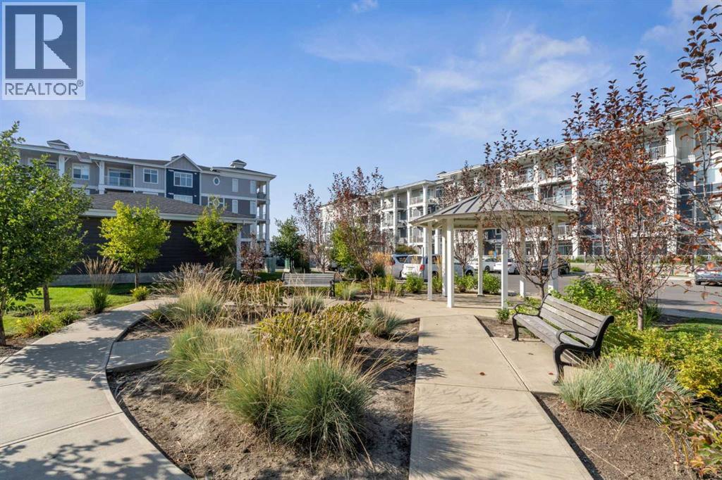 Look no further for your TOP floor unit with beautifully curated interiors and a functional layout. This unique "Pratt" layout by Logel Homes, is for the home buyer who wants a larger single bedroom and larger living quarters- no small bedrooms here! Enjoy upgraded finishings like the herringbone tiled backsplash, stainless steel appliance package, trendy black pendant lights, luxury vinyl plank flooring throughout and an integrated microwave that helps the functionality of the kitchen flow seamlessly. The spacious bedroom accommodates large furniture and welcomes personal items & belongings with a walkthrough closet. Tucked past the closet is a 4-piece ensuite with a tiled bath/shower and sparkling quartz counter tops. The unit has a second bathroom for guests- offering convenience and privacy for the homeowners. Just off the cozy living room are sliding balcony doors that take you to your private outdoor hub- which includes a gas barbecue! We cannot forget to mention, one of the best features of Auburn Bay... LAKE ACCESS! Enjoy year-round exclusive access to the Home Owners Association which includes a splash park, tennis courts, a fishing dock, a boathouse, picnic tables, gymnasiums and more. Nearby services like South Health Campus (3 min drive) and grocery stores, shopping, entertainment and parks just a couple blocks away, makes Auburn Bay a community of choice for many. Complete with a titled parking stall (end stall) and an over-sized storage locker compared to other units, this is an ideal choice for vibrant living in one of Calgary's most desired neighbourhoods. LIKE-NEW, gently lived in, this unit is truly turn-key and could be yours today! *Mortgage at 1.69% may be assumed, subject to buyer qualification and lender approval. Please contact listing agent for details. (id:55577)