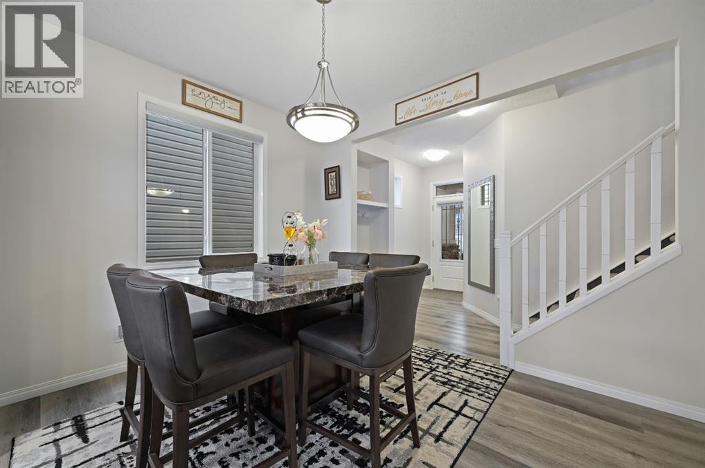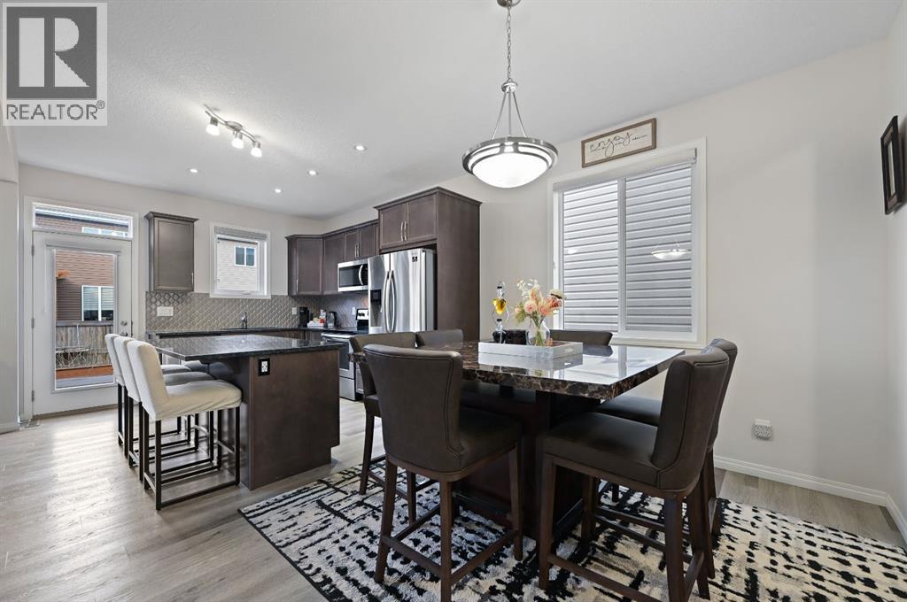 Located in desirable South Windsong, this 2018-built 2-storey home offers 2,419 sq. ft. of living space, a double attached garage, a brand-new air conditioner, and a fully fenced lot - a perfect blend of modern comfort and everyday convenience. The main floor features 9-foot ceilings, enhancing the sense of space throughout the open-concept layout. Natural light highlights the LVP flooring, while the kitchen offers quartz countertops, stainless steel appliances, ample cabinets, and a large pantry making it a perfect setup for cooking and gathering. The dining area transitions smoothly into the living room, highlighted by a corner gas fireplace and classic mantle. Just beyond the kitchen, a brand-new composite deck invites you to extend your living outdoors. A convenient half bathroom finishes off this well-planned main level. On the upper level, you’ll find three well-sized bedrooms, each offering comfort and versatility, while the bonus room provides flexibility and opportunities for entertainment, creativity, or a quiet workspace. The primary bedroom offers a serene escape, complemented by a 4-piece ensuite with a deep soaker tub, separate shower, and a walk-in closet that keeps everything in order. Also on this level one will find a shared full bathroom and a separate laundry room to ensure the upper floor remains both practical and well-organized. Venture downstairs to a fully unfinished lower level with rough-in plumbing, offering a blank canvas ready for your vision - be it a home gym, theatre room, or added living space. Located just minutes from local shops, schools, and parks, this home blends everyday convenience with a sense of comfort. And for those who prefer a quieter commute, nearby back roads offer a smooth way to bypass the city’s busy traffic. Thoughtfully designed. Effortlessly livable. Perfectly positioned for what comes next. (id:55577)