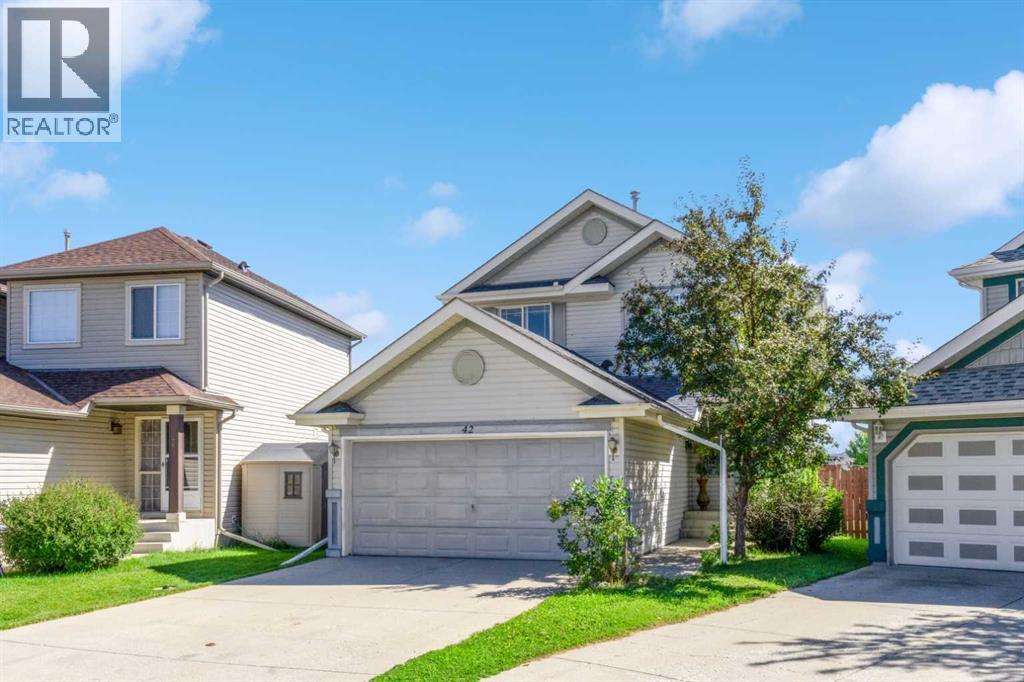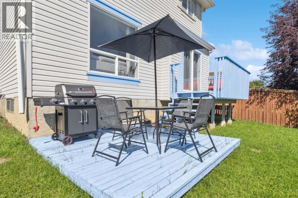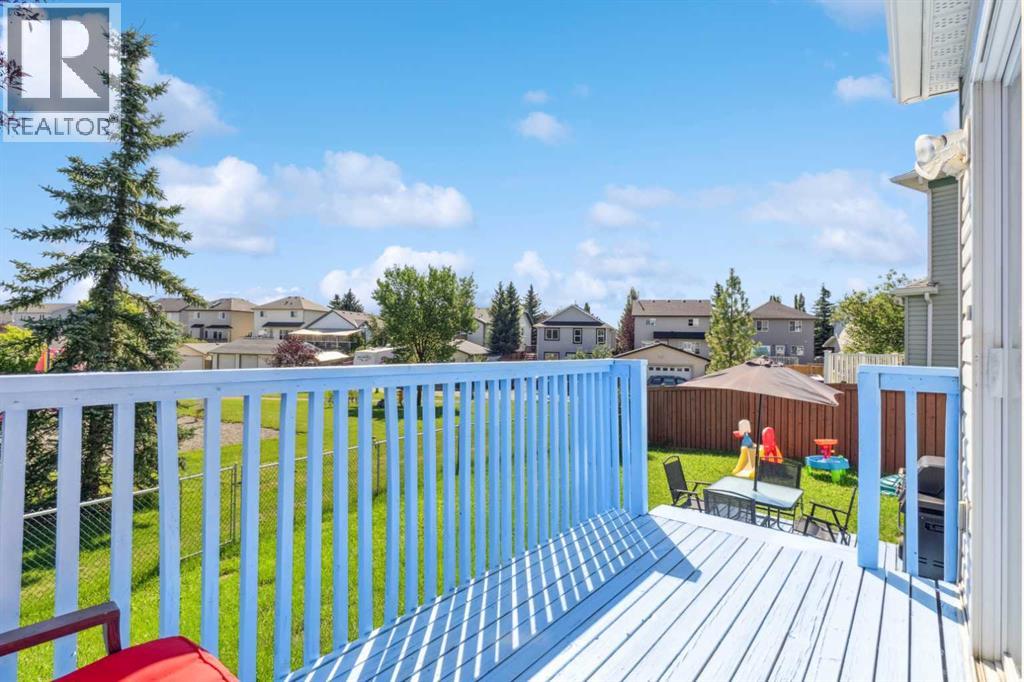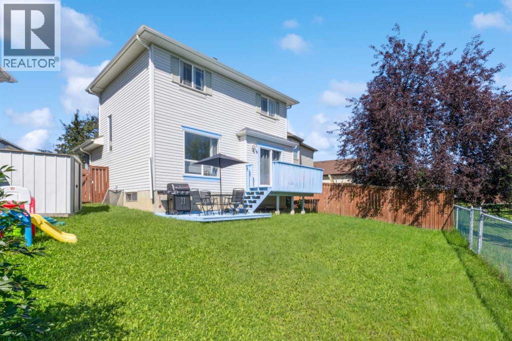 Welcome to a stunning family home featuring a versatile den/office, 3 spacious bedrooms, 2.5 bathrooms, and a fully developed basement. Perfectly designed for modern living, this home exudes pride of ownership with thoughtful details, stylish finishes, and recent upgrades including brand-new kitchen appliances. The open-concept kitchen and dining area, offering ample cabinetry and a picturesque view of the huge pie-shaped backyard. Imagine preparing meals while watching your children play safely in your fenced yard or at the playground just steps beyond. The bright, airy living room boasts expansive windows that flood the space with natural sunlight, while sliding doors lead you to a large deck—perfect for summer barbecues, alfresco lunches, or evening gatherings with a glass of wine. A main floor den provides flexibility to create a home office, gym, playroom, or hobby space, with a convenient 2pc bathroom completing the level. Upstairs, the primary bedroom features a large window, walk-in closet, and 4pc ensuite. Two additional bedrooms—generously sized for teens or adults and there is another 4pc full bathroom. The fully finished basement is an entertainer’s dream with a spacious recreation room ideal for a home theatre, pool table, or games area. With its sunny southeast-facing backyard and living room, natural light fills the home all day long, creating a warm and inviting atmosphere while offering the perfect setting for gardening or outdoor play. Situated in an unbeatable location, this property is short distance to schools, splash park, tennis courts, community amenities, pathways, parks, shops, restaurants, transit, and the C-Train. Huge drive way that fits three cars, functional shed, upgraded high effiency furnace and NO polyb here! Whether you’re looking for the perfect family home or an excellent rental investment (current tenant pays $2,450/month), this is truly the best value on the market. Don’t miss out—this one won’t last! (id:55577)