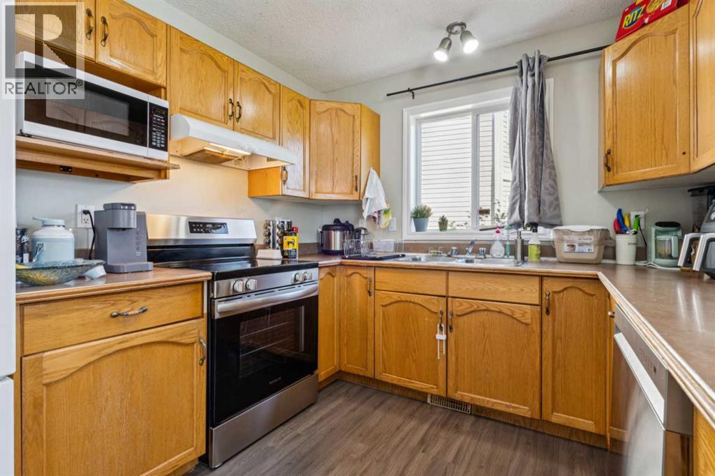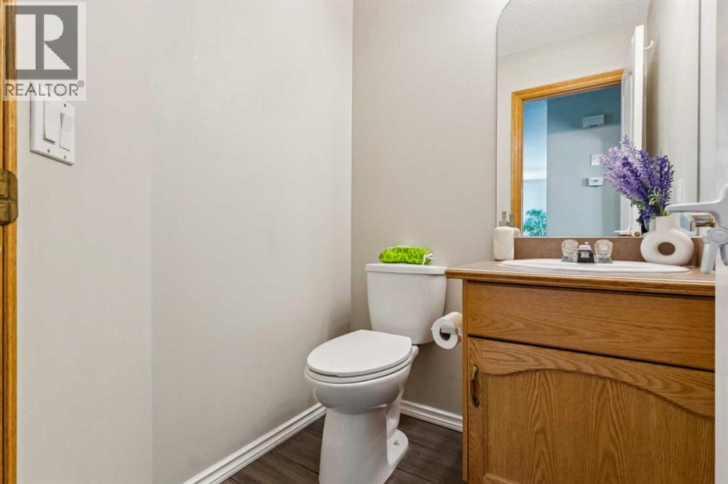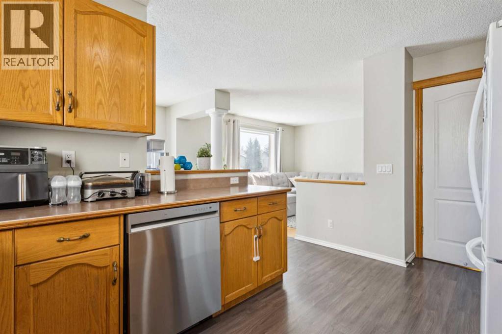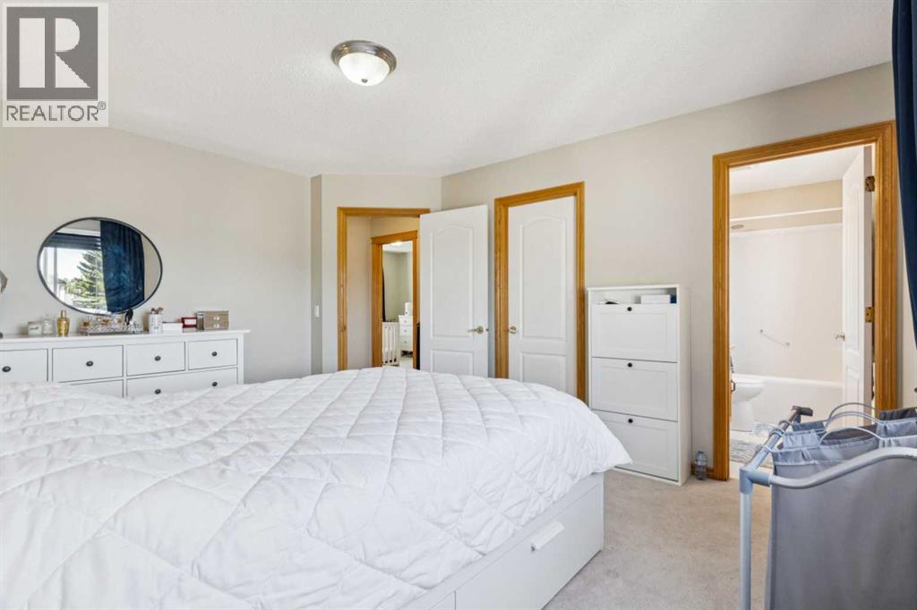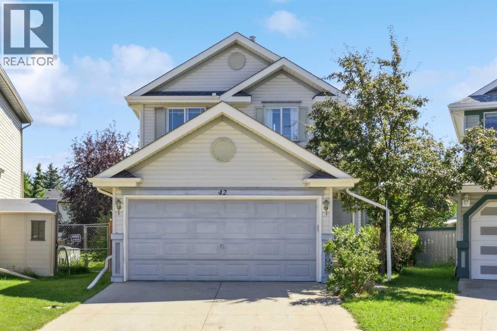 Welcome to a stunning family home featuring a versatile den/office, 3 spacious bedrooms, 2.5 bathrooms, and a fully developed basement. Perfectly designed for modern living, this home exudes pride of ownership with thoughtful details, stylish finishes, and recent upgrades including brand-new kitchen appliances. The open-concept kitchen and dining area, offering ample cabinetry and a picturesque view of the huge pie-shaped backyard. Imagine preparing meals while watching your children play safely in your fenced yard or at the playground just steps beyond. The bright, airy living room boasts expansive windows that flood the space with natural sunlight, while sliding doors lead you to a large deck—perfect for summer barbecues, alfresco lunches, or evening gatherings with a glass of wine. A main floor den provides flexibility to create a home office, gym, playroom, or hobby space, with a convenient 2pc bathroom completing the level. Upstairs, the primary bedroom features a large window, walk-in closet, and 4pc ensuite. Two additional bedrooms—generously sized for teens or adults and there is another 4pc full bathroom. The fully finished basement is an entertainer’s dream with a spacious recreation room ideal for a home theatre, pool table, or games area. With its sunny southeast-facing backyard and living room, natural light fills the home all day long, creating a warm and inviting atmosphere while offering the perfect setting for gardening or outdoor play. Situated in an unbeatable location, this property is short distance to schools, splash park, tennis courts, community amenities, pathways, parks, shops, restaurants, transit, and the C-Train. Huge drive way that fits three cars, functional shed, upgraded high effiency furnace and NO polyb here! Whether you’re looking for the perfect family home or an excellent rental investment (current tenant pays $2,450/month), this is truly the best value on the market. Don’t miss out—this one won’t last! (id:55577)