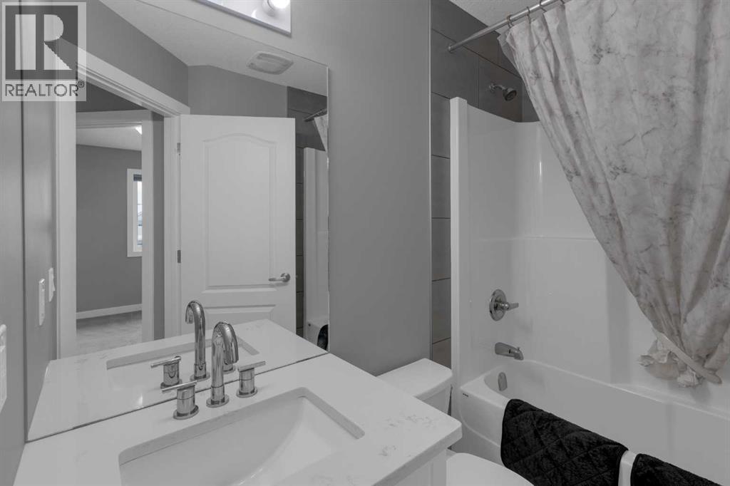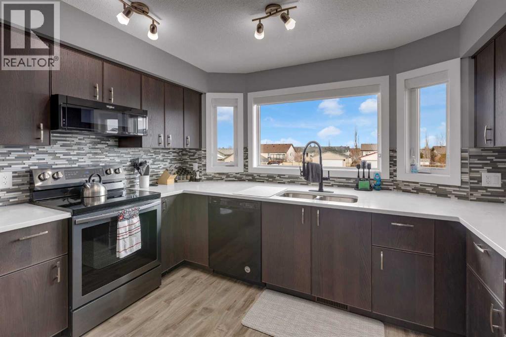Perfect for First-Time Buyers Looking For A Rural Lifestyle With Modern ComfortsWhy settle for ordinary when you can own a stylish, modern townhome that offers the perfect balance of small-town charm and everyday convenience? This beautiful home features a front-attached garage and parking apron, giving you both practicality and curb appeal.Step inside to a spacious front entry where you can head down to the finished walkout basement or up to the bright and welcoming main living area. The split-level design creates an open, airy feel with high ceilings and large patio doors that fill the space with natural light and lead to a covered balcony—a perfect spot to enjoy your morning coffee or unwind in the evening.A few steps up, you’ll find the open dining area and modern kitchen, thoughtfully designed for today’s lifestyle. The kitchen features granite countertops, a sleek black and black stainless steel appliance package, and plenty of space for cooking, gathering, and entertaining friends and family. A convenient 2-piece bathroom completes the main level.Upstairs, there are three spacious bedrooms, including a comfortable primary suite with his and her closets and private 4-piece ensuite, plus an additional full bathroom for family or guests.The finished walkout basement offers flexible space—perfect for a games room, home office, workout area, or cozy media space. Laundry is conveniently located on this level as well. The drywalled and insulated attached garage provides secure access directly into the home, making everyday living easy year-round.If you’ve been dreaming of homeownership in a welcoming community while still being close to schools, shopping, dining, and everyday amenities, this home is the perfect place to start.Stop renting and start building your future—book your private showing today! (id:55577)