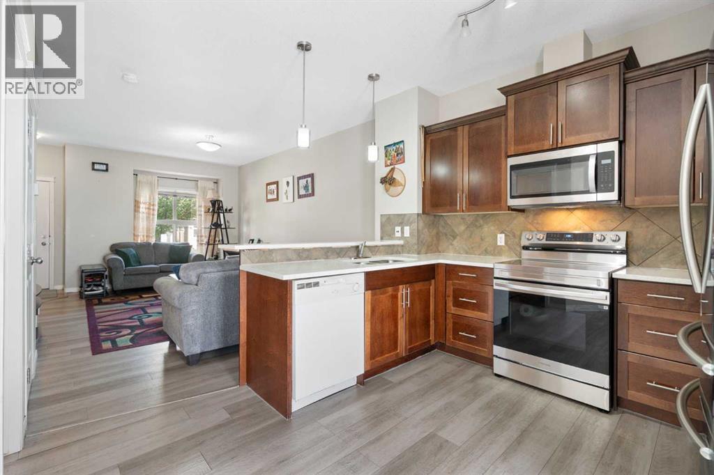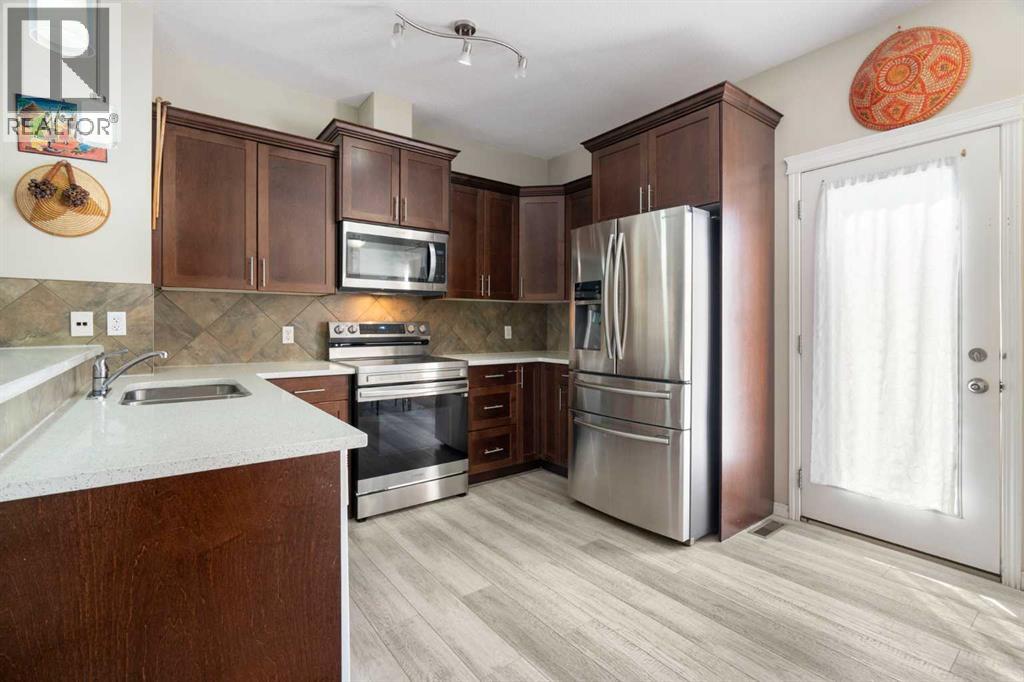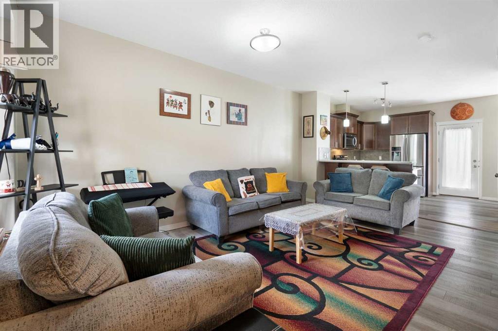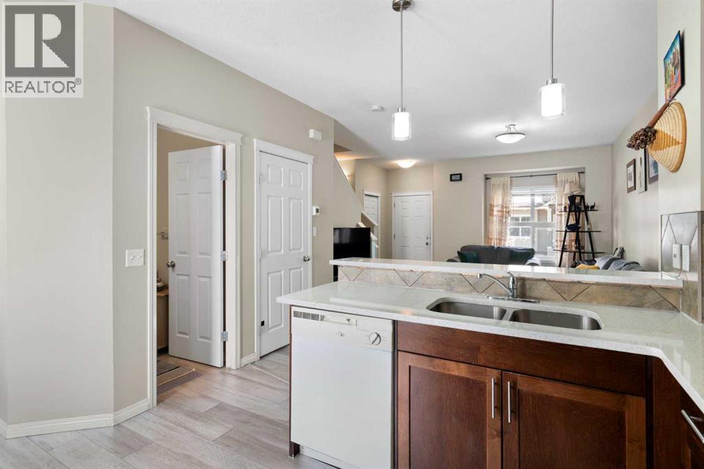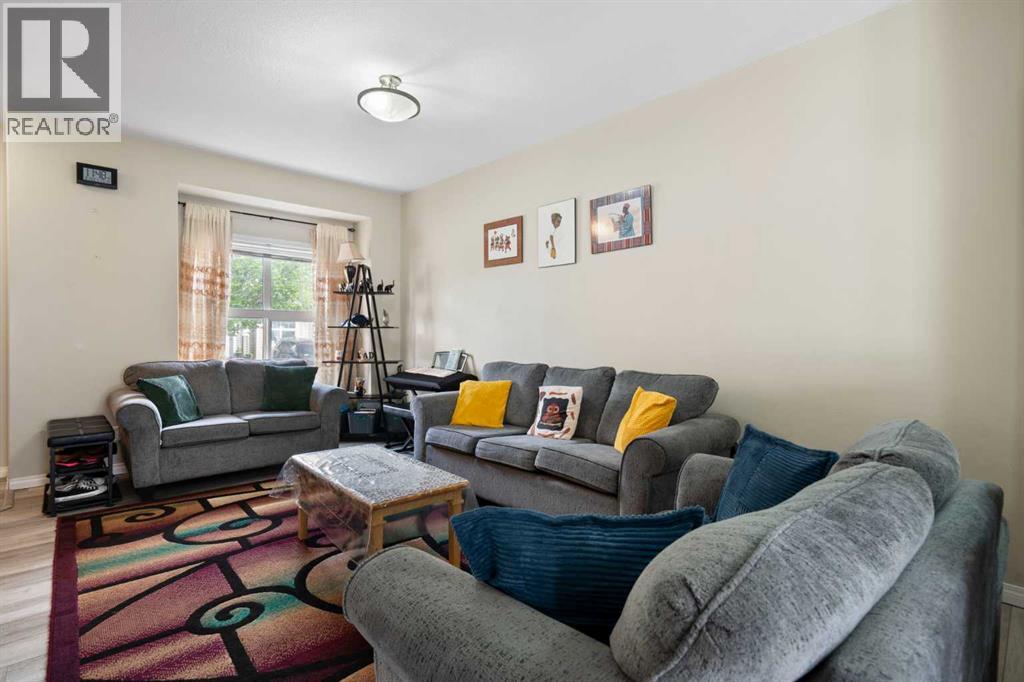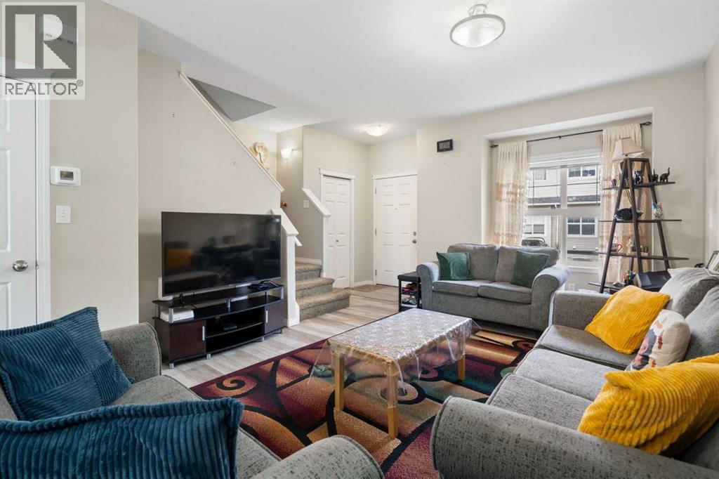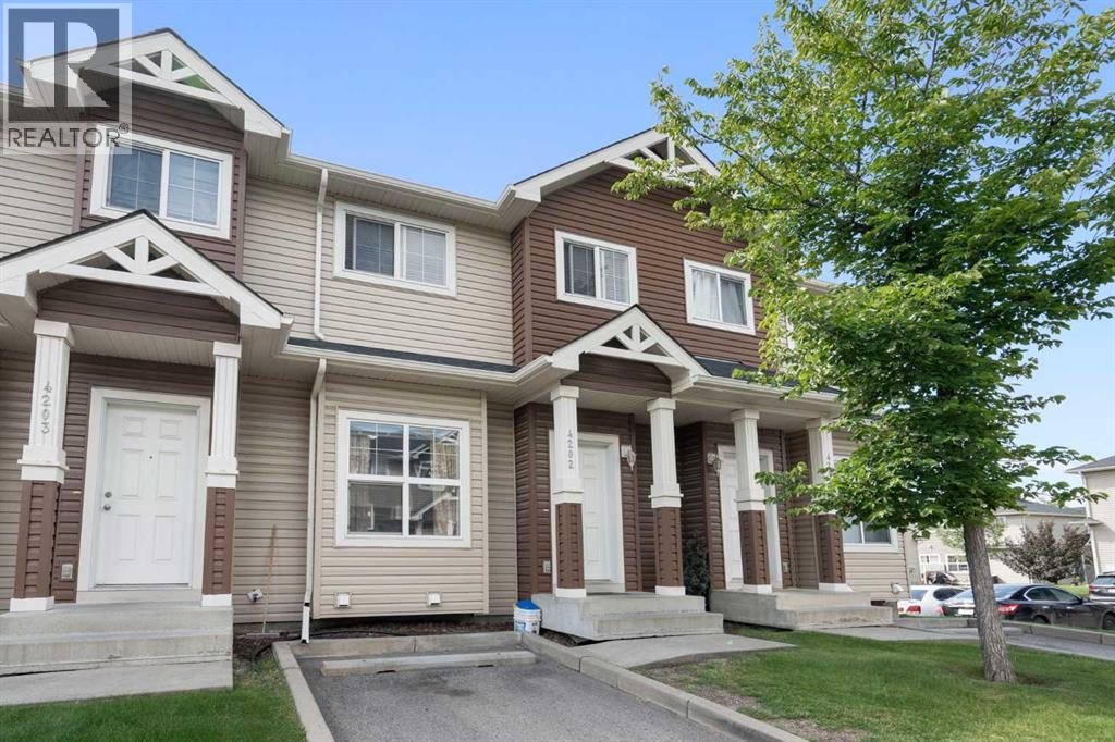 Welcome to #4202 111 Tarawood Lane NE, a bright and spacious townhome nestled in the heart of family-friendly Taradale. This well-cared-for 3-bedroom, 2-bathroom bareland condo offers a smart and functional layout across three levels, with everyday comfort and thoughtful design in mind. Parking is convenient with your own assigned parking pad right out front, plus visitor parking available for guests.Step inside to an inviting main floor where high ceilings and vinyl plank flooring set a modern tone. The open concept living area is filled with natural light and is connected to a stylish kitchen equipped with stainless steel appliances, quartz countertops, and a convenient breakfast bar framed by pendant lighting. A dedicated dining area and a 2-piece powder room complete the main level.Upstairs, you’ll find three well-proportioned bedrooms, including a spacious primary retreat featuring a walk-in closet with built-in organizers. The 4-piece bathroom offers a soaking tub which is perfect for unwinding after a long day.The finished basement expands your living space with a cozy recreation room, a dedicated laundry area, and a utility room for extra storage. Whether you're entertaining or relaxing, this lower level is a great bonus.From the dining room, step outside to enjoy the sunny, south-facing backyard with a patio. It’s the perfect spot for summer grilling or soaking up the sun.Taradale is a well-established community known for its family-friendly atmosphere, schools, parks, and walking paths. You’re also close to shopping, medical clinics, the Genesis Centre, and excellent public transit including the nearby LRT station. This neighborhood offers a strong sense of community and great access to everyday amenities.This is a fantastic opportunity to own in a vibrant and well-connected community. This is the one you've been waiting for, book your private showing today! (id:55577)