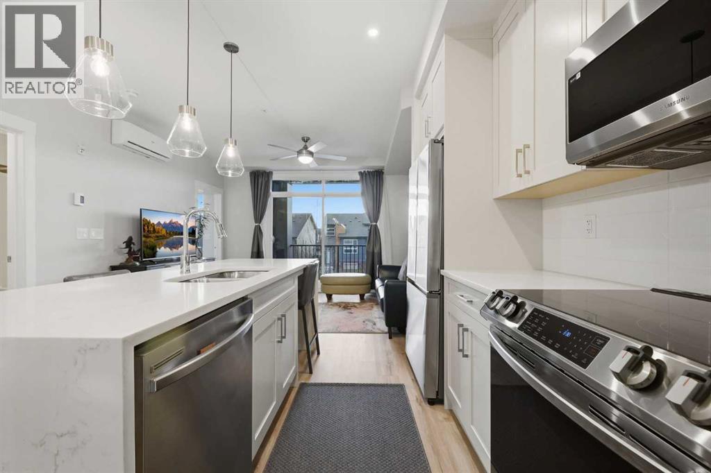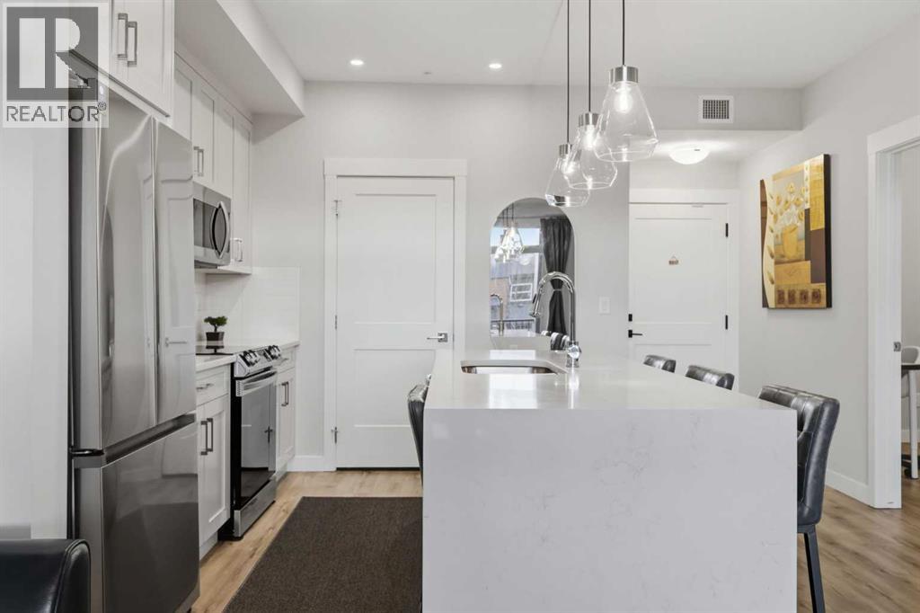 Check out the the 3D Tour of this spotless, and meticulously maintained unit! Welcome to Seton West, where lifestyle, convenience, and long-term value come together in one of Calgary’s most sought-after southeast communities, and all residents gain exclusive access to THE BLOCK, Seton's exclusive community recreation centre. This extensively upgraded 2-bedroom, 2-bathroom condo offers refined, low-maintenance living designed for young professionals, first-time buyers, and savvy investors. From the moment you step inside, the elevated finishings set this unit apart. The kitchen is anything but standard, featuring extended quartz countertops with a waterfall-style eating bar, full-height cabinetry, tile backsplash, and a premium stainless steel appliance package.The open-concept living area is bright and inviting with upgraded lighting, pot lights, dimmer switches, and a ceiling fan for added comfort. Luxury Vinyl Plank flooring flows seamlessly through the main living areas and primary bedroom, offering a modern look with durable performance. Step outside to your private balcony complete with a gas line for BBQing, perfect for summer evenings. This home also includes AIR CONDITIONING for those warm Calgary days.The spacious primary retreat features a private 4-piece ensuite, while the second bedroom offers flexibility for guests, a home office, or a growing family. A second full 4-piece bathroom adds convenience and privacy. Titled underground parking provides year-round comfort and security.Located steps from the vibrant Seton Urban District, the YMCA at Seton, and within walking distance to South Health Campus, this home offers unbeatable access to shopping, dining, recreation, and major roadways including Deerfoot and Stoney Trail. Future Green Line LRT access further enhances long-term value. Move-in ready and beautifully upgraded, this is a rare opportunity to own in a high-demand community. Book your private showing today! (id:55577)