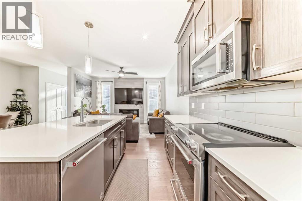 Welcome to this stunning 2-storey detached home located in the sought-after Redstone community of NE Calgary, just minutes from the YYC Airport. Built on a conventional lot, this property offers modern design, thoughtful layout, and convenience for growing families or investors alike. The main floor features a bedroom/den and full bath, perfect for guests or multi-generational living. Enjoy open-concept living with a bright dining area and a spacious living room highlighted by a gas fireplace tiled to the ceiling. The chef-inspired kitchen boasts maple wood cabinets, quartz countertops, and a walk-in pantry, offering both style and function. Upstairs, the primary bedroom includes a luxurious 5-piece ensuite and a huge walk-in closet. Two additional large bedrooms share a full bathroom, and the laundry room with side-by-side washer and dryer adds everyday convenience. The basement comes with a separate side entry and is developed as a two-bedroom (illegal) suite with 9-ft ceilings—ideal for extended family ( Currently rented for $1300 per month). This property is just 10 minutes to Airport , walking distance to shopping center and upcoming New Gurdwara ( Cornerstone). To book a showing call your favorite realtor! (id:55577)