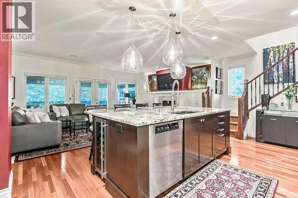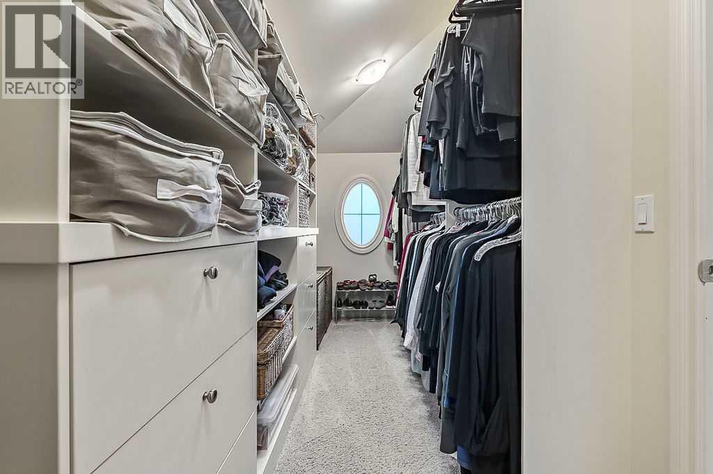 Welcome to an exquisite residence nestled in the prestigious Aspen Meadows Green SW, where LUXURY MEETS ELEGANCE in a truly remarkable setting. This pristine home boasts an array of high end features and extras, offering a blend of sophistication and functionality rarely found on the market. The chef's dream kitchen, complete with a butler's pantry is designed to inspire culinary masterpieces. This space seamlessly flows into generously sized rooms filled with natural light, surrounded by beautiful built-ins, creating an ambiance of comfort and elegance. The SPECTACULAR COVERED REAR DECK , a true outdoor oasis featuring a COZY fireplace and skylights. This beautiful deck overlooks an immaculately landscaped backyard, fostering a serene environment that must be seen to be believed. The fully finished WALKOUT BASEMENT is an entertainer's delight, featuring a massive family room with a full wall of custom built cabinetry and offering stunning views of the lush, park like yard. Enjoy the convenience of in floor heating in the basement, two upper level bedrooms and the garage, ensuring warmth and comfort throughout. Recent top quality updates make this home a superior investment. Enjoy the benefit of double GE Profile built-in ovens installed in '25, fireplaces in the living and dining room '20. The home features an updated furnace and central air; a hot water tank and water softener from '20, humidifier and electronic air cleaner '22; recently replaced central vacuum hoses and a beater bar. The garage has custom built-ins, grid walls and organizers all by Premier Garage. Finally, the professionally landscaped yard, complete with a water feature and underground sprinkler system, enhances the home's exterior appeal, offering a tranquil retreat.This property is A TRUE TESTAMENT TO HIGH QUALITY LIVING. Situated on a quiet family friendly cul-de-sac with quick easy access to the LRT station, downtown and the mountains. (id:55577)