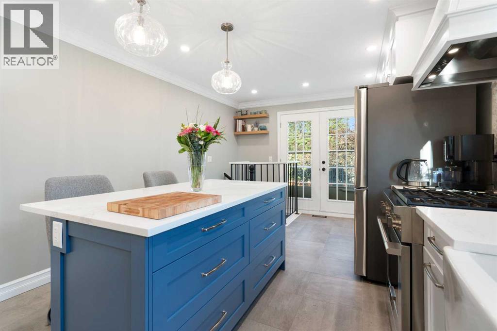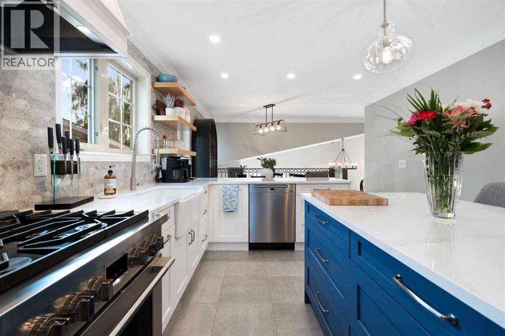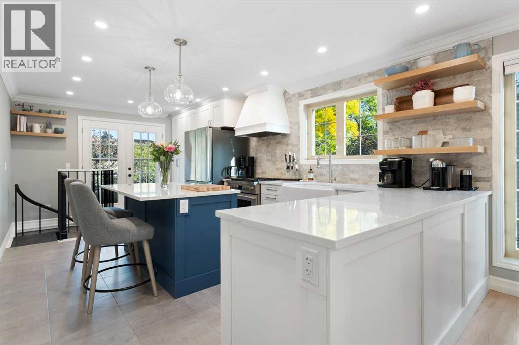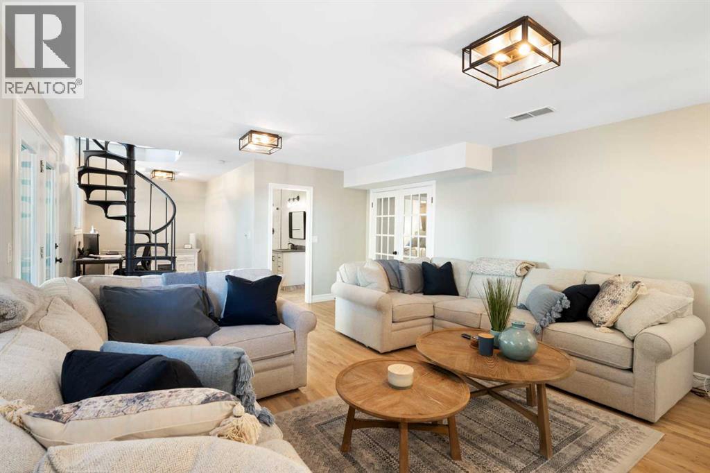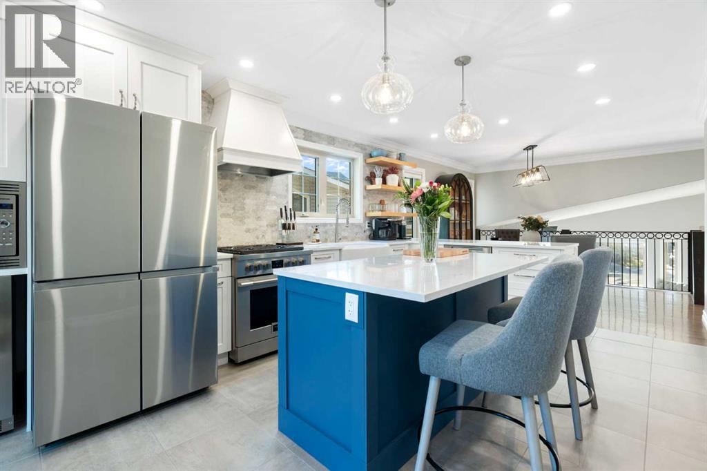 ***PLEASE CHECK OUT THE 3D WALKTHROUGH*** Welcome to this stunning and unique 4 bedroom, 3 bathroom home, perfectly situated in a quiet Scenic Acres cul-de-sac. Fully renovated in 2024, this property blends modern luxury with one-of-a-kind character.Inside, you’ll find real red oak hardwood, custom crown moulding, knockdown ceilings, and custom blinds. The striking spiral staircase from the historic Burns Meat Packing Plant, paired with a custom iron railing from a downtown Calgary landmark, makes this home truly unforgettable.The gourmet kitchen is a chef’s dream with a Fulgor gas stove, built-in wine fridge, custom cabinetry, and imported Spanish tile. French doors off both the kitchen and primary suite open onto a massive deck, perfect for entertaining. Two custom gas fireplaces add warmth and elegance throughout.The walkout lower level extends your living space and opens directly onto the stunningly landscaped backyard, complete with extensive stamped concrete, lush blooming gardens, a dog run, and a large custom-built shed.A standout feature is the oversized garage with 14-foot ceilings and mezzanine, offering endless storage or workshop space. With thoughtful upgrades like an updated central vacuum system and fully custom finishes, this home is a rare find in Scenic Acres. (id:55577)