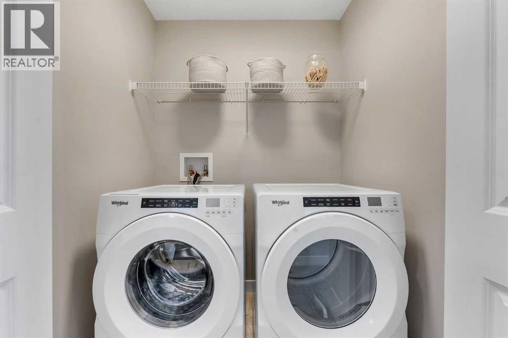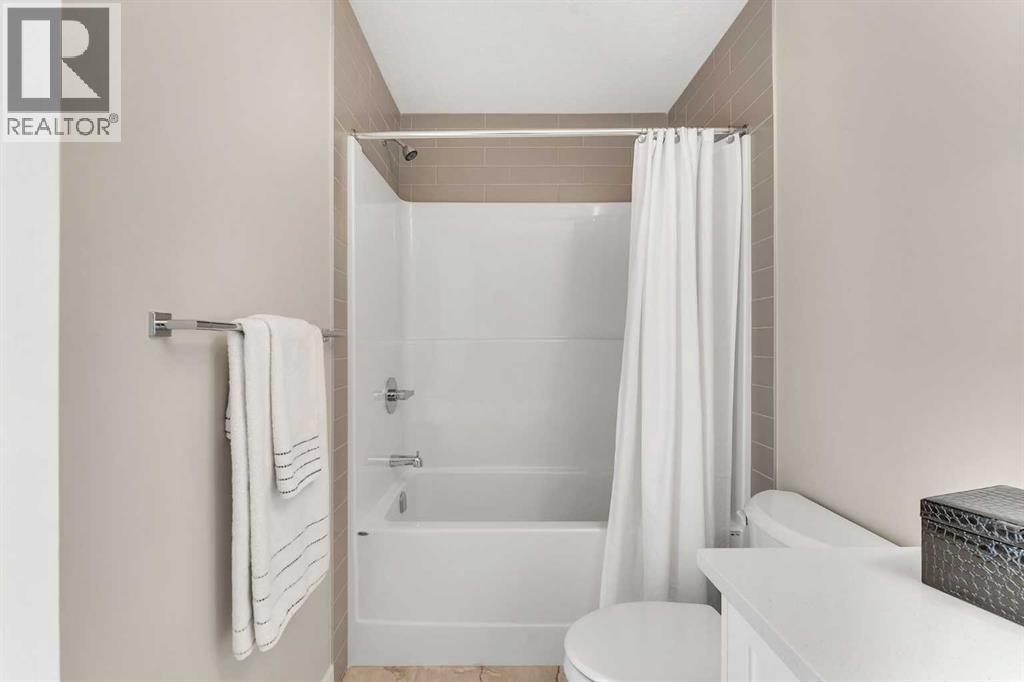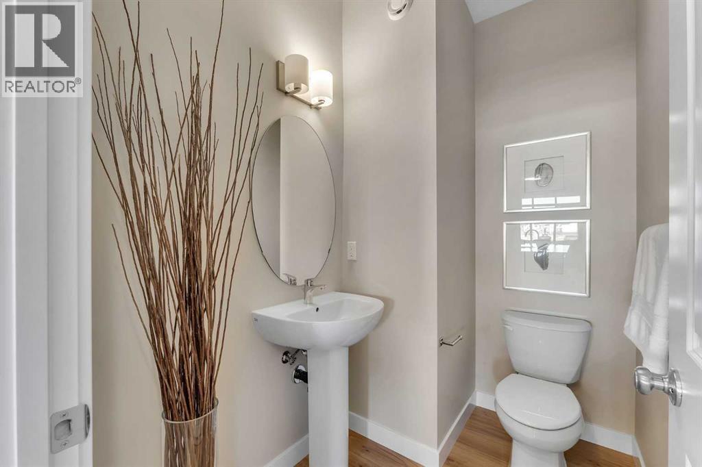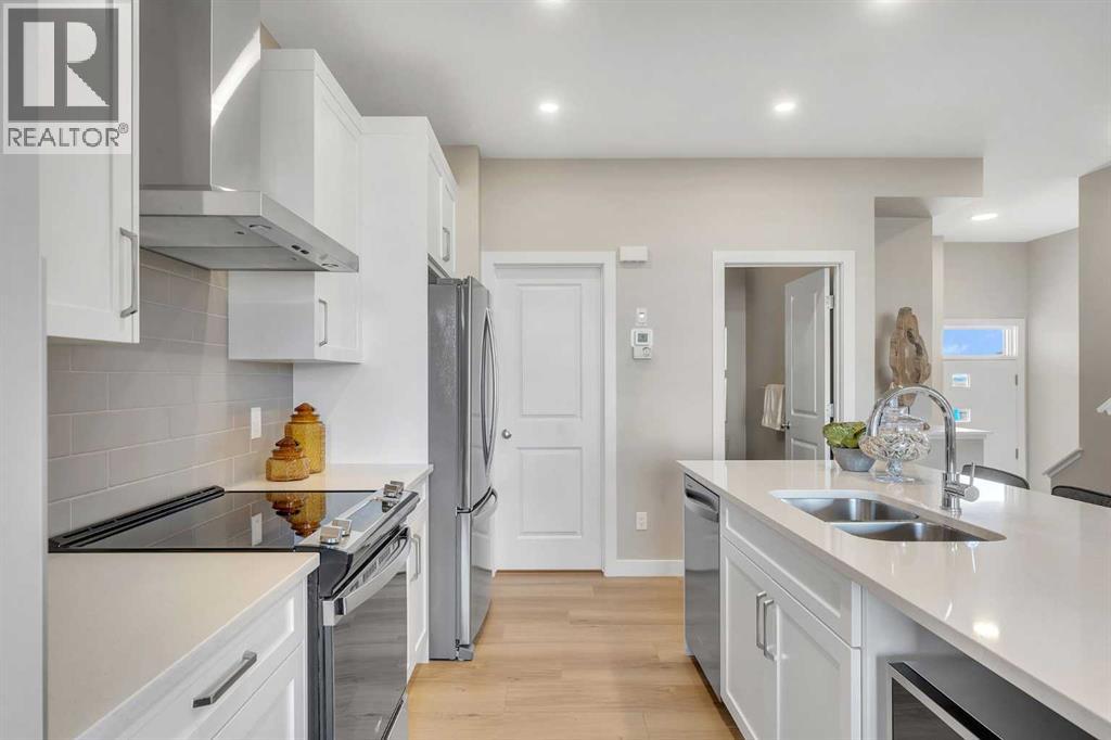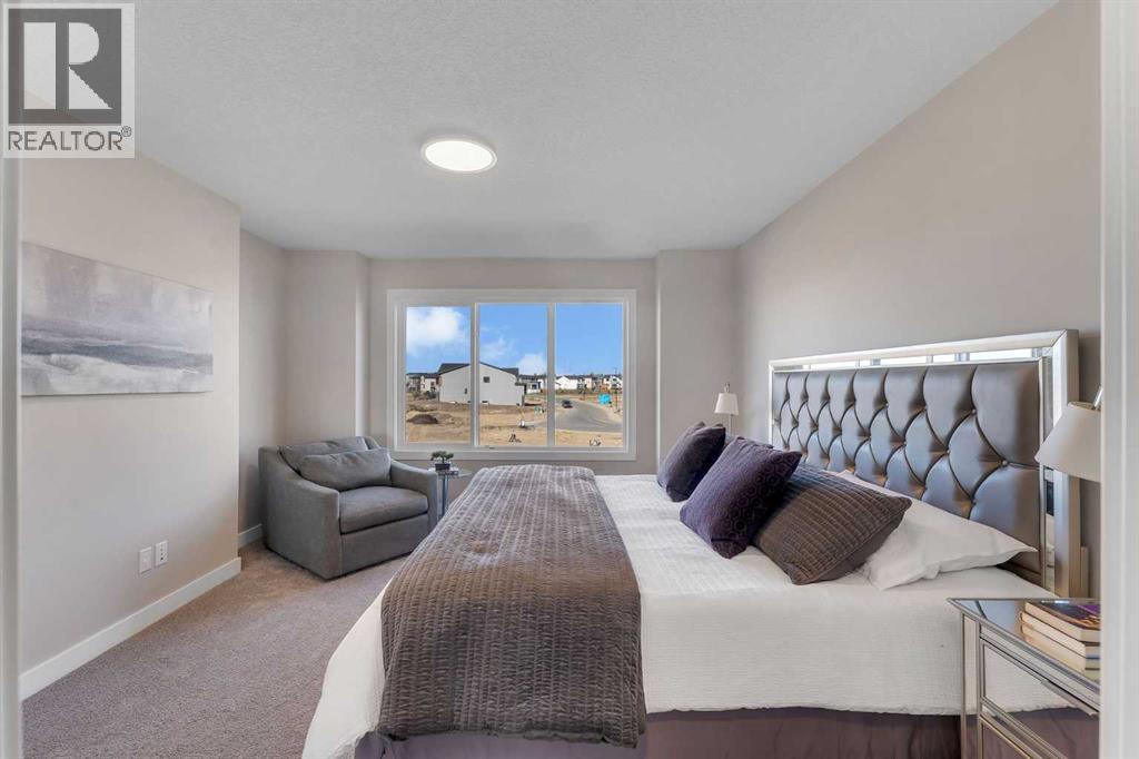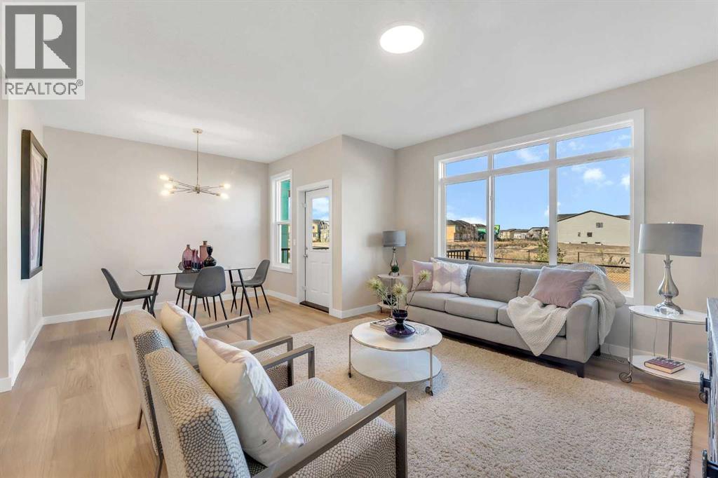 Stylish, steps to the lake, and ready for you to call home. Welcome to this beautifully appointed, 1700 sq ft brand-new Alliston at Home front-attached garage duplex, ideally located just steps from Chestermere Lake. Offering a thoughtful and functional floor plan with gorgeous finishes throughout, featuring 3 bedrooms, 2.5 bathrooms, a side entrance to the basement and backing onto a pathway with a lake view, what's not to love? Inside, the open concept kitchen, living room and dining area features wide luxury vinyl plank flooring and airy 9' ceilings, creating a bright and spacious feel. The kitchen will please the chef of the home with quartz countertops, a large island perfect for meal prep and entertaining, classic white 42" cabinets, sleek stainless steel appliances and a dedicated pantry. Triple-pane windows, which are a standard feature at Alliston Homes, flood the space with natural light. A powder room and spacious foyer with a large closet off the double attached garage complete the main level. Step outside to the sunny backyard, complete with a deck equipped with a gas line for BBQs, and enjoy lake views year-round. Whether swimming in the summer or skating in the winter, this location is all about connection to the outdoors. The spacious yard offers ample space for children or pets to play. Upstairs, the primary suite is a comfortable retreat, featuring a large walk-in closet and a spa-inspired en-suite with his and hers sinks and a spacious walk-in shower. Two additional bedrooms and a convenient laundry room complete the 2nd level. The unfinished basement with 9-foot ceilings and a side entrance offers endless potential for future development and equity-building ideas. This property is turnkey, complete with front and back landscaping and is close to schools, shopping and access to the Calgary. (id:55577)