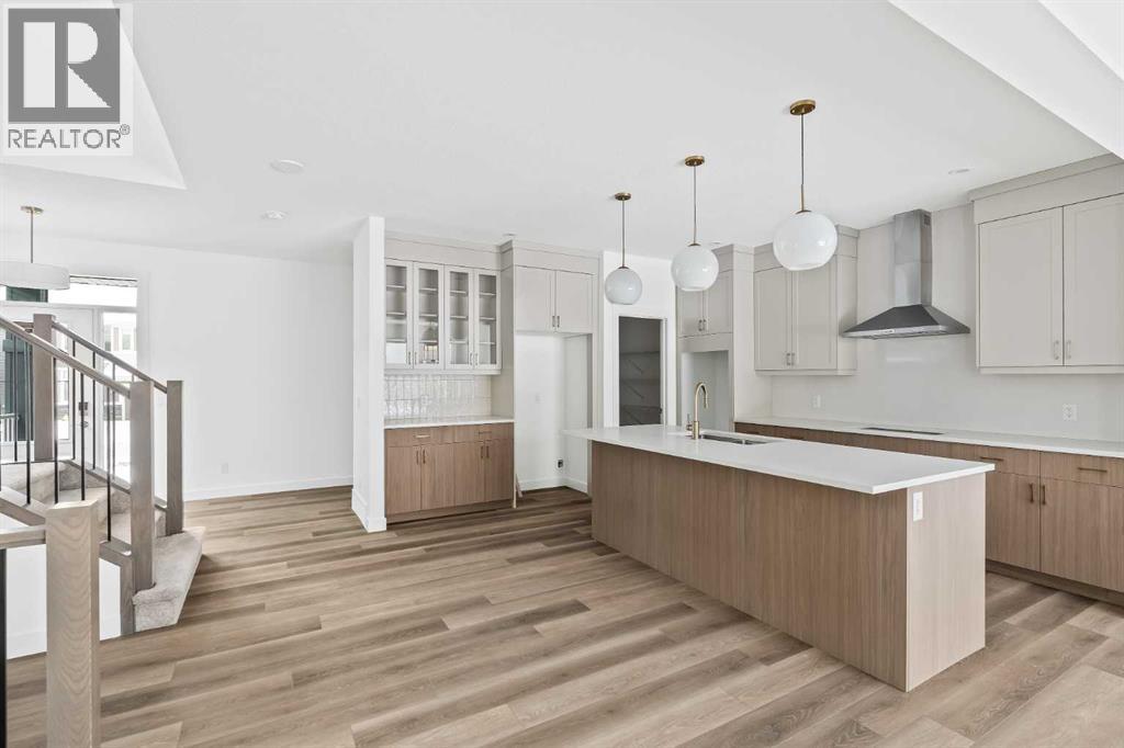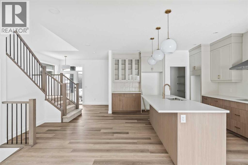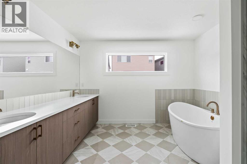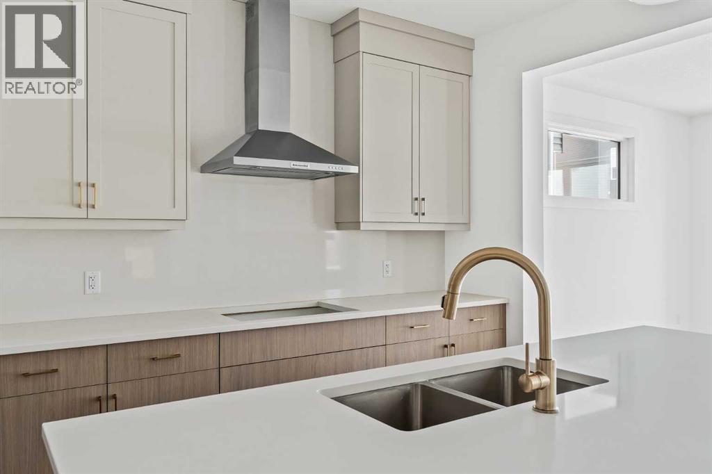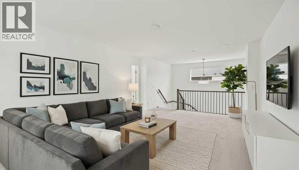 The Columbia 26 is a brand-new home built by Brookfield Residential, ready for immediate possession! Situated on an oversized conventional pie lot (not zero lot) with 4 bedrooms on the upper level and featuring nearly 2,600 square feet of developed living space + a full basement with private side entrance. Featuring 2 living areas, a home office space, 4 bedrooms above grade and 2.5 bathrooms, this home offers the perfect space for a large family! Upon entry a grand foyer provides plenty of space with sight lines from the entryway to the back of the home and main living area. Walls of windows across the back of the home allow natural light to fill the space all day long. The home boasts a central gourmet kitchen with an expansive pantry that has direct access to the mudroom for everyday convenience. The kitchen is complete with a chimney hood fan, built-in wall oven & microwave and a gas cooktop. The kitchen is complete with a large central island and open to the main living and dining space - making it the perfect place to host guests. Warm wood tones and a timeless design palette flow effortlessly throughout the home - creating a space that is beautiful today and will offer exceptional resale value long term. The main level is complete with a private flex space, perfect for a home office with double doors providing added privacy. A central gas fireplace on the main level is the perfect addition for cool winter nights. The main level is complete with 3 closets, an expansive mud room and 2 pc powder room. The upper level has a central bonus room that separates the primary suite from the other 3 bedrooms. The primary suite overlooks the backyard and has a large ensuite with dual sinks, a walk-in shower and soaker tub, in addition to the oversized walk-in closet. Three more large bedrooms, with walk-in closets and double closets, provide ample space for children and a full 5pc bathroom with double sinks and laundry room complete the upper level. The undeveloped baseme nt includes a private side entrance and offers endless possibilities with rough-ins already in place! Located in the new community of Livingston, this home includes Alberta New Home Warranty as well as the builder's warranty, allowing you to purchase this brand-new home with peace of mind. (id:55577)