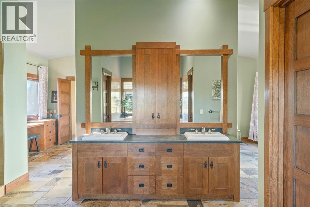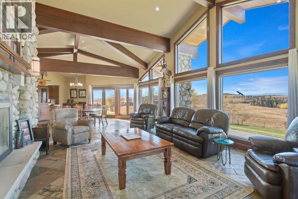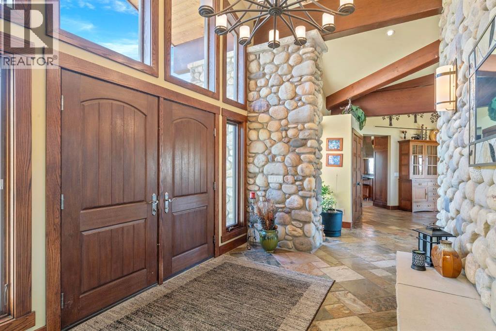 Welcome to 44110 Township Road 242, a one-of-a-kind country estate set on 80 private acres of rolling Alberta prairie, only 15 minutes from Calgary. Blending timeless craftsmanship with breathtaking views, this custom-built 3,388 sq ft bungalow is a true rural retreat. Inside, you’ll find vaulted timber-beamed ceilings, expansive windows framing panoramic mountain and valley views, and a massive river rock fireplace that anchors the open-concept living and dining area. The natural slate floors, solid wood doors, and detailed millwork throughout highlight the home’s enduring quality. The kitchen is both elegant and functional, featuring custom cabinetry, granite counters, a large central island with seating, double wall ovens, a large full height fridge, large full height freezer, gas cooktop, and a stunning handcrafted copper range hood. The primary suite offers a serene escape with treed views and a spa-like ensuite complete with a deep soaker tub overlooking the countryside. Two additional bedrooms, a full bath, and a 2 piece washroom complete the main living quarters. Additional highlights include in-floor heating, a large mudroom, and an oversized attached double garage. Step outside to enjoy the expansive stone patio and firepit area surrounded by mature trees, perfect for evenings under Alberta’s wide-open skies. Wrapping around the South and West sides of the home is a concrete pad, perfect to take in the expansive mountain views, and your dogs can enjoy it as well with the dog run off the back side of the garage. The property also features a 40’ x 46’ heated shop, offering plenty of workspace and storage. Above the shop is a bonus room with a kitchen, living room, and washroom. With 80 acres of usable land, this property offers endless opportunities, whether you’re looking for recreation, equestrian pursuits, a small-scale agricultural setup, or simply wide-open privacy within easy reach of city amenities. A rare and remarkable acreage where craftsmanship me ets nature, welcome home to 44110 Township Road 242! The seller also has adjoining 79.95 acres for sale MLS A2263899 and adjoining 160 acres MLS A2262660 (id:55577)