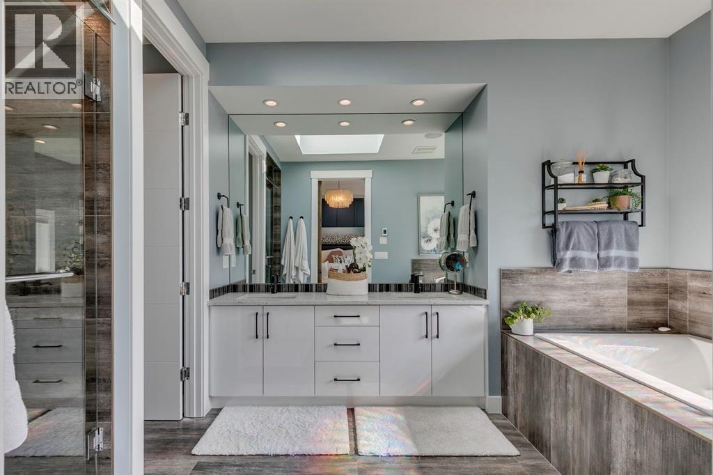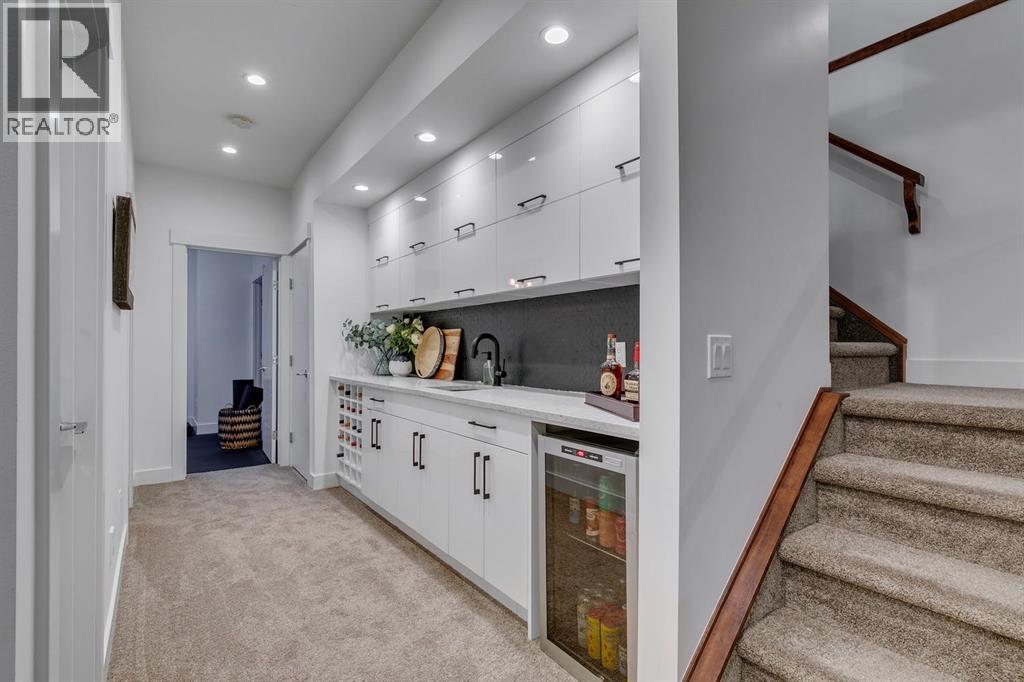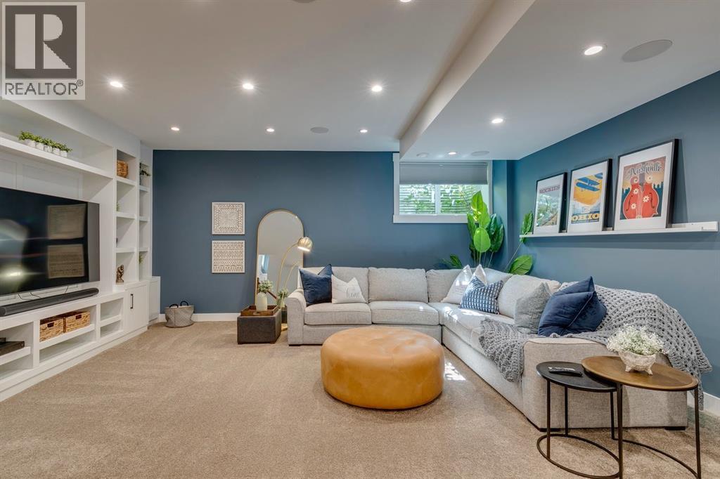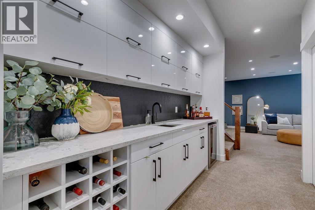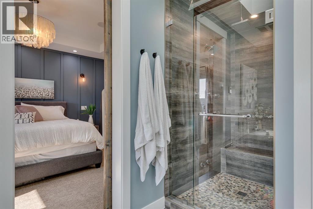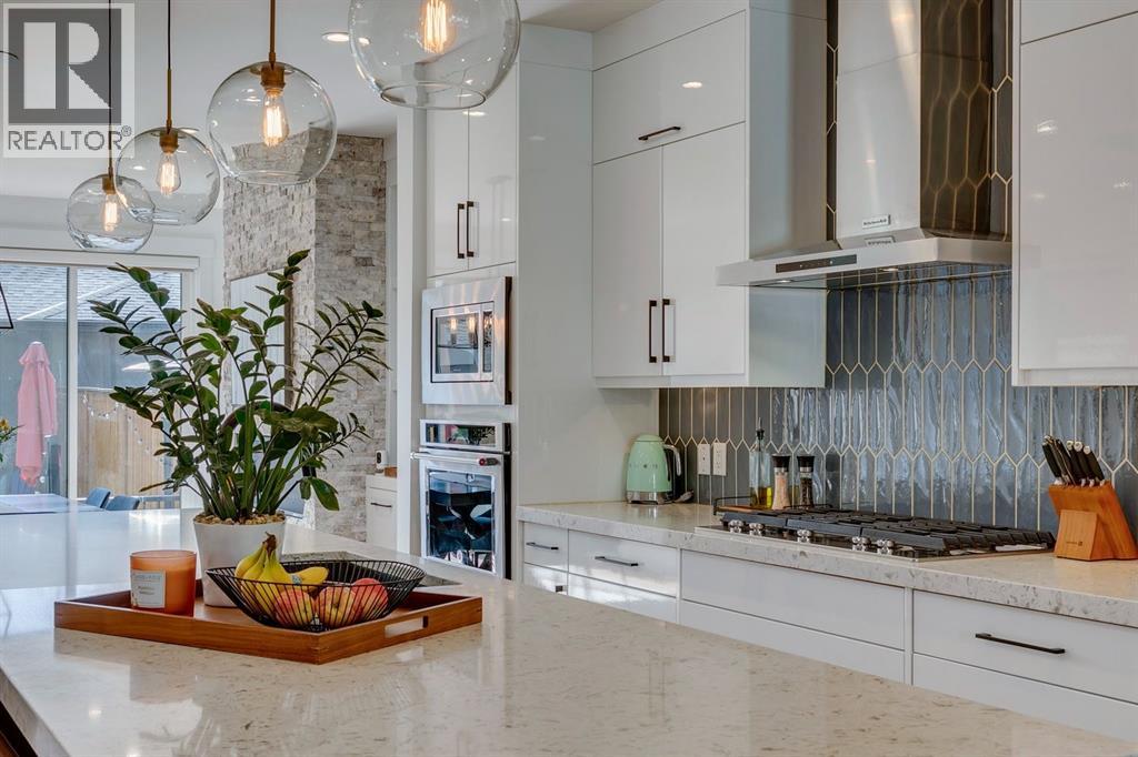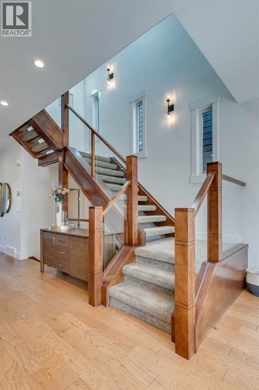 Don’t miss the opportunity to own this sophisticated custom home, offering over 2,900 sq ft of developed living space. Designed with modern elegance and functional flow in mind, this residence is ideal for professionals seeking a quick commute to downtown, or families who’ll appreciate the private fenced yard, close proximity to top schools, and access to Confederation Park just three blocks away. The main floor features a bright, open concept layout with clean architectural lines and seamless indoor/outdoor connectivity. Anchoring the space is a stunning waterfall island; complemented by full height cabinetry, stainless steel appliances, and generous counter and storage space. The dining room’s floor to ceiling stone fireplace creates a warm focal point, while expansive patio doors open to the beautiful south facing yard, where you'll find synthetic turf installed by Synthetic Turf Co. for low maintenance enjoyment. Upstairs, the spacious primary offers a luxurious retreat with custom walk-in closet, and a spa-like 6pc ensuite highlighted by a skylight, heated floors, steam shower, and jetted soaker tub. Two additional bedrooms, a stylish 4pc bath, and a well appointed laundry room complete the upper level. The elegantly developed lower level features oversized windows, a generous guest bedroom that currently functions as a home gym, a sleek 4pc bathroom, and a spacious recreation area with wet bar; perfect for entertaining or relaxing. Beyond its aesthetic appeal, this home is loaded with thoughtful upgrades to enhance everyday comfort and efficiency. A high quality Daikin air conditioning system was installed and the entire home is wired for sound with a zone-amp system (main floor, master bedroom, and patio). Energy efficiency and comfort are further ensured with substantial insulation upgrades: enhanced attic insulation to R-50 and added 24 ventilation baffles in 2021. In 2023, two MaxPro roof vents were installed to maintain airflow and temperature control. Th e garage, which features a wall mounted electric heater and insulated attic (R-40), offers year-round functionality. The exterior is just as impressive, with professional landscaping and hardscaping that includes grading, paving stone walkways, a custom arbor, and a drainage system that channels water safely away from the home via buried downspouts and dry-well. This is a rare opportunity to own a turnkey, high performance inner-city home that blends modern design, comfort, and thoughtful functionality, all in one of the city’s most desirable neighbourhoods. (id:55577)