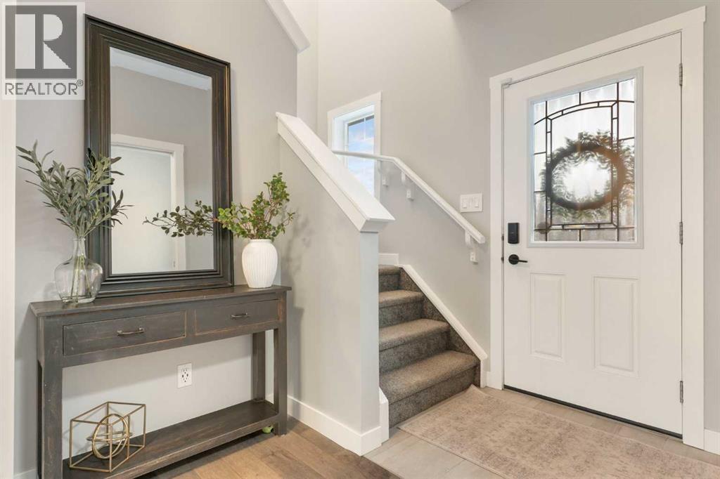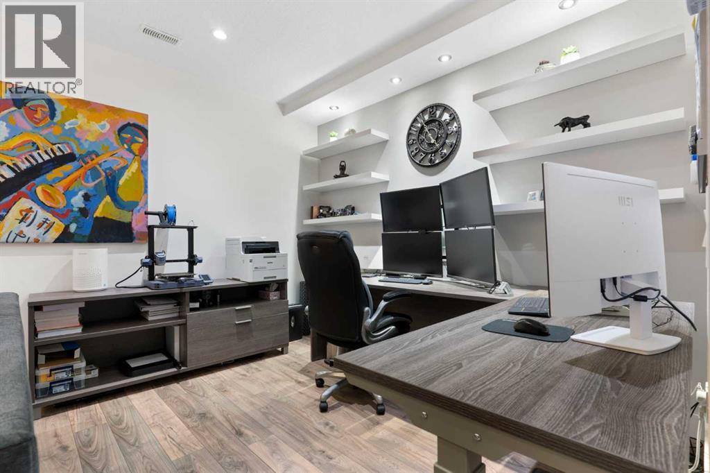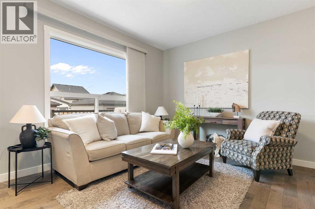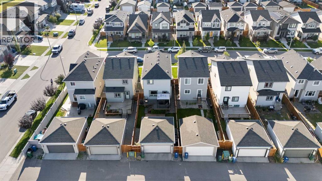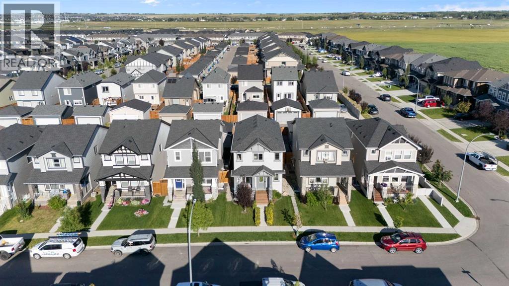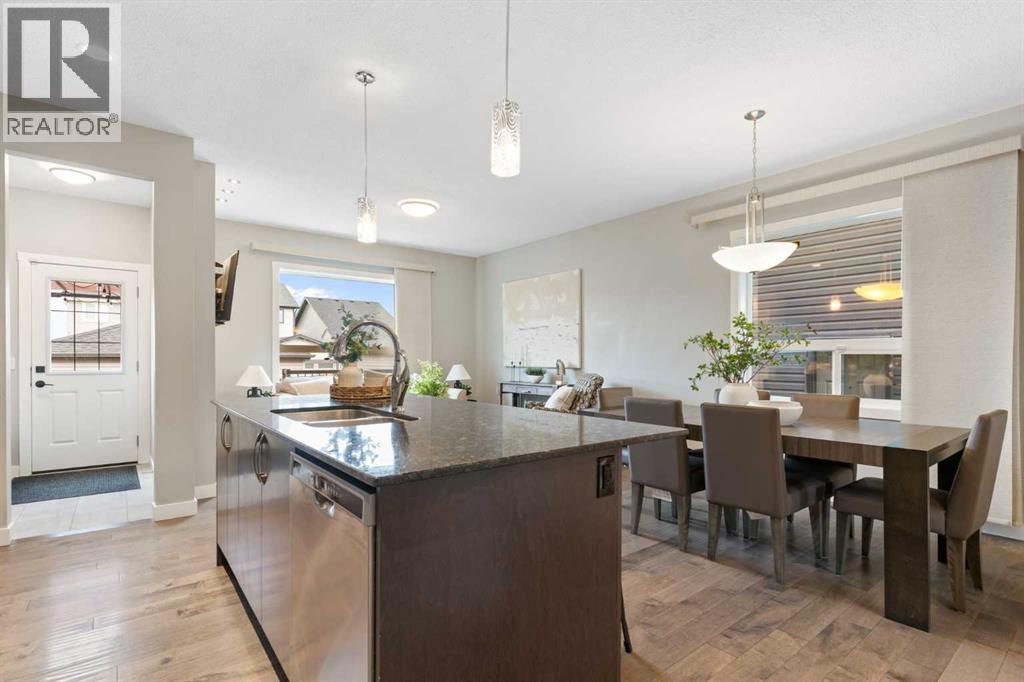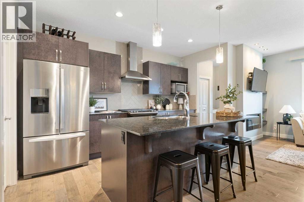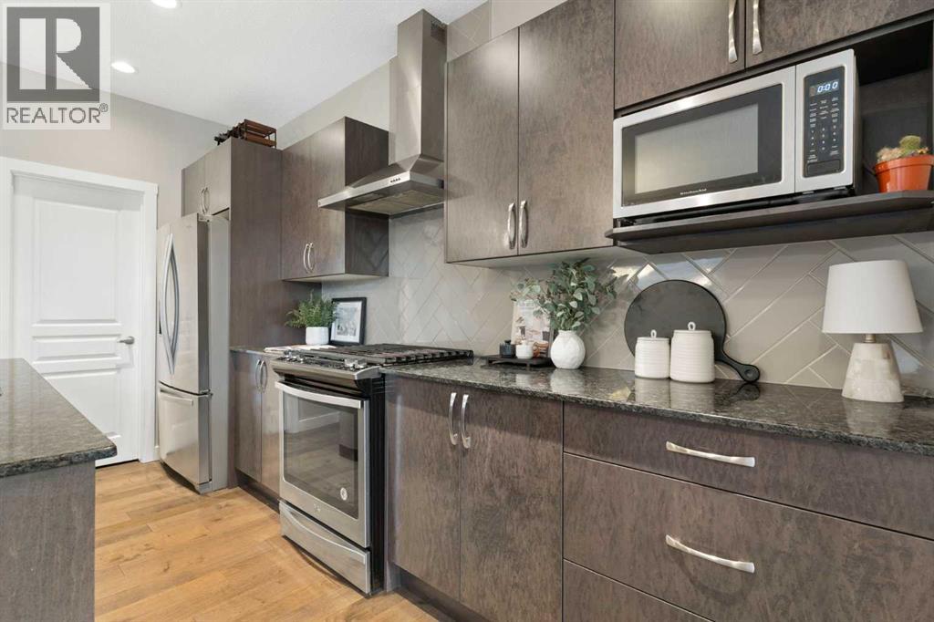 Hello Gorgeous! Welcome to Hillcrest! This custom detached home is beautifully designed with thoughtful upgrades across all three levels, offering over 2,300 sq. ft. of fully developed living space. From the moment you step inside, you’ll notice the attention to detail that makes this property both stylish and functional. The main floor spans over 805 sq. ft. and features engineered hardwood flooring, with tile in the bathroom for durability. A private office with glass French doors is perfect for working from home, while the living room is anchored by a sleek electric fireplace for cozy evenings. The kitchen will impress with granite countertops, a gas range, stainless steel hood fan, fridge, and dishwasher—blending elegance and practicality for everyday cooking or entertaining. Upstairs, you’ll find three generously sized bedrooms each offer spacious walk-in closets, while the bathrooms boast tile flooring, granite countertops, and an upgraded main bath complete with an extended soaker tub and glass shower, plus upgraded carpet throughout. A convenient second-floor laundry room, equipped with a brand-new Samsung washer and dryer, makes everyday chores a breeze. The fully developed basement adds another 711 sq. ft. of versatile living. Finished with laminate flooring, it includes a built-in bookstand, electric fireplace, and a wired entertainment area ready for your home theater setup. A large office space, plus a full secondary kitchen with quartz countertops, microwave, and fridge, expand your options for hosting or multi-generational living. The basement also includes a spacious closet, ample storage, and a full bathroom finished in tile. Outside, enjoy both a composite rear deck and a lower wood deck overlooking the green space, complete with a fire pit for outdoor gatherings. The extended garage provides excellent storage and easily accommodates two large SUVs or trucks. This property combines custom craftsmanship, modern finishes, and flexible living spaces—m aking it an incredible place to call home. Hillcrest is a fantasic family-friendly community - this home is surrounded by walking paths, parks, playgrounds, and stunning mountain views. Everyday conveniences are just minutes away with schools, shops, dining, and quick access to Calgary all within easy reach. Hillcrest combines modern amenities with small-town charm, making it the perfect place to put down roots — book your showing today! (id:55577)