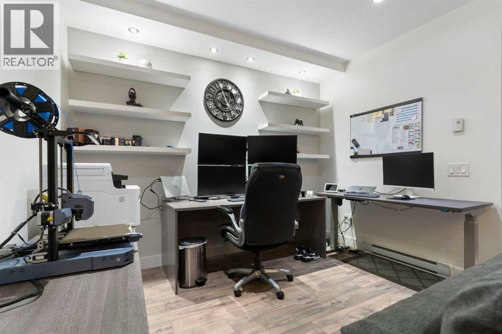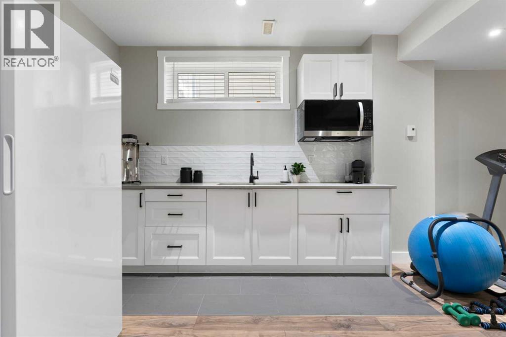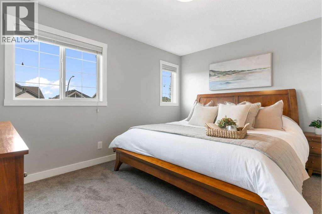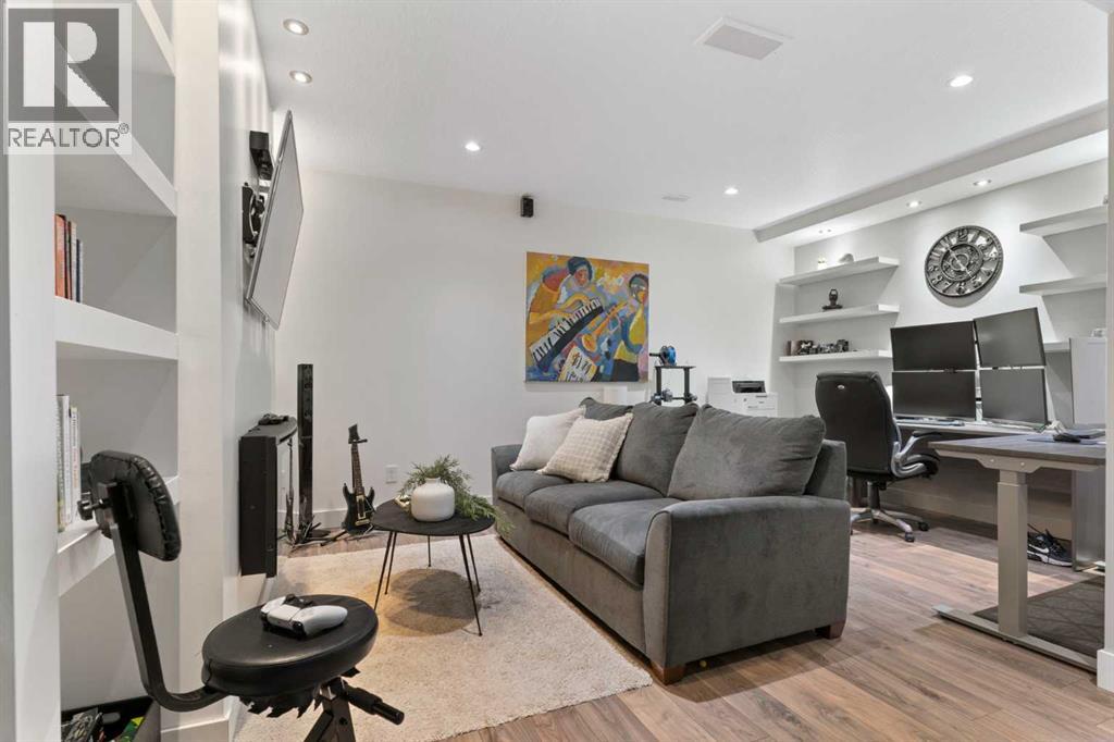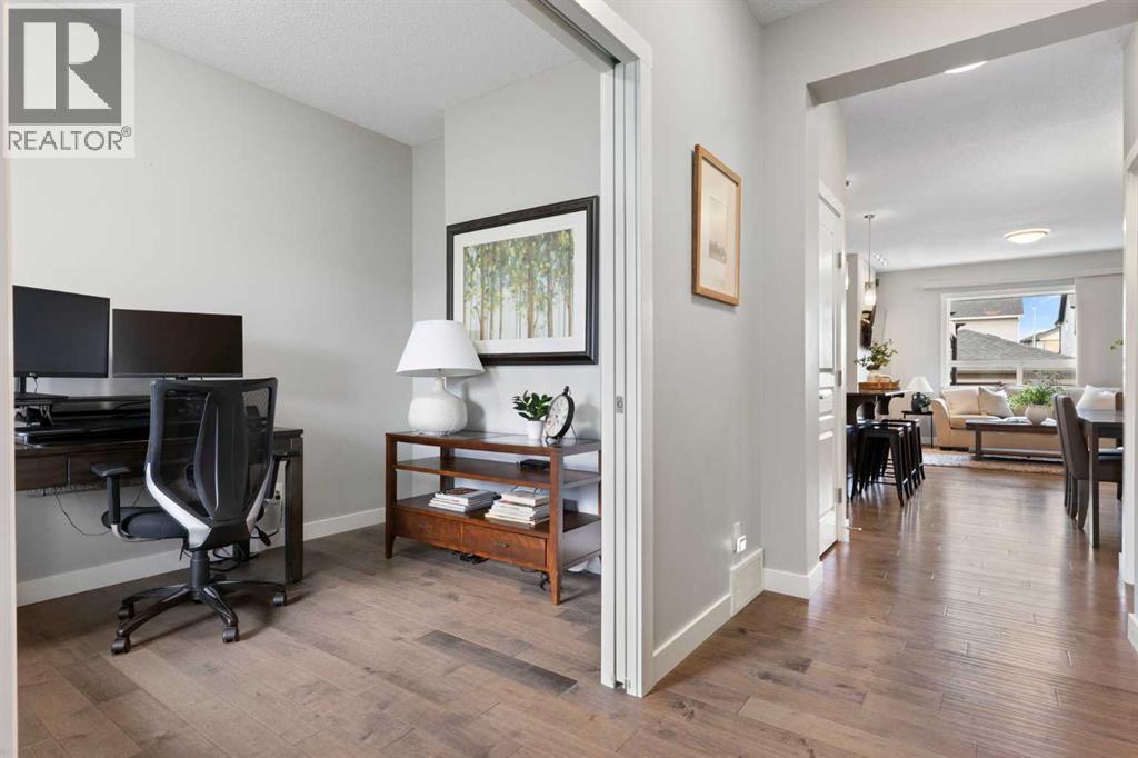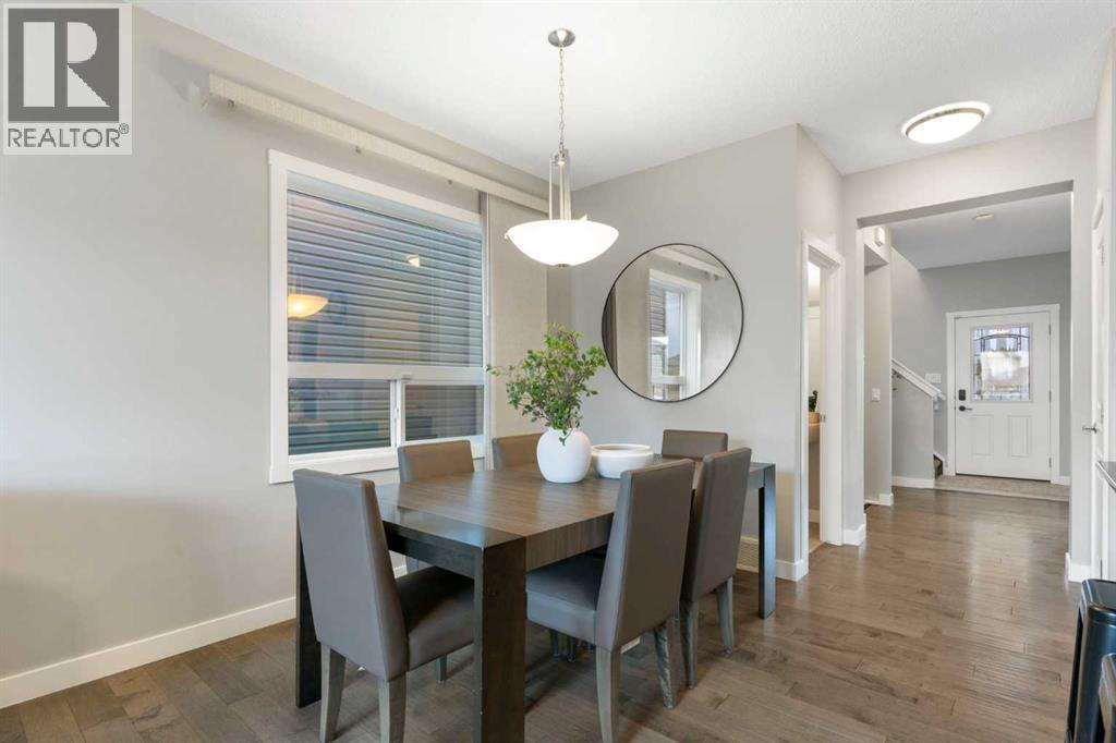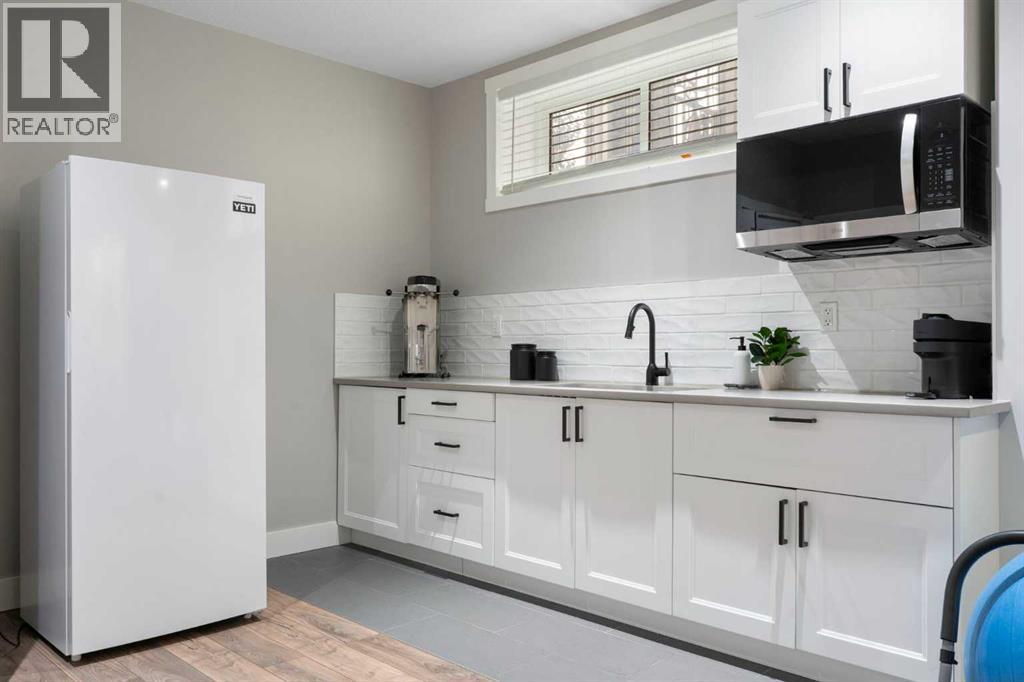 Hello Gorgeous! Welcome to Hillcrest! This custom detached home is beautifully designed with thoughtful upgrades across all three levels, offering over 2,300 sq. ft. of fully developed living space. From the moment you step inside, you’ll notice the attention to detail that makes this property both stylish and functional. The main floor spans over 805 sq. ft. and features engineered hardwood flooring, with tile in the bathroom for durability. A private office with glass French doors is perfect for working from home, while the living room is anchored by a sleek electric fireplace for cozy evenings. The kitchen will impress with granite countertops, a gas range, stainless steel hood fan, fridge, and dishwasher—blending elegance and practicality for everyday cooking or entertaining. Upstairs, you’ll find three generously sized bedrooms each offer spacious walk-in closets, while the bathrooms boast tile flooring, granite countertops, and an upgraded main bath complete with an extended soaker tub and glass shower, plus upgraded carpet throughout. A convenient second-floor laundry room, equipped with a brand-new Samsung washer and dryer, makes everyday chores a breeze. The fully developed basement adds another 711 sq. ft. of versatile living. Finished with laminate flooring, it includes a built-in bookstand, electric fireplace, and a wired entertainment area ready for your home theater setup. A large office space, plus a full secondary kitchen with quartz countertops, microwave, and fridge, expand your options for hosting or multi-generational living. The basement also includes a spacious closet, ample storage, and a full bathroom finished in tile. Outside, enjoy both a composite rear deck and a lower wood deck overlooking the green space, complete with a fire pit for outdoor gatherings. The extended garage provides excellent storage and easily accommodates two large SUVs or trucks. This property combines custom craftsmanship, modern finishes, and flexible living spaces—m aking it an incredible place to call home. Hillcrest is a fantasic family-friendly community - this home is surrounded by walking paths, parks, playgrounds, and stunning mountain views. Everyday conveniences are just minutes away with schools, shops, dining, and quick access to Calgary all within easy reach. Hillcrest combines modern amenities with small-town charm, making it the perfect place to put down roots — book your showing today! (id:55577)