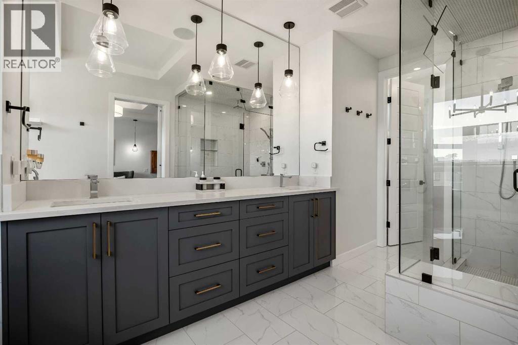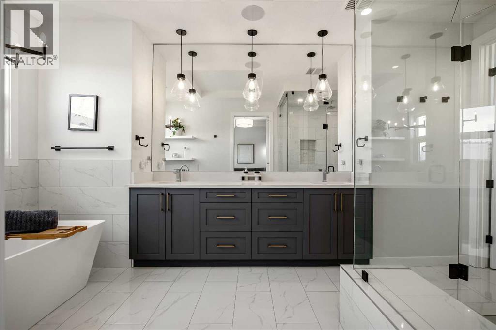 Situated on a quiet street in the highly sought-after community of Montgomery. As you enter this stunning home you will notice the abundance of natural light and that no detail was overlooked from the luxurious wide plank hardwood floors, high paint finish ceilings, 8’ solid core doors, elegant railing, in ceiling speakers and designer lights. The spacious front dining room opens to the central gourmet kitchen. This is a focal point with an expansive 16’ kitchen island, gorgeous quartz counters, a timeless herringbone tile backsplash, SS built in appliances including a gas cook top and wine fridge. All highlighted by a custom wood hood, two-tone cabinets that reach to the ceiling with glass inserts, under-cabinet lights, slow-close cabinet doors, as well as plenty of storage with additional built-in features such as spice racks and pull out details. The kitchen opens to the inviting living room with soaring 12’ ceilings, a distinctive gas fireplace with brick surrounds and built ins, plus floor to ceiling patio sliders creating a great indoor outdoor space, making this home ideal for entertaining. The sunny SOUTH backyard has a low maintenance vinyl deck and a BBQ gas line ideal for gatherings. Completing the main living area is a large mudroom with bench detail and private powder room with a full vanity. Upstairs you will find two bright well sized bedrooms, a large 4 pc bath and a convenient laundry room with plenty of storage and a sink. The primary retreat is on its own separate level creating a true oasis with a tray ceiling detail, large windows and a spacious walk in closets with built ins. The spa inspired ensuite includes heated floors, a stunning free standing tub, a massive tile shower, dual sinks with stone counters, and a private water closet. The lower level has a great rec room with a built in media center, a full wet bar including beverage fridge, floating shelves and wine racks. A 4 pc bath and fourth bedroom with a walk in closet perfect for gue sts or hosting gatherings. This home also offers the comforts of air conditioning, a vacu-flow rough in, plus a fully insulated and drywalled double detached garage with gas line rough in for a heater. Steps away from scenic parks, walking trails, cafes, restaurants and shopping. Schedule your private showing or view the virtual tour today. (id:55577)
