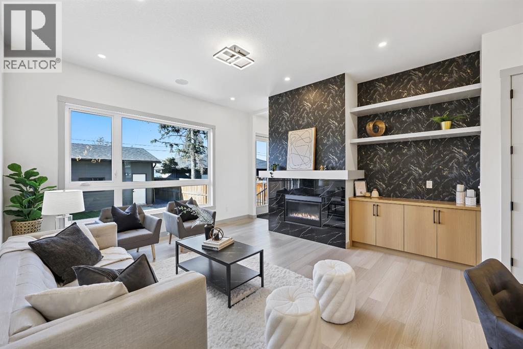 I'm excited to present this brand-new, move-in ready luxury infill with double garage and situated on an oversized 123' deep lot located on a very quiet street in West Bowness. This property boasts elevated design and incredible functionality, featuring a legal 2-bedroom basement suite (subject to city approvals), a convenient front den/office on the main floor and a sunny southwest exposed backyard. Every detail was thoughtfully selected, from the wide-plank modern floors to the curated lighting and premium finishes throughout. Step inside to a bright, open-concept main floor with 10' ceilings, oversized windows and neutral tones that create an airy, inviting vibe. The large front den/office is perfect for anyone who works from home, which flows seamlessly into a designer kitchen featuring modern shaker style cabinetry next to warm wood-toned accent pieces paired with a beautiful feature wall, quartz countertops, matte black hardware, a full-height herringbone backsplash, under cabinet lighting, and a perfect-sized center island with bar seating with more natural wood tones, bringing everything together beautifully. The upgraded stainless steel appliance package includes a fridge with french doors, bottom freezer plus ice / water dispenser on the outside, a gas cooktop with stylish hoodfan, and a thoughtfully placed wall oven and microwave. The well-lit, spacious living room features additional built-in shelving and cabinetry plus a cozy gas fireplace with tile surround and custom mantle, and which leads you out to the rear west facing yard, perfect for end of the day BBQ's and lounging in the sun. A mudroom with built-ins including bench seating and a sleek powder room that comes with tile flooring, a back-lit mirror and under vanity lighting complete the mainfloor. Upstairs contains the three large bedrooms, including the primary bedroom which is a true retreat that features a stand-out feature wall and bedside lighting, trayed ceiling, a large walk-in closet wit h several custom built-ins plus a hotel like ensuite. Enjoy dual sinks, quartz countertops, huge skylight, under vanity lighting, plus a free standing soaker tub and an oversized glass shower with rain shower head. The upper laundry room comes with a quartz countertop for folding and additional wood toned cabinetry, and is situated right across from the stylish full bathroom which features a tiled tub/shower combo. Downstairs features the thoughtfully designed legal 2 bedroom suite (subject to city approvals) and features 9' ceilings, luxury vinyl plank flooring, wonderfully warm toned cabinetry, stainless steel appliances and lots of pot lighting. A full bathroom with elegant tile is also featured plus a dedicated laundry room, separate side entrance and storage, making this perfect for rental income or multigenerational families. Additional features include roughed in A/C & each room wired for Cat 6 data. This is truly an exceptional build. (id:55577)