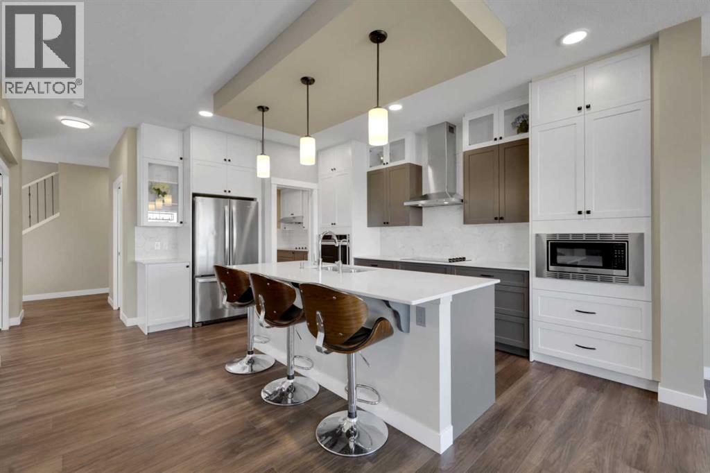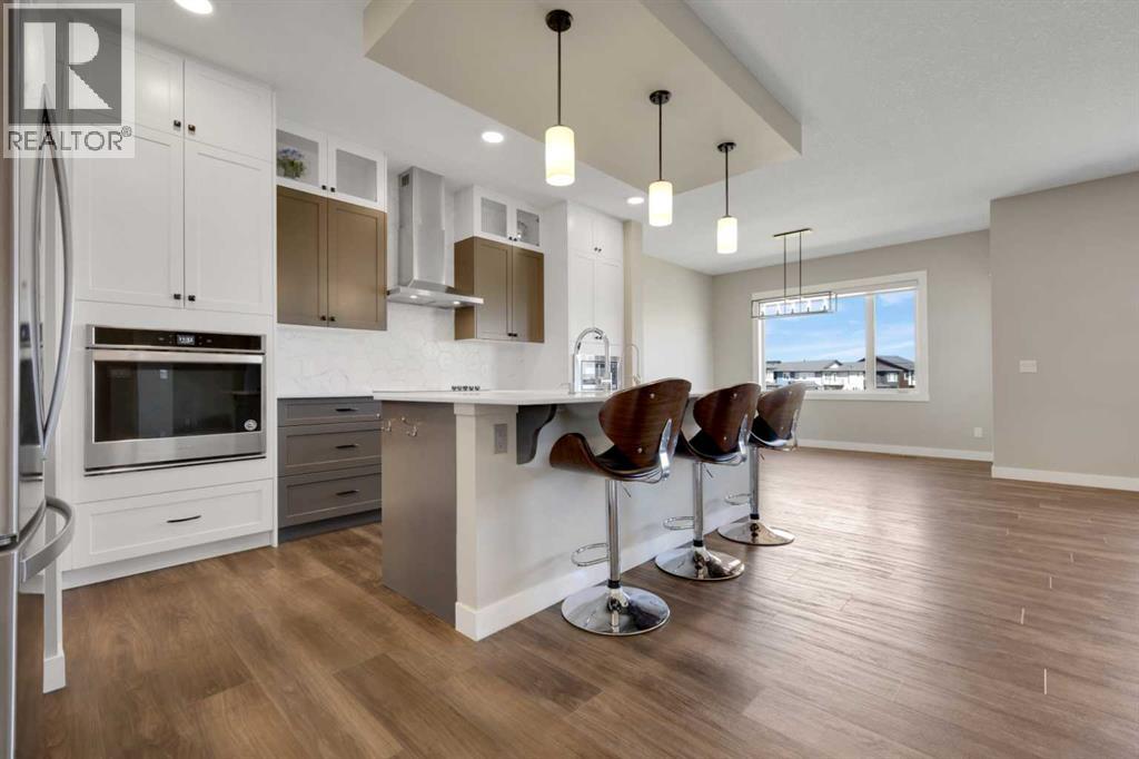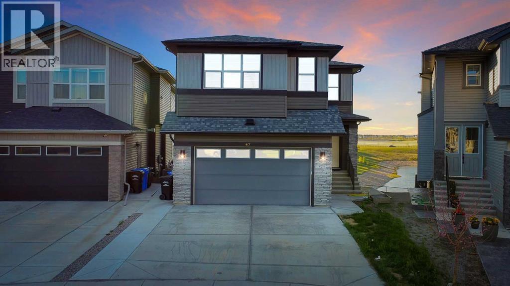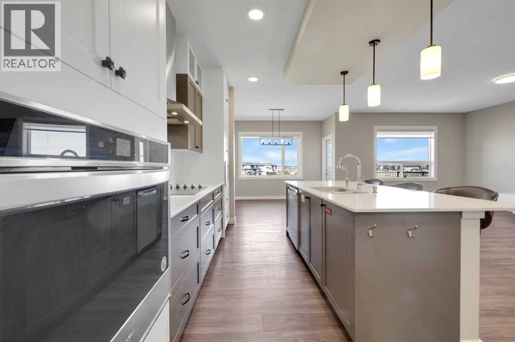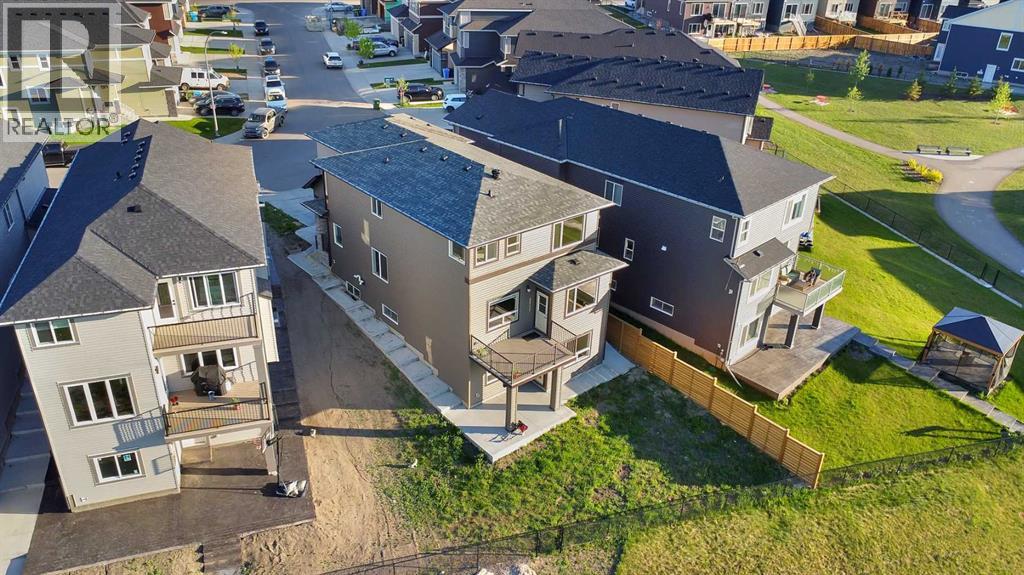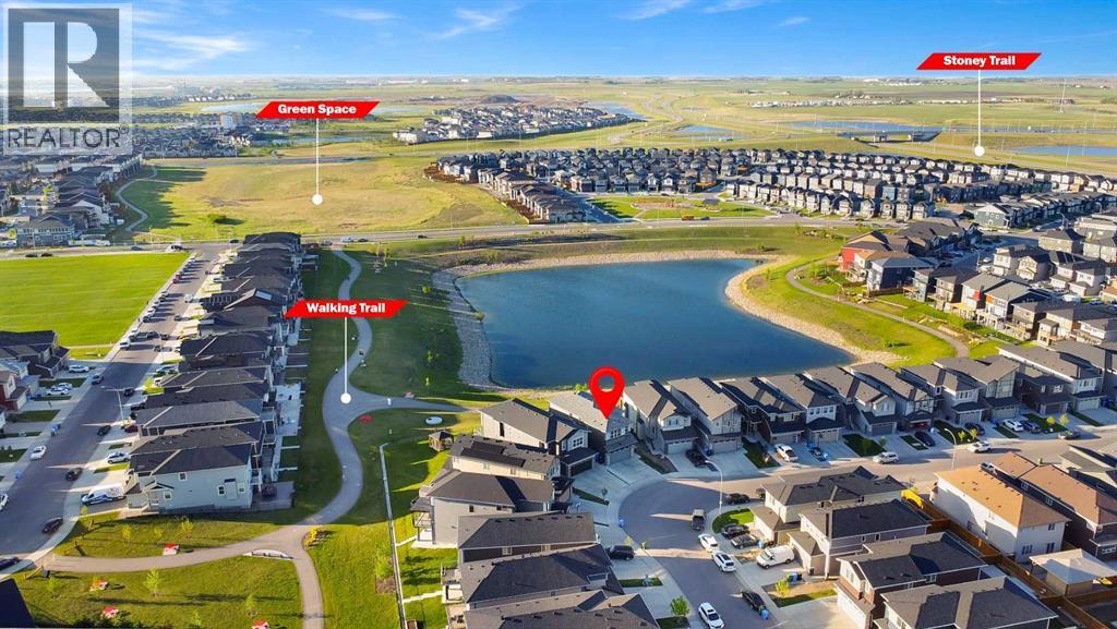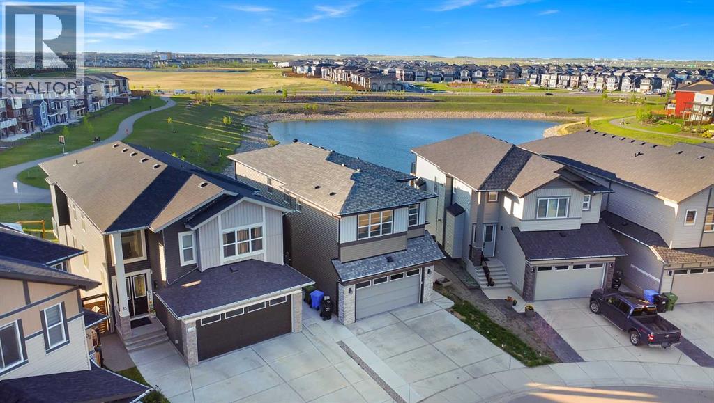 Discover stunning unobstructed POND VIEWS in this beautiful two-storey home built by SHANE HOMES! Offering over 3600 sqft of fully developed space including a finished WALK-OUT BASEMENT. The front entrance greets you with HIGH CEILING and a spacious open concept floorplan with 9ft ceilings throughout. Huge windows allow for flooded natural light in your living room and dining area-step outside to large deck. The GOURMET kitchen features a large Centre Island--, QUARTZ Countertops, Upgraded Built-In Appliances and Floor to Ceiling Cabinets. Separate space to store and prepare meals with an adjacent SPICE KITCHEN including electric cooktop. The main level is completed with a generous size den/office and a half bath. Upstairs offers four large bedrooms and a bonus room-perfect for entertaining. The primary suite is a true retreat-facing the pond-Ensuite with his and hers sinks and a large walk-in-closet. Convenient laundry room with a great deal of storage. A study area uniquely separates the two bedrooms. The fully finished walk-out basement completes the lower level with two large bedrooms, full bath, expansive family room, with rough-in plumbing for future kitchen. Additional highlights include Kinetico Water Softener, Air Conditioning, and 3-Zone Heat Separation System. Quick access to Stoney Trail and just minutes away from the Airport. This home has it all-location, upgrades and a beautiful view! (id:55577)