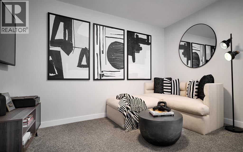 This beautiful, brand-new home is fronting onto a green space and has been intelligently designed to offer 3 bedrooms, 2.5 bathrooms, two distinct living areas, and is located in desirable Livingston! The 'Wicklow' model by Brookfield Residential is the perfect modern design, providing nearly 1,700 square feet of thoughtfully developed living space spread over two levels and includes a single garage with parking pad. The main floor boasts expansive southeast-facing front windows allowing natural light to flood the living space all day long. The open-concept layout is enhanced by 9-foot ceilings, offering a bright, comfortable living environment. The kitchen is a standout with full-height cabinetry, a large central island, a large corner pantry, and a complete suite of stainless-steel appliances, including a French door fridge, range, chimney-style hood fan, and built-in microwave. The kitchen seamlessly flows into the dining area, with sliding patio doors leading out to the backyard—perfect for indoor-outdoor living. Upstairs, a central bonus room acts as a divider, offering privacy between the spacious primary suite and the two additional bedrooms. The primary suite features a walk-in closet, and a luxurious 4-piece ensuite with dual sinks. Two more bedrooms, a full bathroom, and an upper-level laundry room complete this level. The basement is ready for the new owner’s imagination. There is ample space for a generously sized living area, an additional bedroom, and a full bathroom. The backyard has ample space for the family and leads to the single detached garage with additional space for a vehicle and storage. This home comes with a builder's warranty, as well as the Alberta New Home Warranty, giving you peace of mind. Situated a short walk from a playground and quick access to the scenic walking paths of the community and residents association, this home offers a tranquil location. **Please note photos are from a show home model and are not an exact representatio n of the property for sale. (id:55577)
