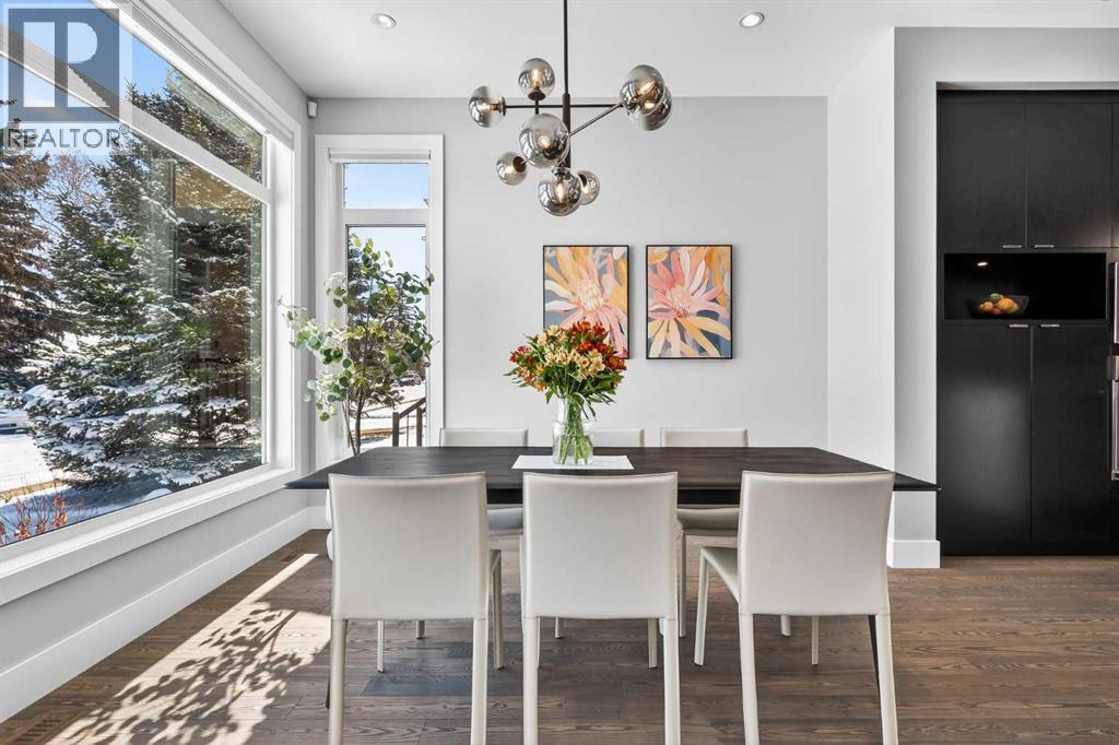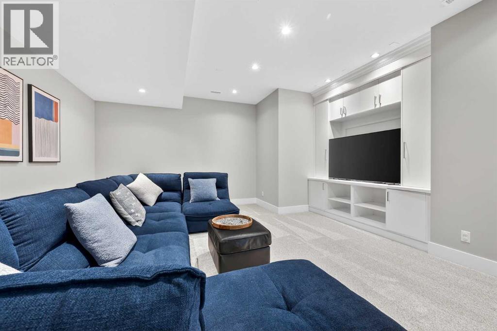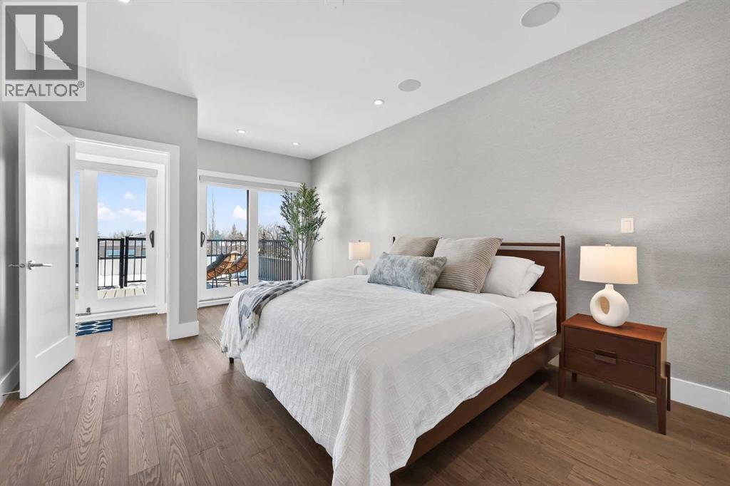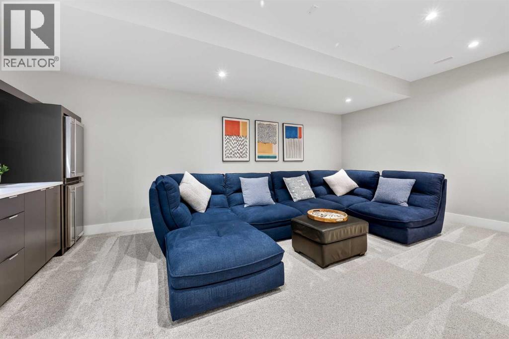 Rooftop Patio | Full City Views | Over 3,400 Sq Ft of Finished Living Space | West-Facing Backyard | Prime LocationWelcome to a rare offering in the heart of Altadore—an exceptional contemporary three-storey detached home crafted for those who appreciate refined design, open-concept living, and effortless entertaining. With over 3,400 sq ft of meticulously finished space, this residence showcases a level of quality and attention to detail seldom found in today’s infill market.Step inside to a welcoming front foyer with a convenient side closet, leading into an elegant dining area illuminated by a stunning smoked glass chandelier. The main floor unfolds into a showpiece kitchen, featuring premium stainless steel appliances and a striking dual waterfall Caesarstone island with updated pendant lighting and generous seating—perfect for gathering with family and friends. Throughout the home, Kentwood hardwood flooring, rich oak ebony cabinetry with soft-close hardware, and solid-core doors reflect a commitment to both style and durability.A dramatic open-rise hardwood staircase with floor-to-ceiling glass creates a striking architectural focal point, while the built-in wired audio system enhances everyday living and entertaining. A custom Sugi Ban burnt oak barn door adds a unique designer touch.Designed with versatility in mind, this home offers multiple spaces to relax and entertain. The main living room is anchored by a stone-encased gas fireplace with an art niche, creating a warm, inviting setting. Upstairs, are 2 Large bedrooms + Full Bath & Laundry room & flex/entertainment room with a wet bar provides the perfect retreat or hosting space. The fully developed basement expands your options further, featuring brand-new plush carpeting, a second wet bar with cooler and wine fridge, ample storage, a spacious guest bedroom with a walk-in closet, and a full bathroom just steps away.The entire third level is dedicated to a luxurious private retreat. Enjoy bre athtaking city views from your rooftop patio and expansive primary suite. The spa-inspired ensuite features programmable in-floor heating, a freestanding soaking tub, a large glass shower, dual vanities finished in vein-cut limestone, a dedicated makeup station, and a generous walk-in closet with built-in cabinetry—creating a true sanctuary to unwind at the end of the day.The exterior is equally impressive, showcasing cedar soffits, metal-clad windows, and durable acrylic stucco. The fully landscaped yard includes exposed aggregate walkways and low-maintenance Trex composite decking. A sunny west-facing backyard offers the perfect setting for outdoor living, complete with a gas line rough-in for barbecuing.Ideally located just minutes from downtown, with a playground at the end of the street and close proximity to Sandy Beach and the river pathways, this home offers the perfect blend of luxury, comfort, and convenience.An outstanding opportunity to own in one of Calgary’s most desirable communities. (id:55577)