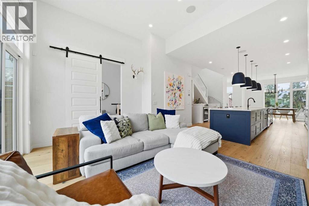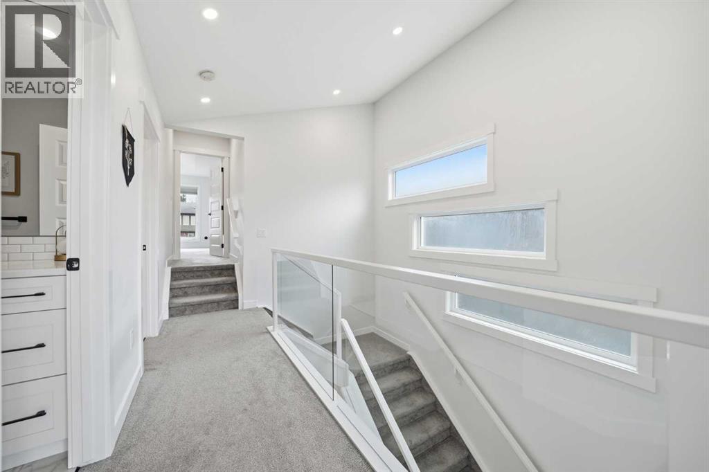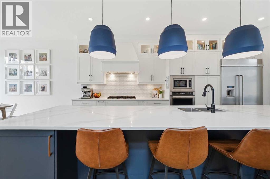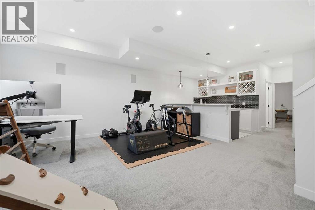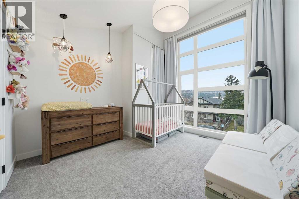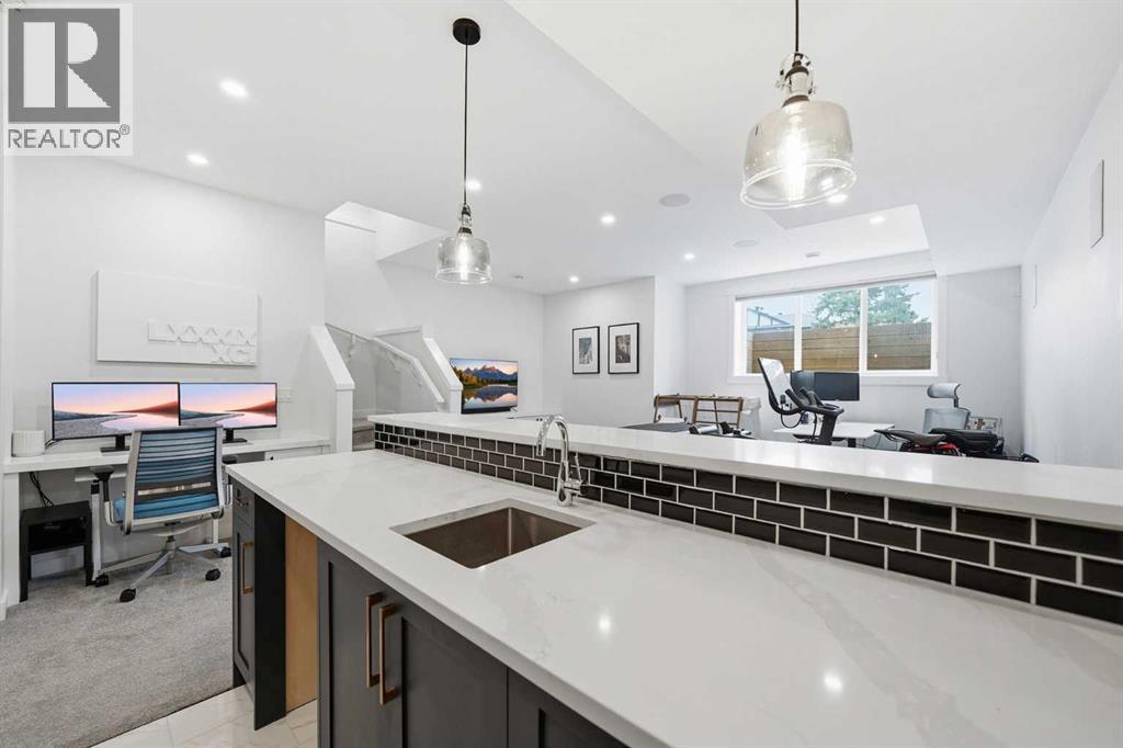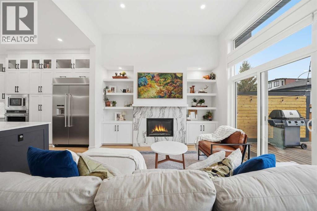 Refined luxury meets turn-key convenience in one of Calgary’s oldest inner-city communities. Built in 2021 and enhanced with approximately $50,000 in thoughtful upgrades, this home removes the typical new-build to-do list – delivering premium up/down window coverings, a wooden deck with privacy walls, landscaping with garden boxes, central A/C, built-in ceiling speakers on all 3 floors, and upgraded kitchen and laundry appliances – saving you time and significant expense. The heart of the home features a stunning 16' quartz-topped kitchen island, an upgraded appliance package, abundant cabinetry, and a stylish bar with wine fridge - ideal for everyday living and effortless entertaining. The living room centers around a sleek gas fireplace with custom built-ins, 12' ceilings, and large sliding doors that flood the space with natural light. Everyday function is equally considered with a mudroom separated by a barn door to keep life organized and clutter-free. Upstairs, two generous secondary bedrooms share a 4-piece bath, while a spacious laundry room with sink adds welcome convenience. The primary suite is a true retreat – elevated by a few steps to define the space – featuring a walk-in closet with custom storage and a spa-inspired ensuite with a freestanding soaker tub, heated floors, dual vanity, separate water closet, and a triple-head shower system in a stunning oversized glass shower with bench. The fully finished basement extends your living space with 9' ceilings, oversized south-facing windows, a versatile entertainment area with a wet bar, a guest bedroom with walk-in closet, and a full 4-piece bath – bringing the home to nearly 3,000 sq. ft. of refined living for you and your family to enjoy. Situated just blocks from the Bow River, Shouldice Park, Bowmont Park, Montalban Park (off-leash), Montgomery’s main street, a newly renovated Safeway, and Market Mall, you’re only 15 minutes from downtown with quick access to the mountains. From top to bottom, pride of ownership is evident, delivering an inner-city home with the upgrades you want and nothing left to do but move in and enjoy. (id:55577)