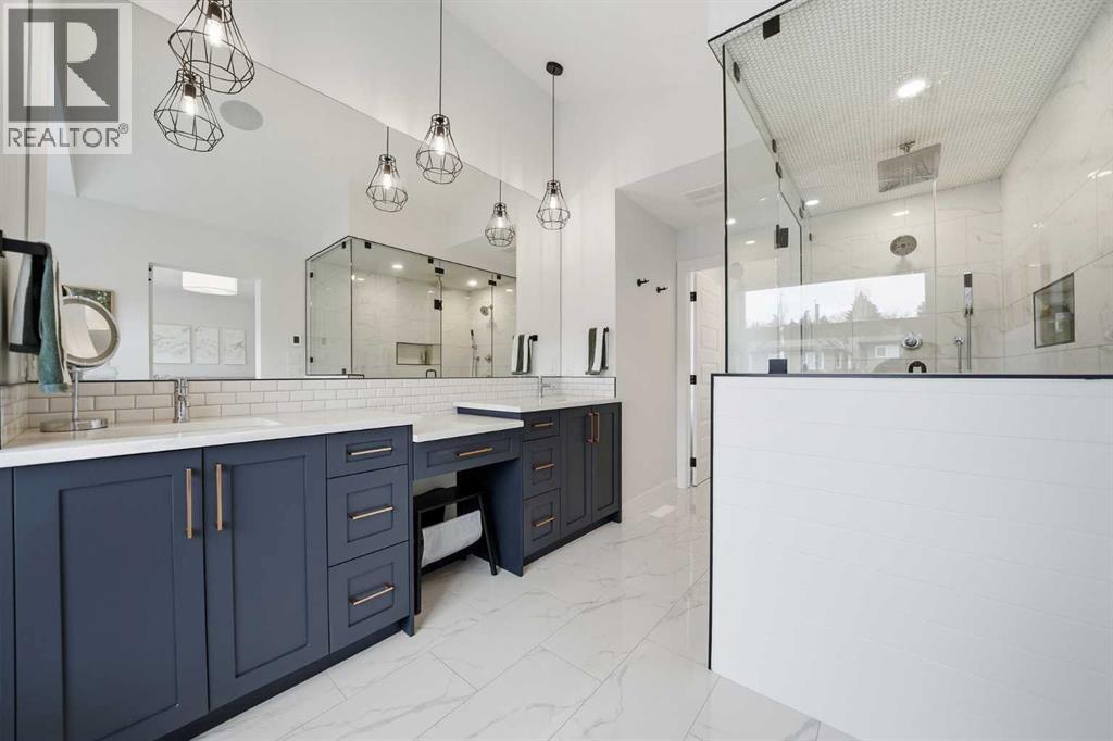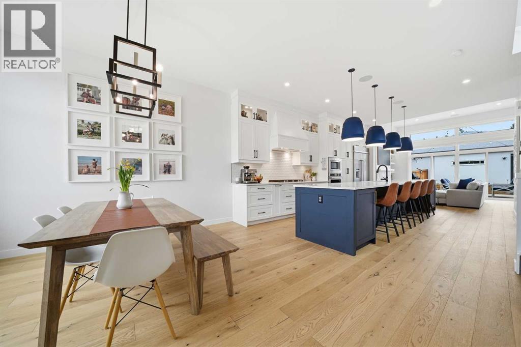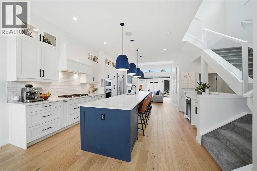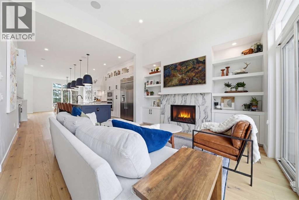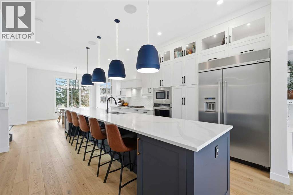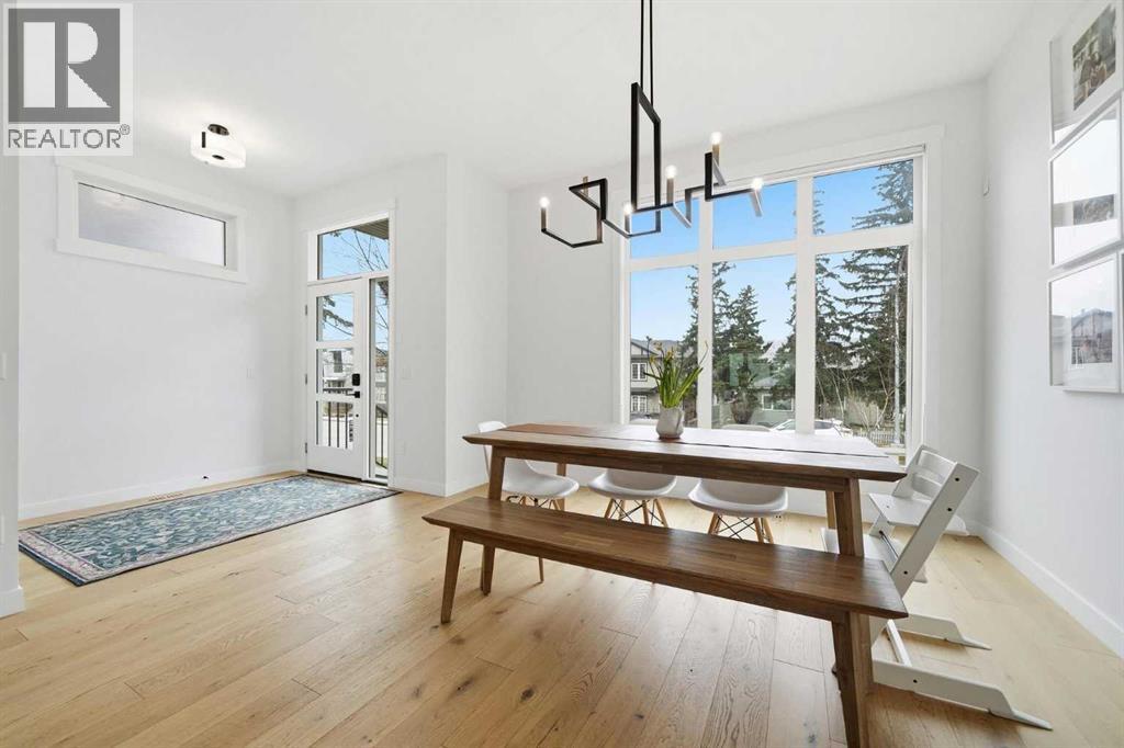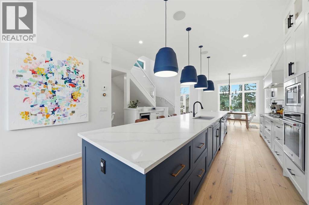 Refined luxury meets turn-key convenience in one of Calgary’s oldest inner-city communities. Built in 2021 and enhanced with approximately $50,000 in thoughtful upgrades, this home removes the typical new-build to-do list – delivering premium up/down window coverings, a wooden deck with privacy walls, landscaping with garden boxes, central A/C, built-in ceiling speakers on all 3 floors, and upgraded kitchen and laundry appliances – saving you time and significant expense. The heart of the home features a stunning 16' quartz-topped kitchen island, an upgraded appliance package, abundant cabinetry, and a stylish bar with wine fridge - ideal for everyday living and effortless entertaining. The living room centers around a sleek gas fireplace with custom built-ins, 12' ceilings, and large sliding doors that flood the space with natural light. Everyday function is equally considered with a mudroom separated by a barn door to keep life organized and clutter-free. Upstairs, two generous secondary bedrooms share a 4-piece bath, while a spacious laundry room with sink adds welcome convenience. The primary suite is a true retreat – elevated by a few steps to define the space – featuring a walk-in closet with custom storage and a spa-inspired ensuite with a freestanding soaker tub, heated floors, dual vanity, separate water closet, and a triple-head shower system in a stunning oversized glass shower with bench. The fully finished basement extends your living space with 9' ceilings, oversized south-facing windows, a versatile entertainment area with a wet bar, a guest bedroom with walk-in closet, and a full 4-piece bath – bringing the home to nearly 3,000 sq. ft. of refined living for you and your family to enjoy. Situated just blocks from the Bow River, Shouldice Park, Bowmont Park, Montalban Park (off-leash), Montgomery’s main street, a newly renovated Safeway, and Market Mall, you’re only 15 minutes from downtown with quick access to the mountains. From top to bottom, pride of ownership is evident, delivering an inner-city home with the upgrades you want and nothing left to do but move in and enjoy. (id:55577)