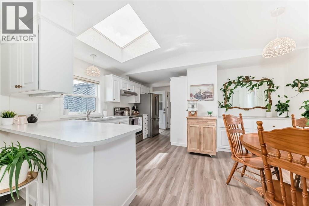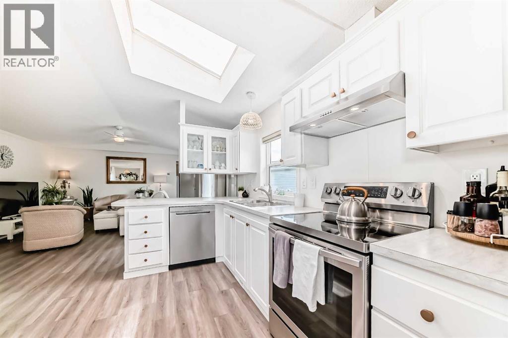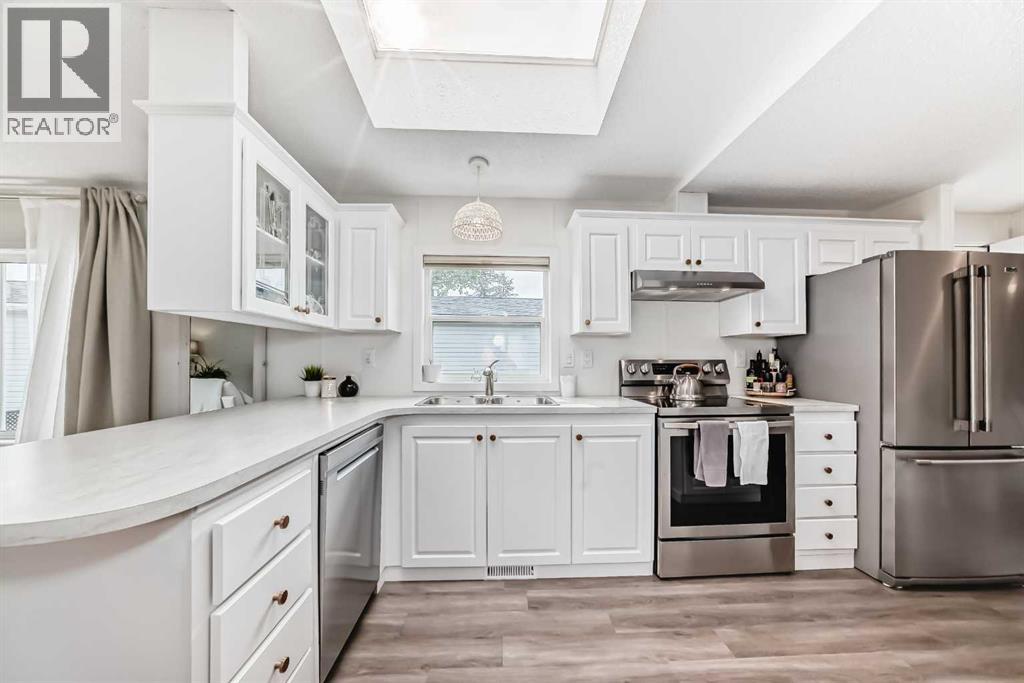 THIS HOME IS THE BEST VALUE FOR YOUR MONEY!! QUICK POSSESSION AVAILABLE! The most important words in real estate and you are going to love this location. Huge fully fenced yard no neighbours behind you as it backs on to the pond. Big trees give you privacy & this is just the beginning. The stage is set with this location & a one level home that’s just shy of 1200sf you are home! what a home it is… This lot & home rivals any bungalow in Calgary. Welcome to this lovingly maintained home! PRIDE OF OWNERSHIP IS EVERYWHERE. This 3 bedroom 2 bath home has upgrades galore! Luxury vinyl flooring throughout, new modern paint colours make this home bright, open and airy. The living room with its vaulted ceiling opens up to the kitchen & both speak for themselves. Kitchen has stainless appliances, newer counter top, dble wide skylight, tons of counter space, custom inserts for pots and pans and this becomes the dream kitchen. Primary bedroom is at one end of the home with upgraded ensuite and the other two bedrooms are at the other end of the home with a 4pce bath to share. Perfect for teens, guests or roommates. Separate laundry room is large which allows for extra storage. This park has no age restriction. And, the icing on the cake is the lease fee of only $630.00 per month. Now for the best part...UPGRADES **2024** , EXTERIOR: BOTH ENTRY DOORS, COVERED ENTRY PORCH, COVERED DECK, ASHPHALT DRIVEWAY, OUTDOOR SENSOR LIGHTS, SOME NEW SKIRTING WITH NEW FRAMING AND INSULATION, INTERIOR: NEW PAINT (CEILING, WALLS & CUPBOARDS), COUNTERTOPS, LUXURY VINYL FLOORING, NEW LIGHT SWITCHES & PLUGS, CEILING FANS (LIVING ROOM & PRIMARY BEDROOM), CEILING LIGHT, HOT WATER TANK, FURNACE, CURTAINS IN LIVING, DINING AND PRIMARY BEDROOMS, TOP DOWN BOTTOM UP BLINDS (KITCHEN, DINING ROOM & PRIMARY BEDROOM), NEW SOAKER TUB IN PRIMARY ENSUITE, MAIN BATH TUB REFINISHED BY ALLWEST REFINISHING. **2020** STAINLESS STOVE, FRIDGE & DISHWASHER **2019** WASHER/DRYER AND ROOF. SO NICE TO HAVE ALL THE BIG TICKET ITEMS DONE FOR YOU. This yard would rival many yards in the newer communities and did I mention is also private with no neighbours behind you. Tons of room for the kids and/or pets to run around and play. The covered deck offers you the privacy and comfort to sit and enjoy your morning coffee and the sun or do some bird watching. For the garden enthusiast, Seller is leaving the garden boxes. The shed is a oversized for storage. Parking is ample and easily fits 2 vehicles. Chateau Estates Park has not only Calgary bus service throughout but school bus service as well. Lease of $630 includes water, sewer, garbage pick-up, snow removal, common area maintenance, use of the Clubhouse, on site RV storage for a nominal fee and is one of the lowest fees in all of Calgary. Easy access to Stony Trail, Deerfoot Trail and easy commute to downtown. And, with all the amenities and more to come, this location is a dream for anyone looking for convenience and a feeling of community. SELLER MOTIVATED! (id:55577)