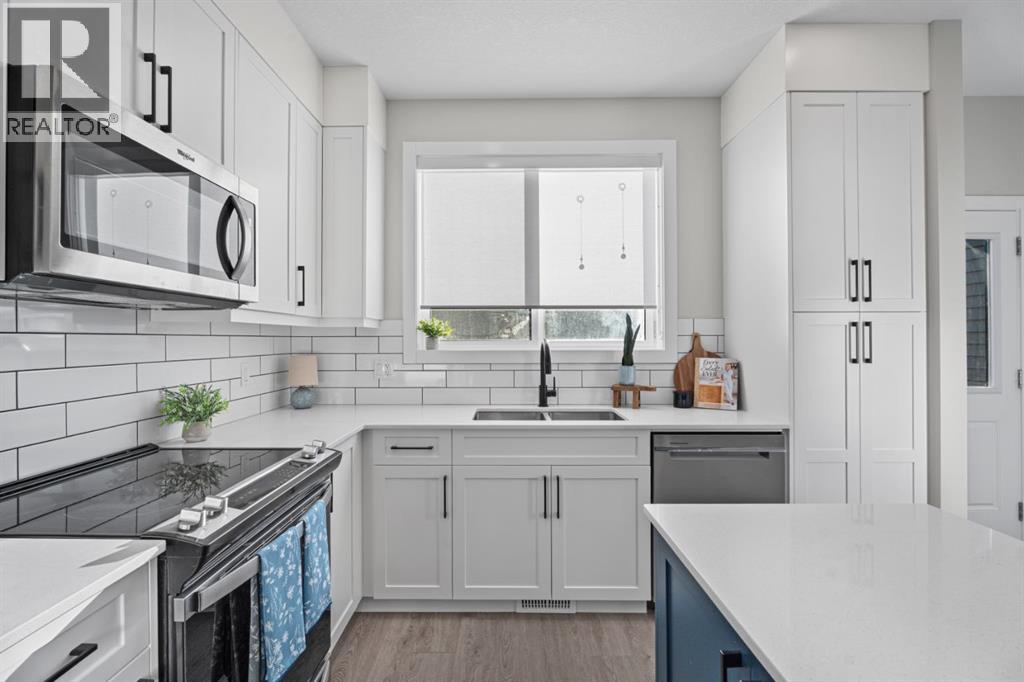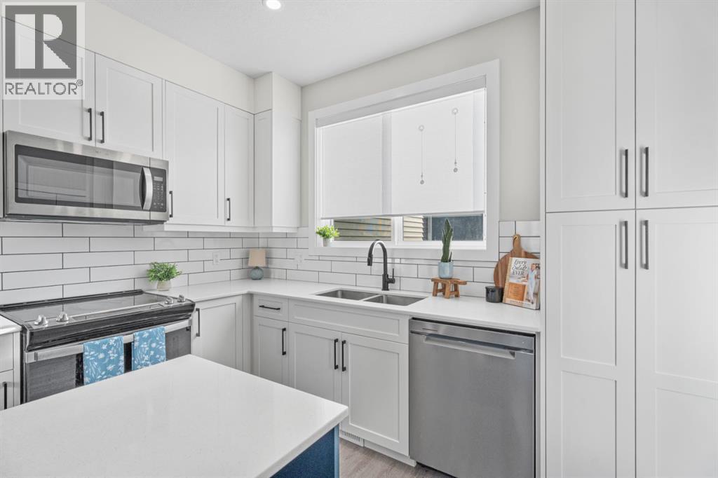 Immaculate and beautifully upgraded, this fully finished home feels good as new offering nearly 2000 sq. ft. of thoughtfully designed living space. This north end address is ideal for commuters and located off any major roads. Enjoy the ease of a low maintenance lifestyle without compromising on space or style. The front entry welcomes you into an open concept main floor that feels even larger than the square footage suggests. Large windows flood the home with natural light, while durable vinyl plank flooring adds both warmth and function. The upgraded fireplace creates a cozy focal point with brick surround and mantle. The kitchen is both stylish and practical, featuring stainless steel appliances, ample cabinetry, and quartz countertops with a large island. Added nook cabinetry provides the perfect opportunity for a coffee bar, wine station, and additional storage. Just off the main living area, the sunny south facing yard offers just the right amount of outdoor space. Complete with fencing, patio area, and a concrete pad ready for a hot tub, it delivers that sought after low maintenance convenience. Upstairs, you’ll find a desirable double primary bedroom layout along with the convenience of upper level laundry. Both bedrooms are generously sized and include large walk in closets and ensuites. The fully finished lower level expands your living options with an additional family room, a third bedroom, and another full bathroom, perfect for teens, visitors, or a home office setup. The double detached heated garage is fully insulated, drywalled, painted, and finished with epoxy floors. Additional upgrades include tankless hot water, air conditioning, a water softener, hot tub (negotiable). This home is truly move in ready with all the extras already in place. Move in and do nothing! No condo fees and lower monthly bills make this an exceptional opportunity for affordable, stylish living. (id:55577)
